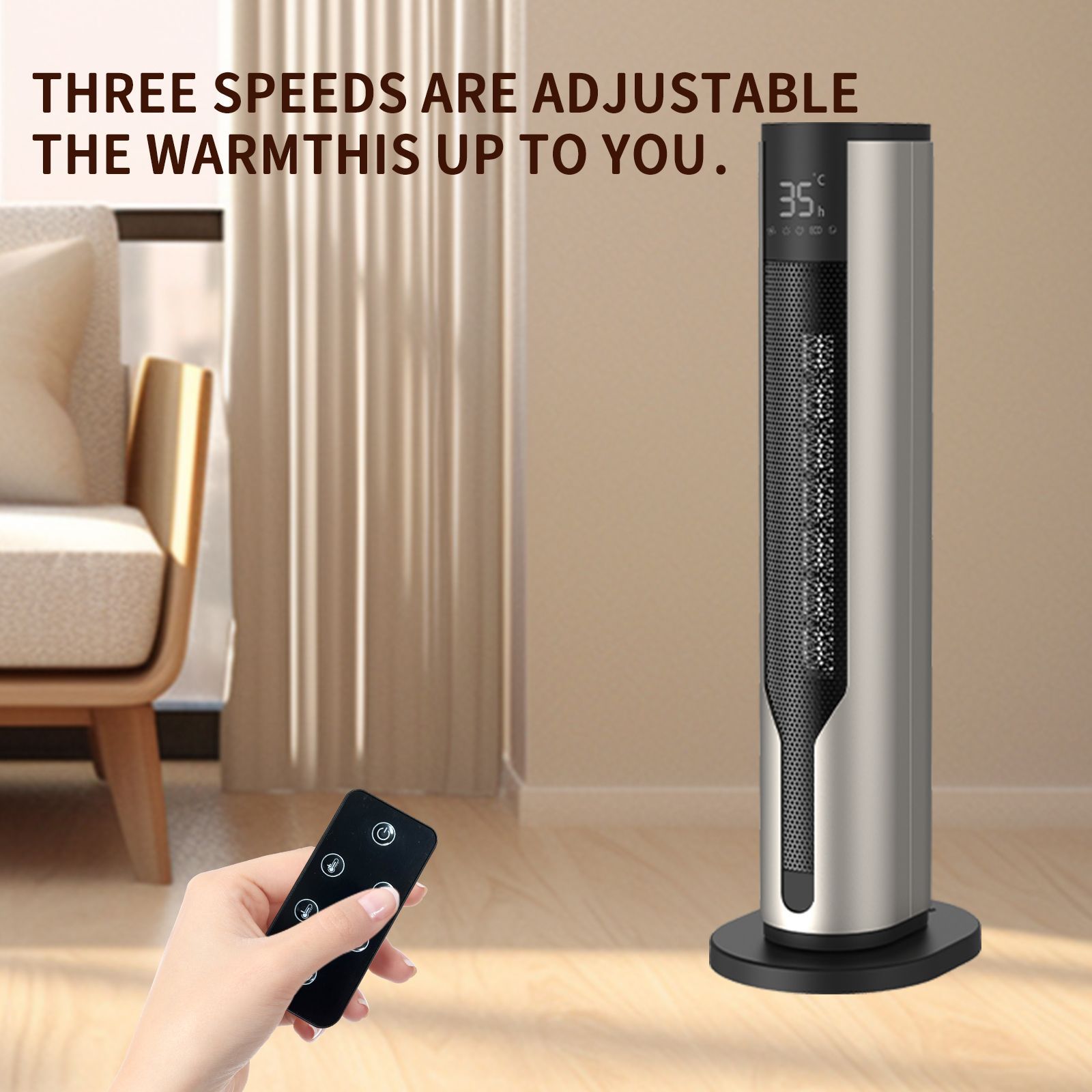 2024跨境立式取暖器PTC陶瓷加热暖风机家用卧室遥控摇头电暖器