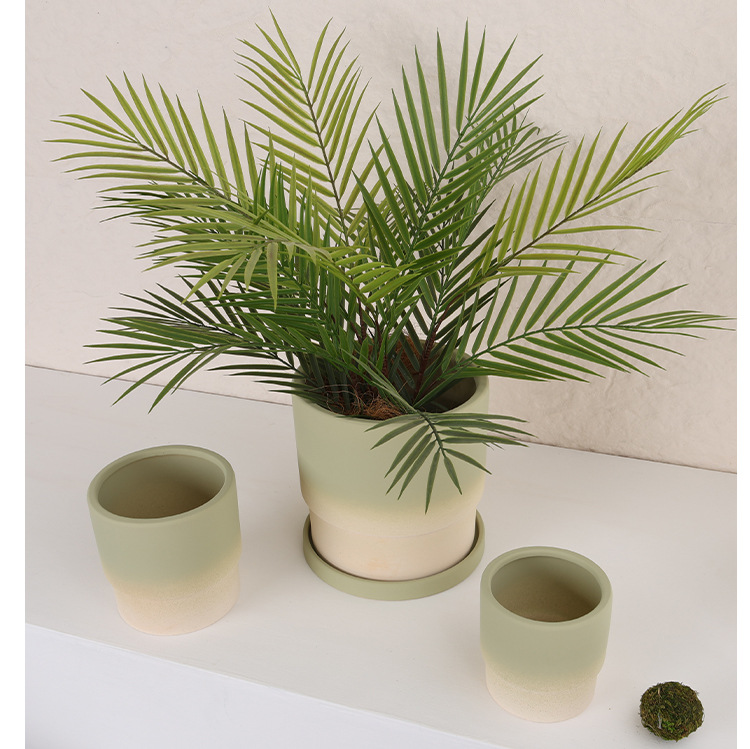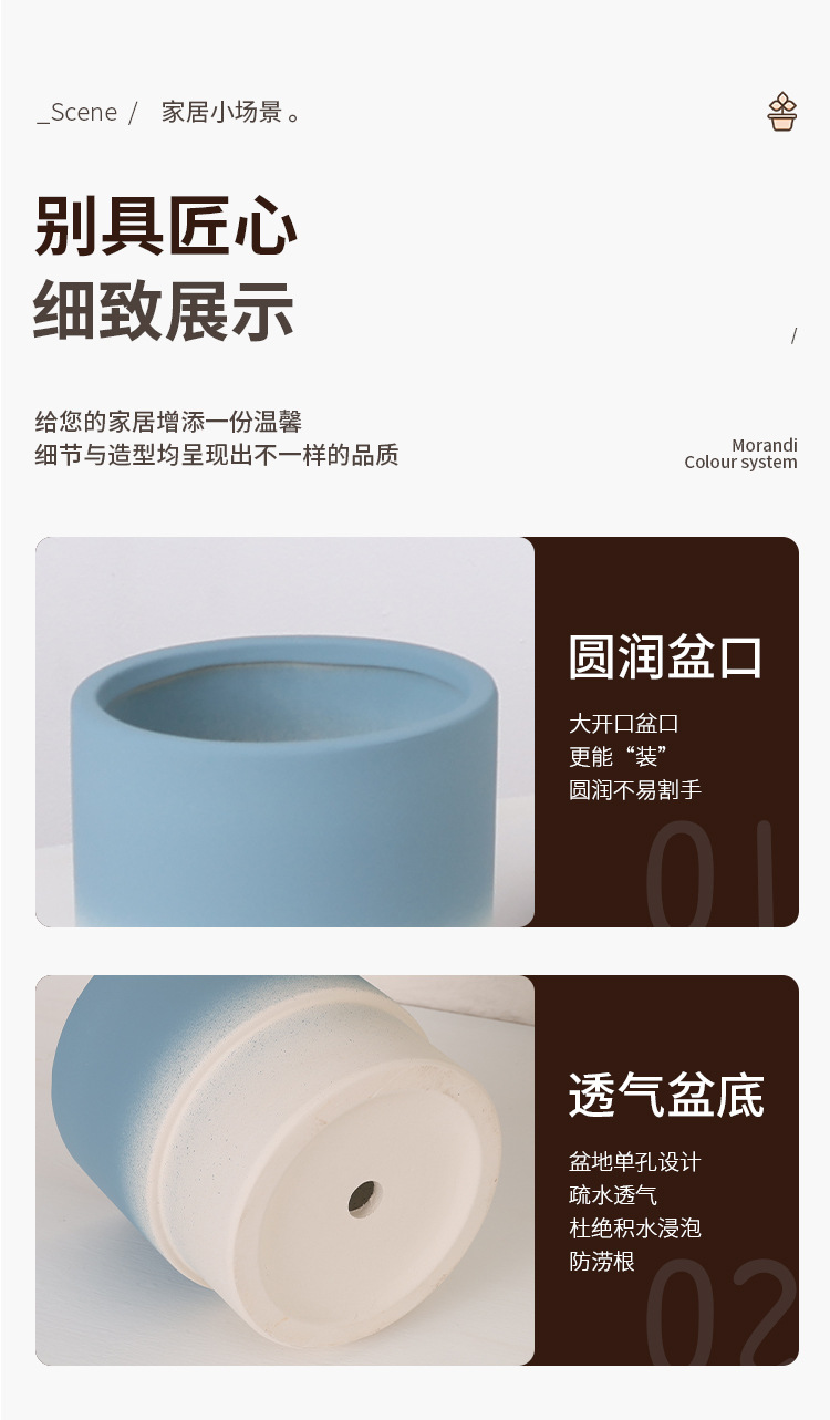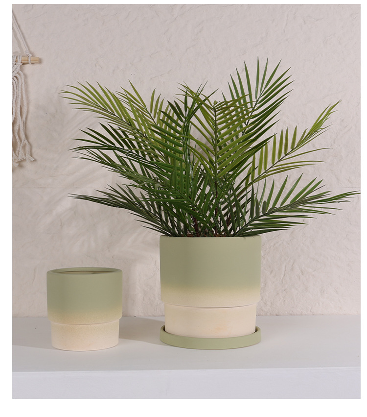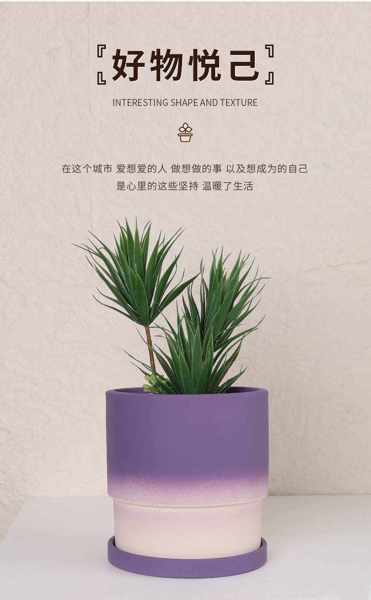 北欧渐变多巴胺圆形陶瓷花盆透气陶土家用带托盘有孔多肉盆栽绿植