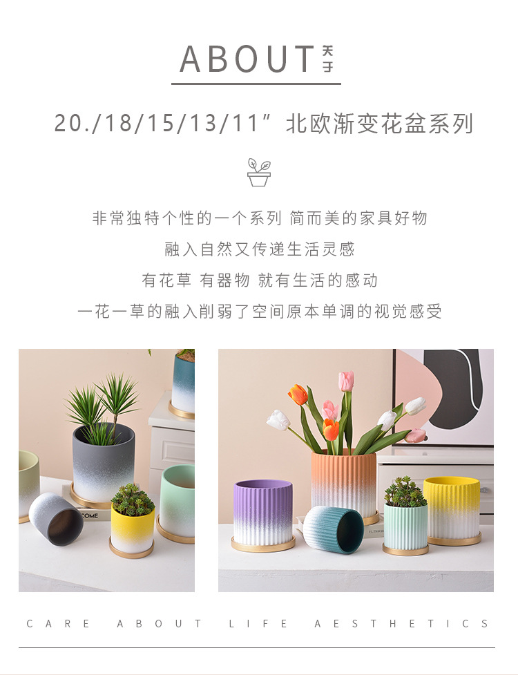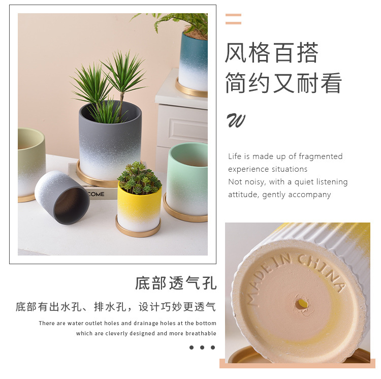 ins北欧简约花盆陶瓷莫兰迪现代个性艺术多肉绿萝圆形时尚文艺