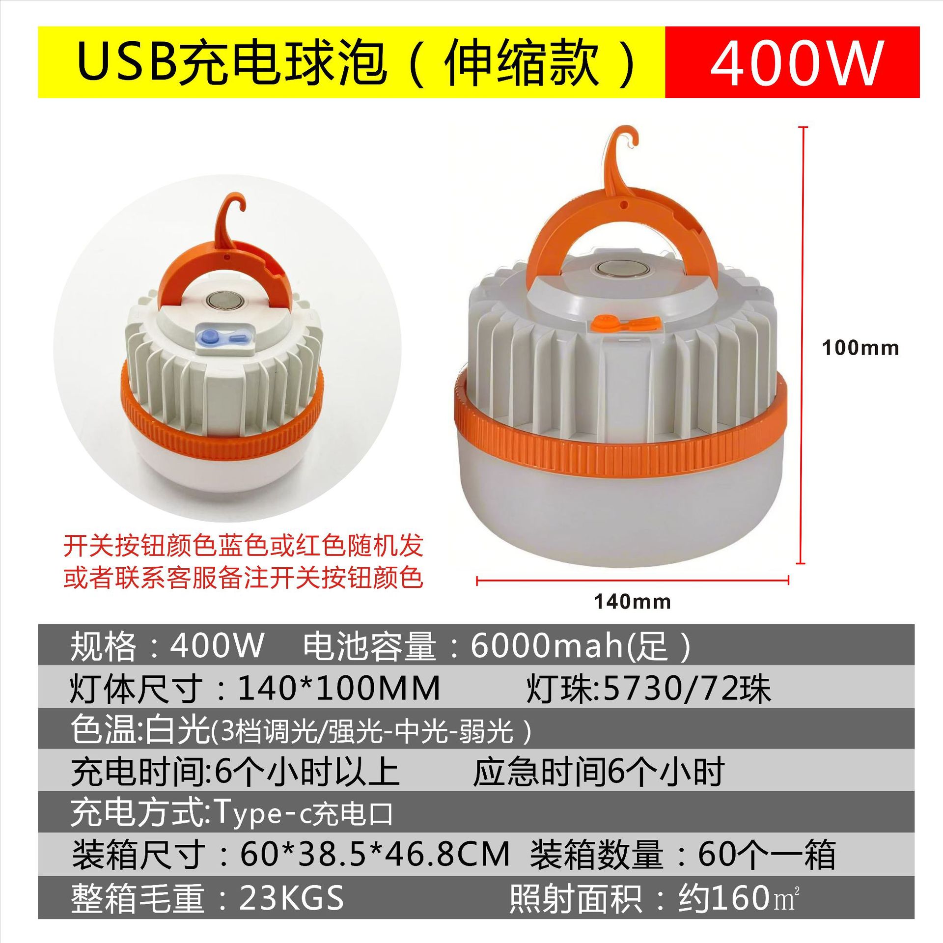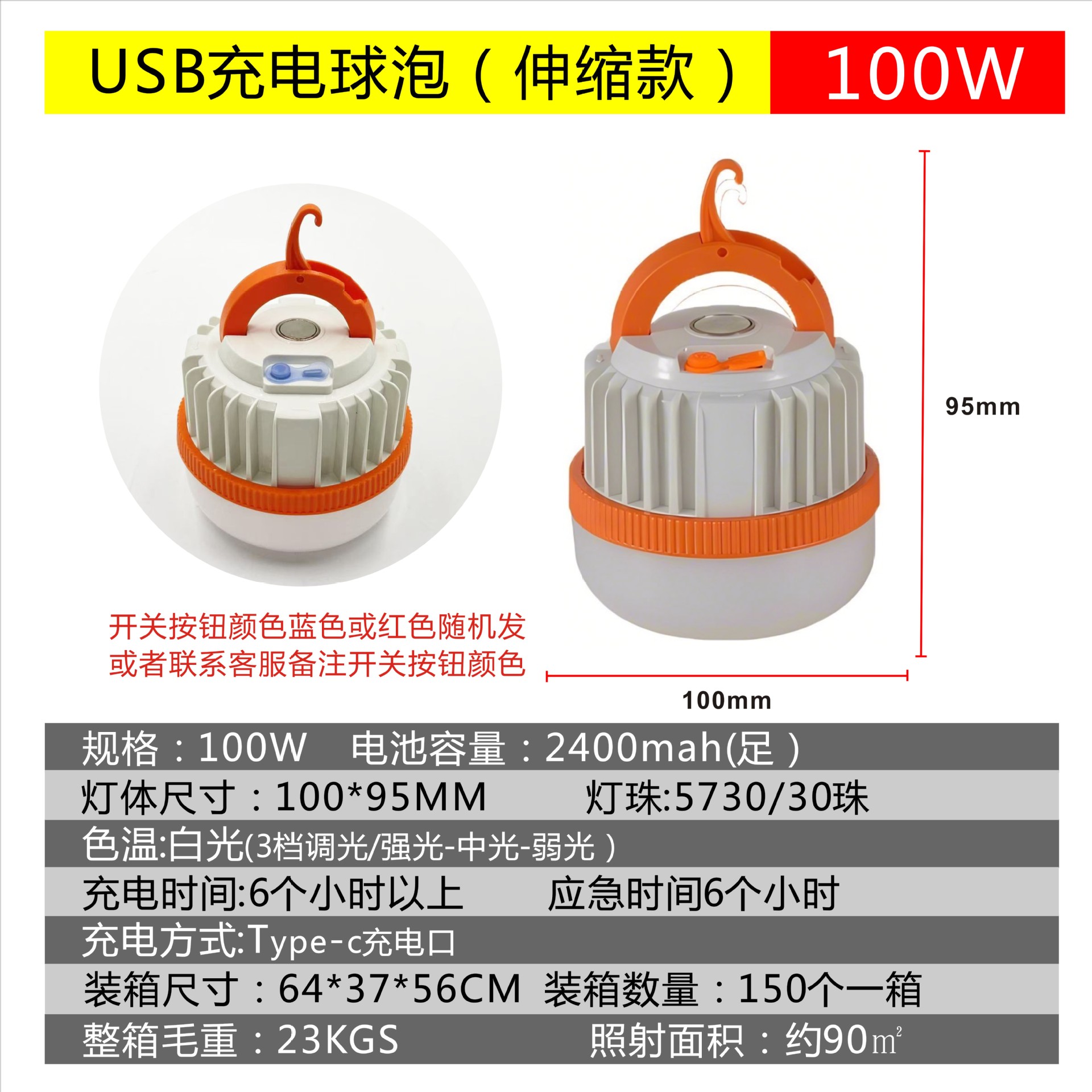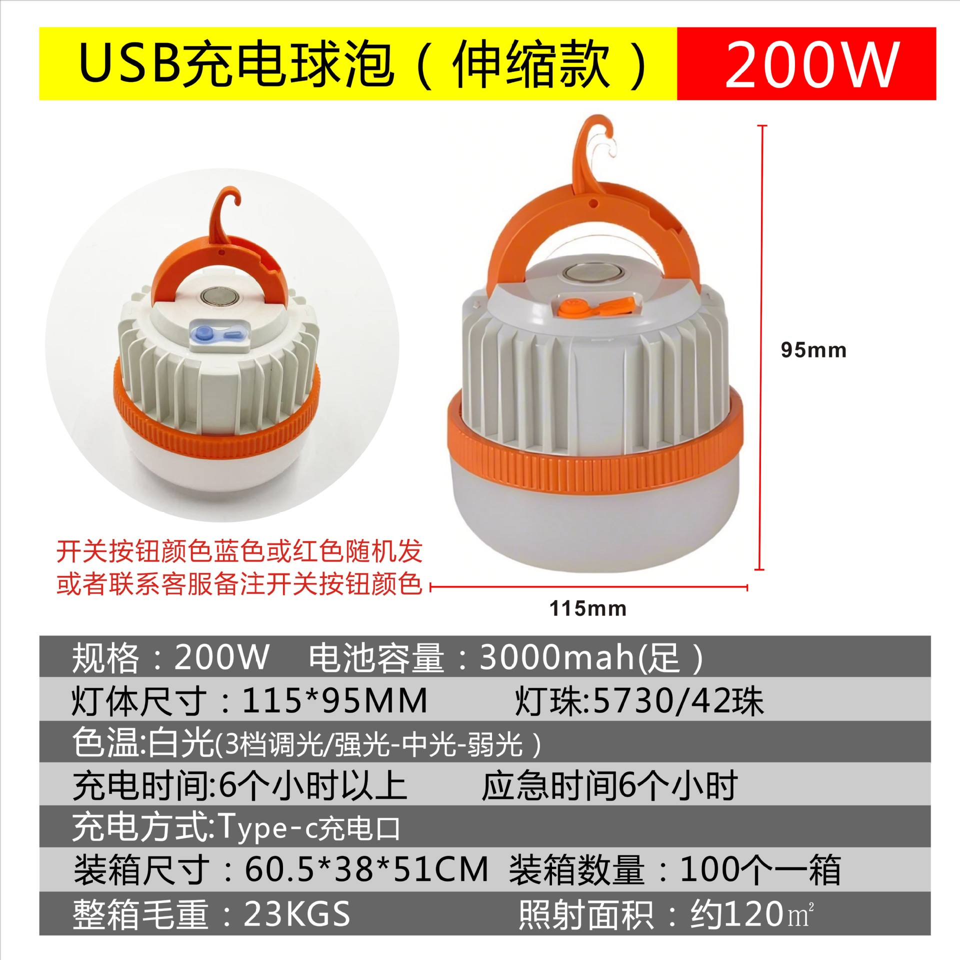 跨境爆款充电灯泡可伸缩应急灯户外露营照明灯停电夜市摆摊家用灯
