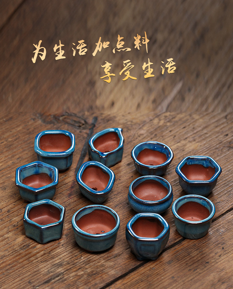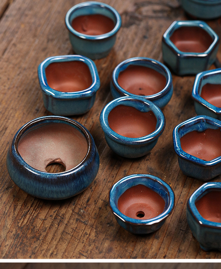 多肉拇指盆紫砂花盆陶瓷盆栽可爱卡通创意简约蓝色釉花盆厂家批发