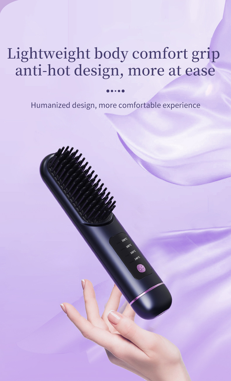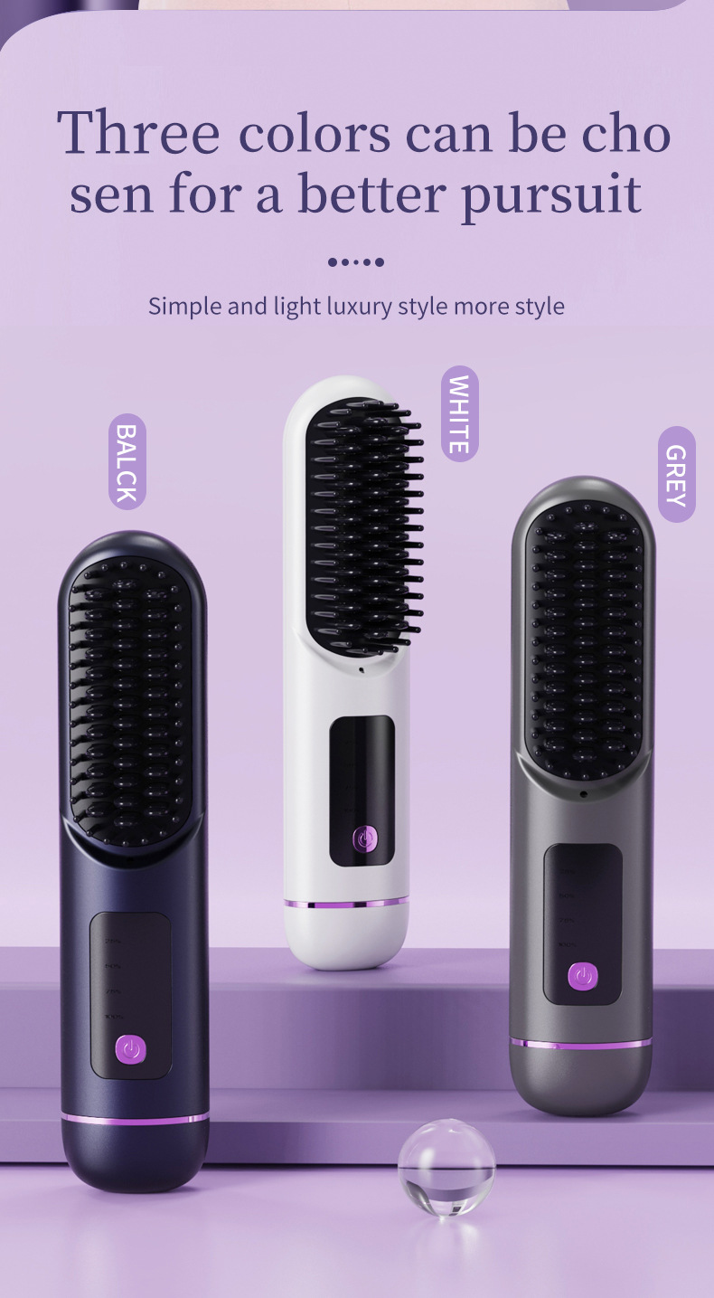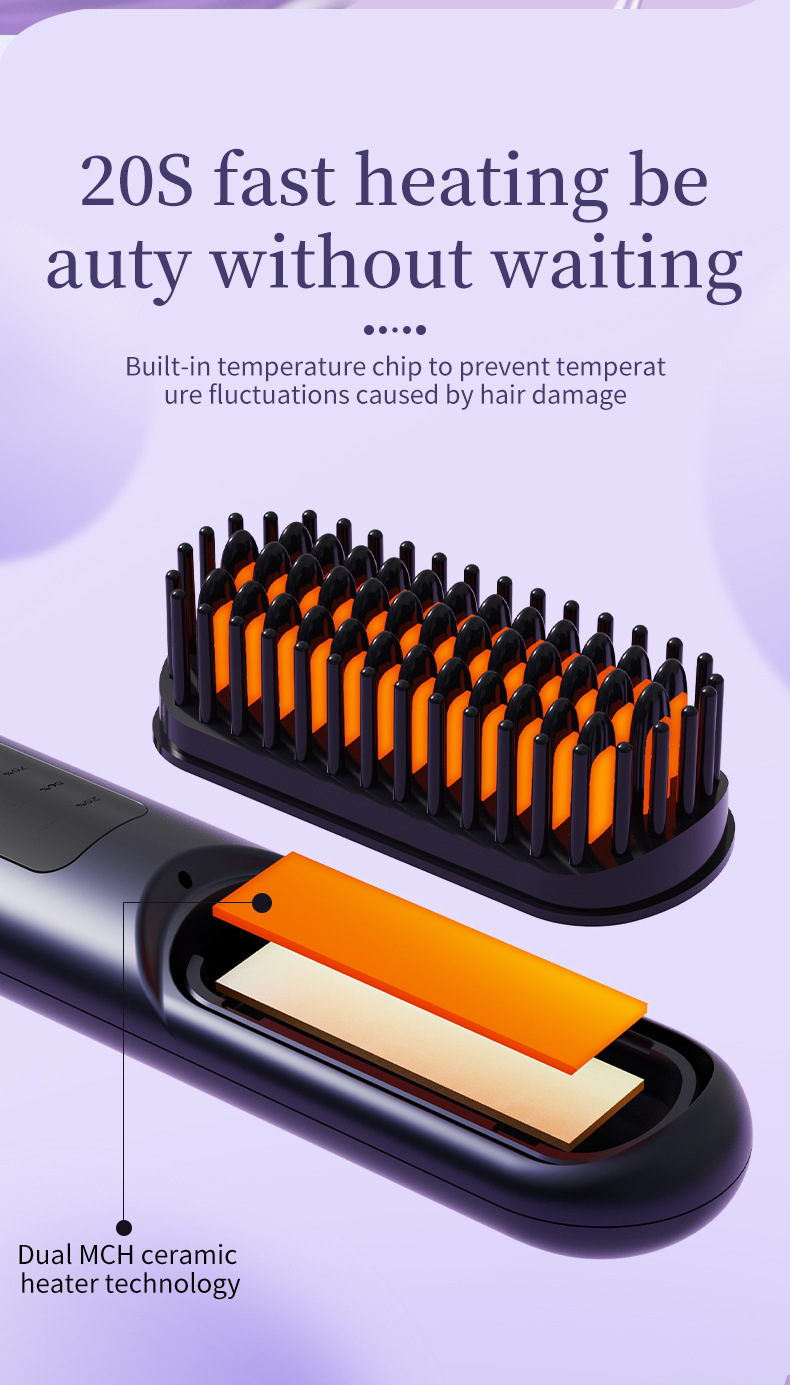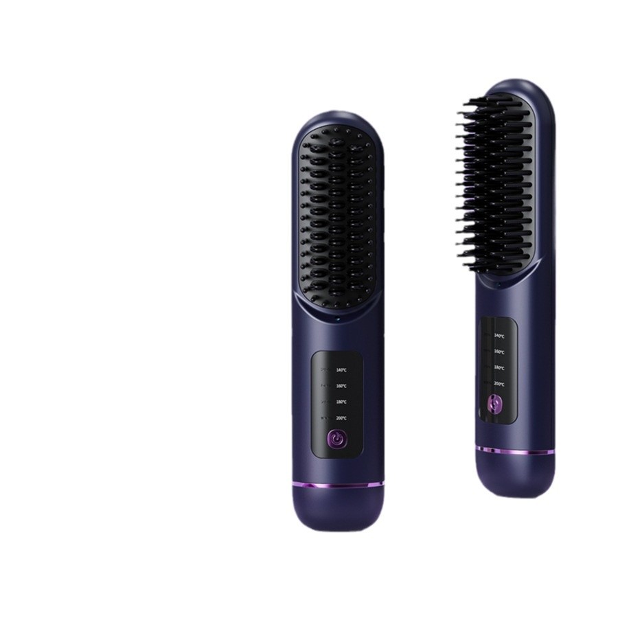 跨境无线直发梳迷你便携式直发器懒人家用卷发棒小型充电直卷两用