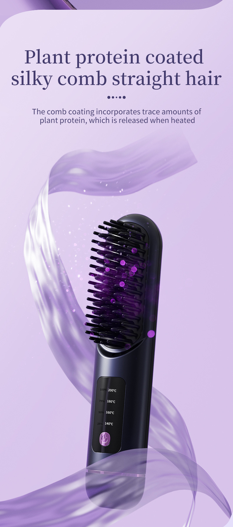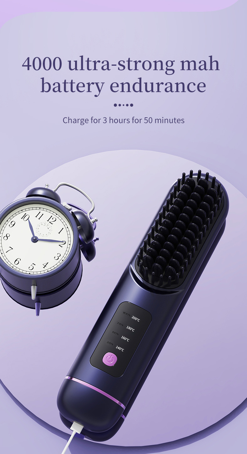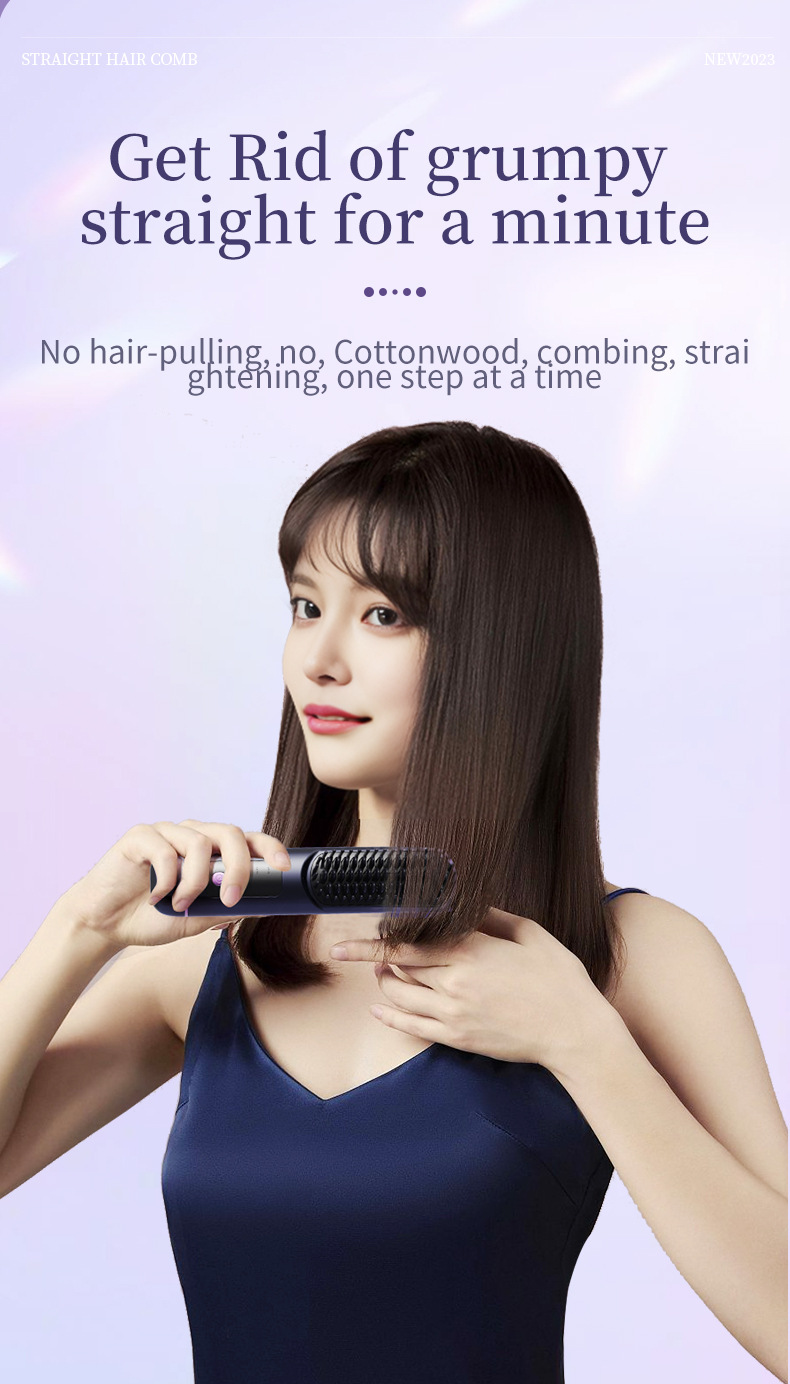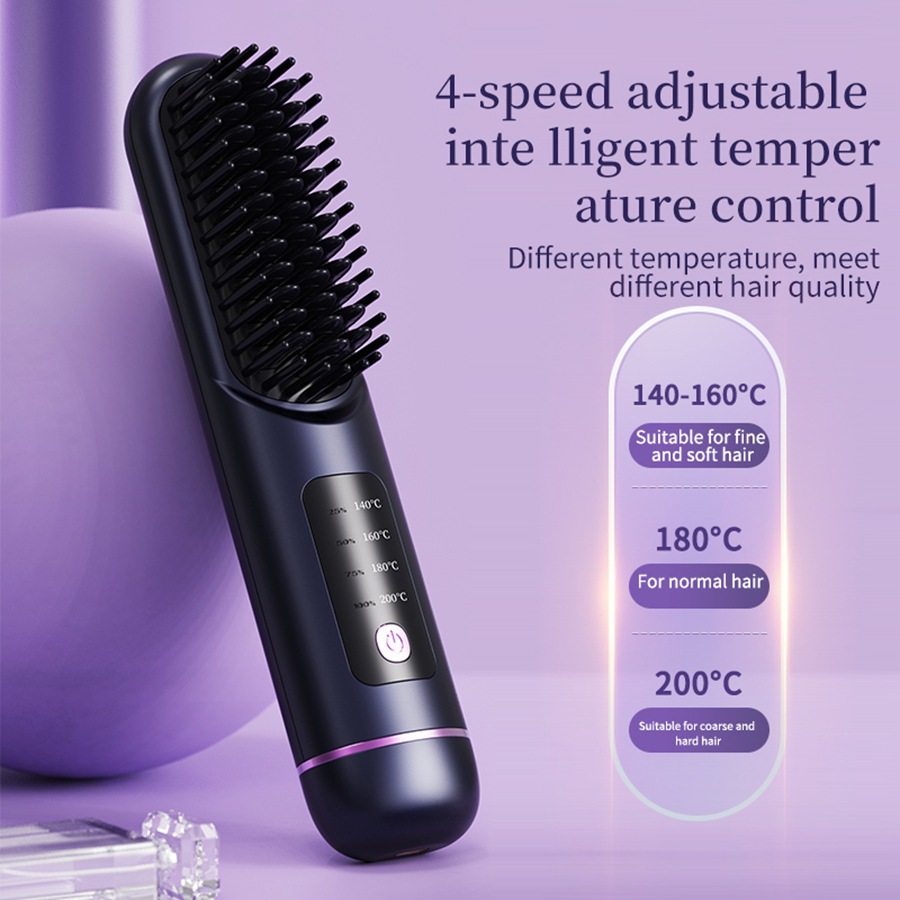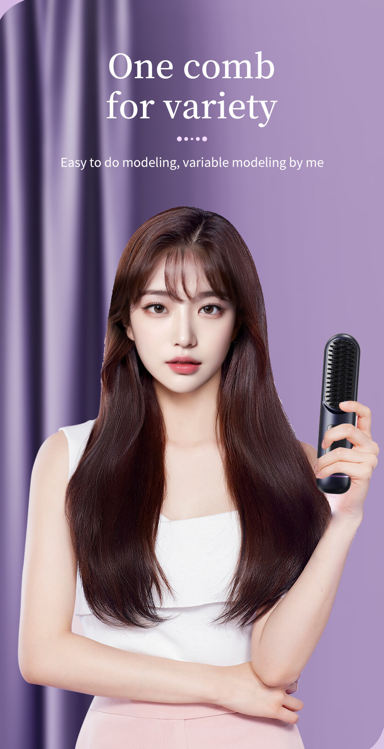 跨境无线直发梳迷你便携式直发器懒人家用卷发棒小型充电直卷两用