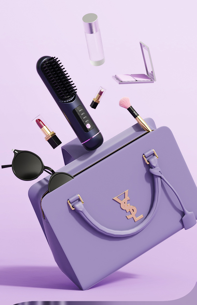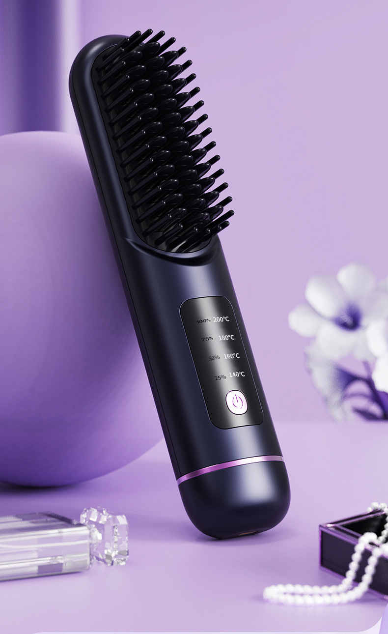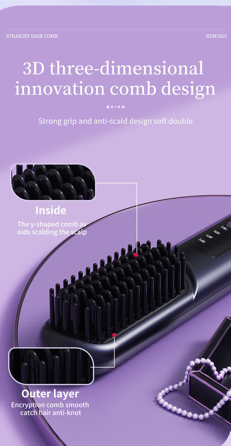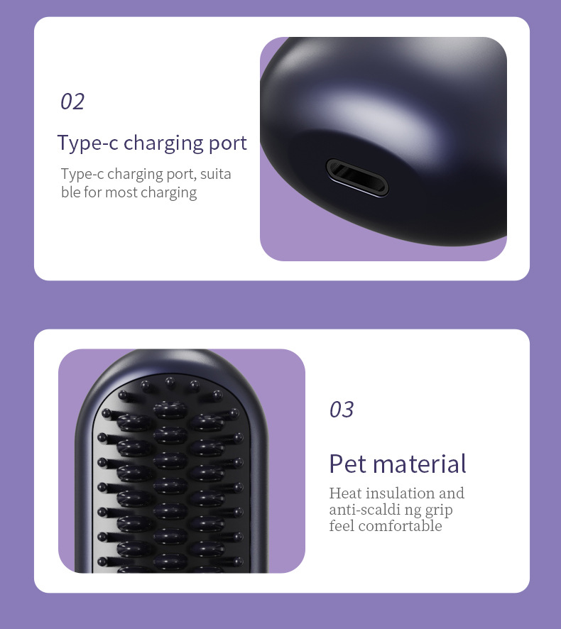 跨境无线直发梳迷你便携式直发器懒人家用卷发棒小型充电直卷两用