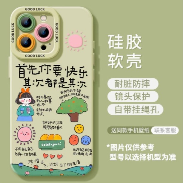 适用苹果16promax手机壳iphone16新款13首先你要快乐15文字15pro