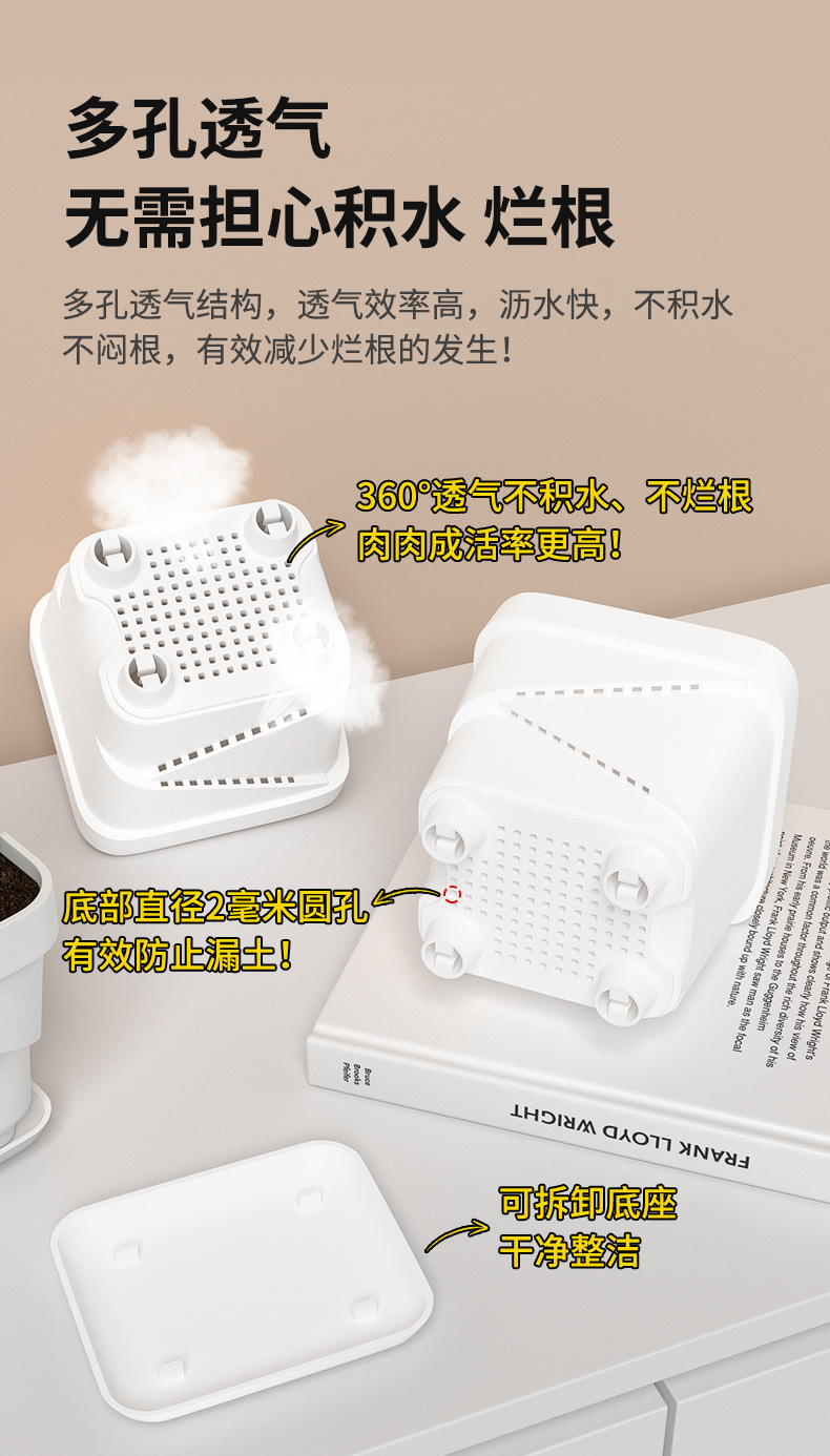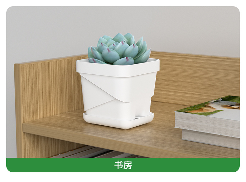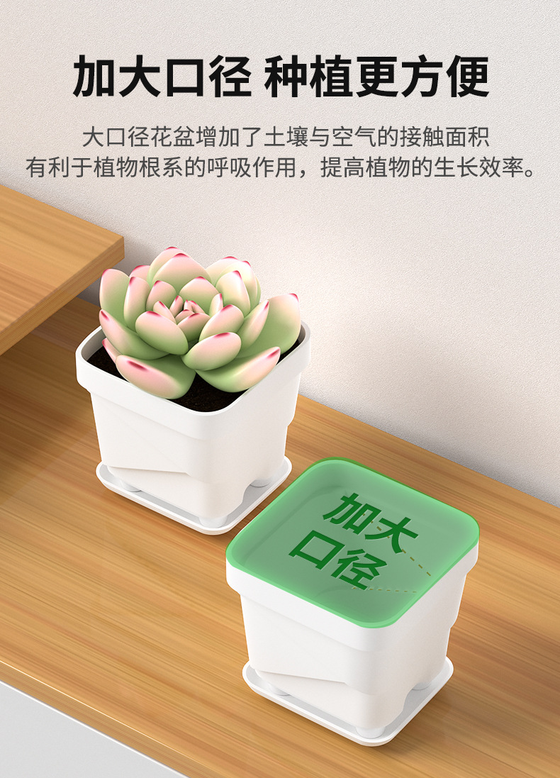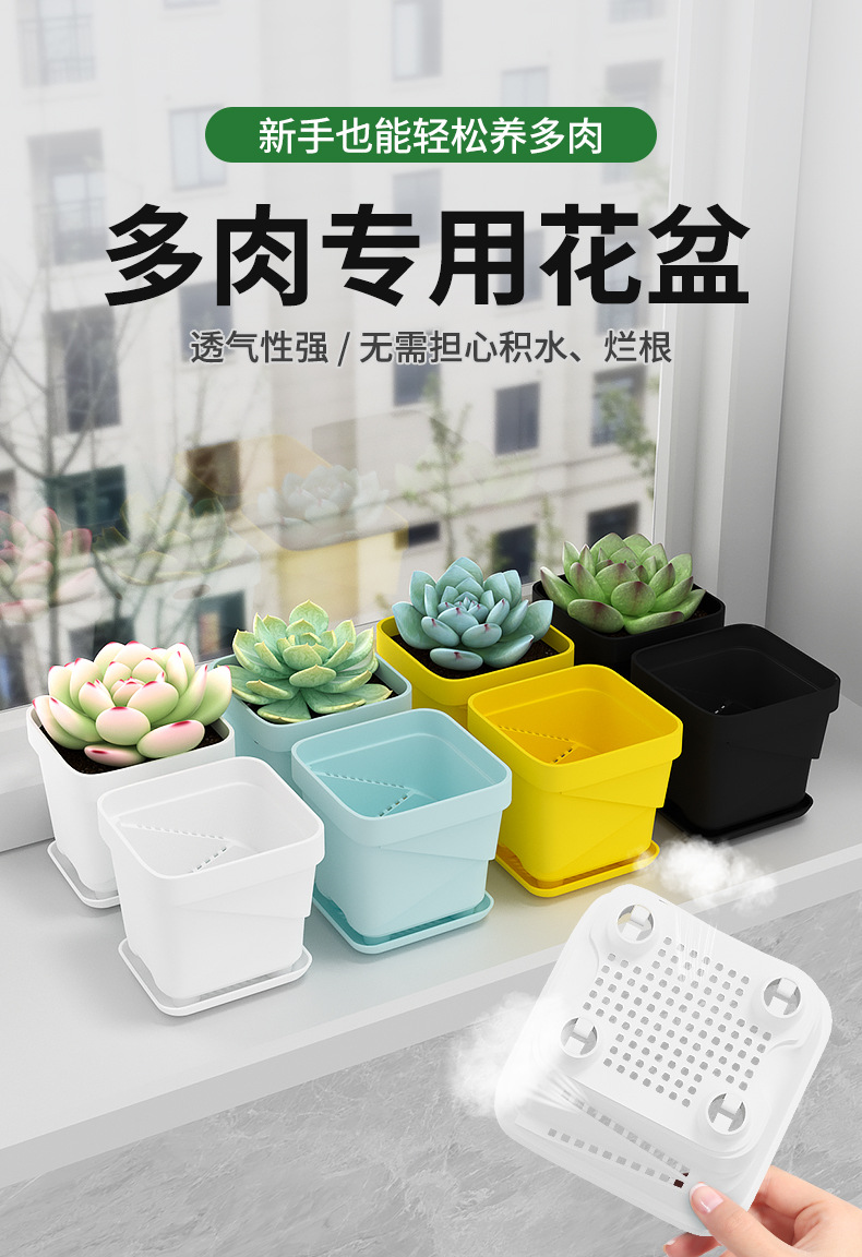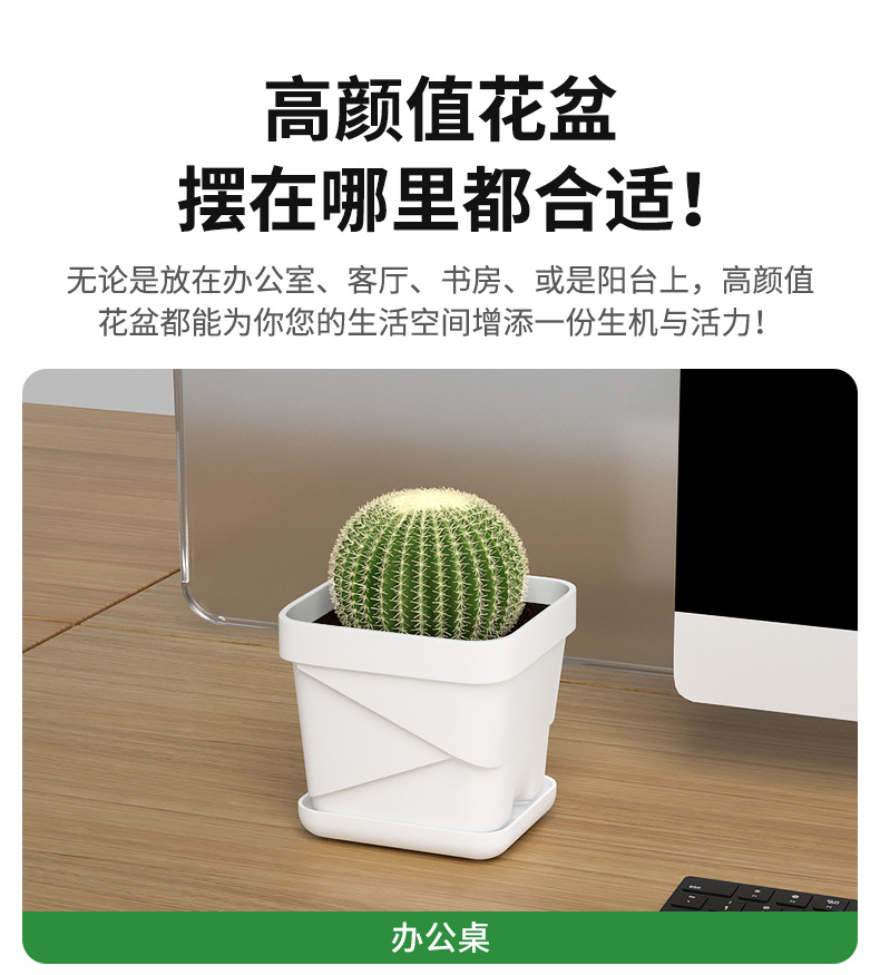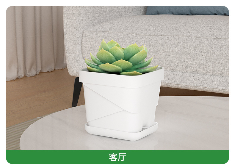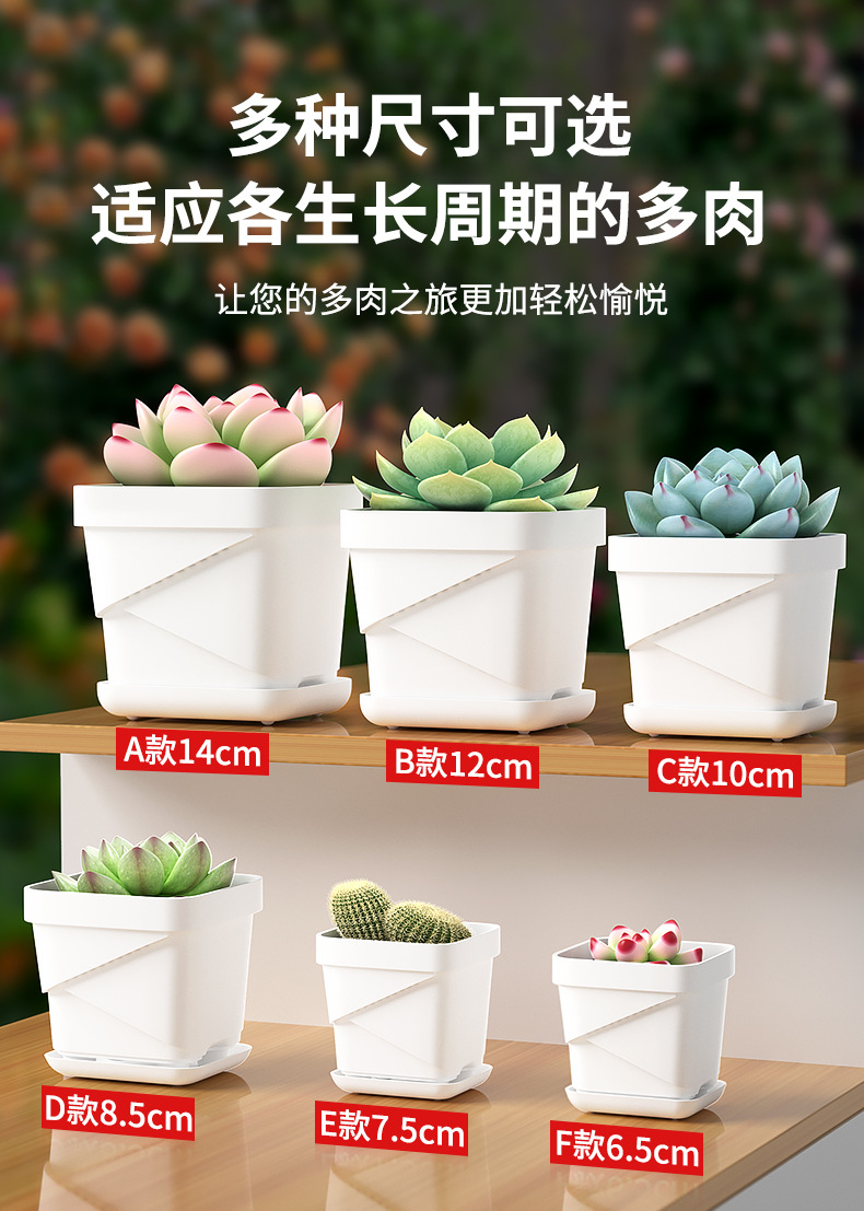 跨境专供PP塑料小花盆客厅阳台办公桌面多肉绿萝盆绿植带托盘花盆