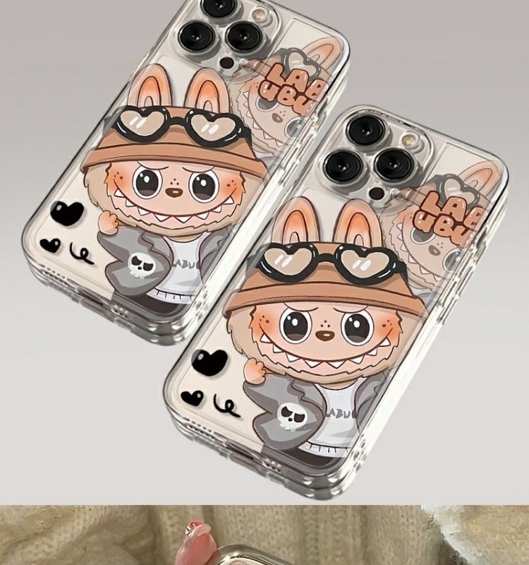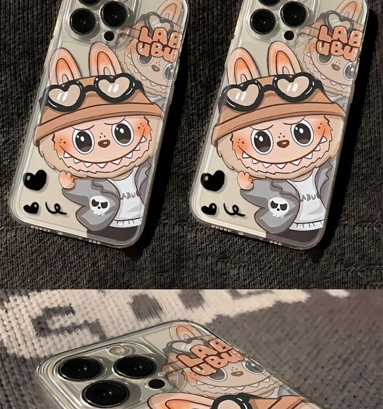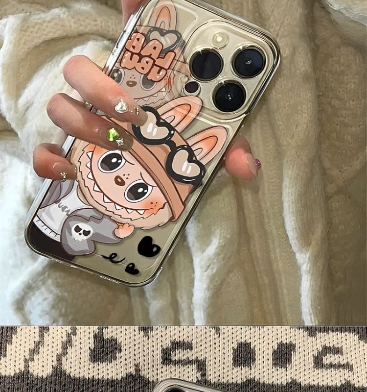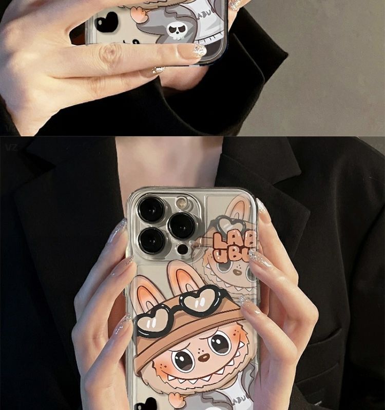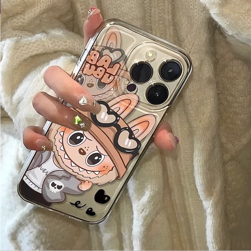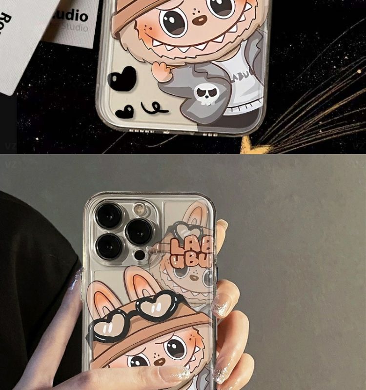 粉色探头拉布布实色天使眼苹果16PROMAX手机壳iphone15太空壳华为