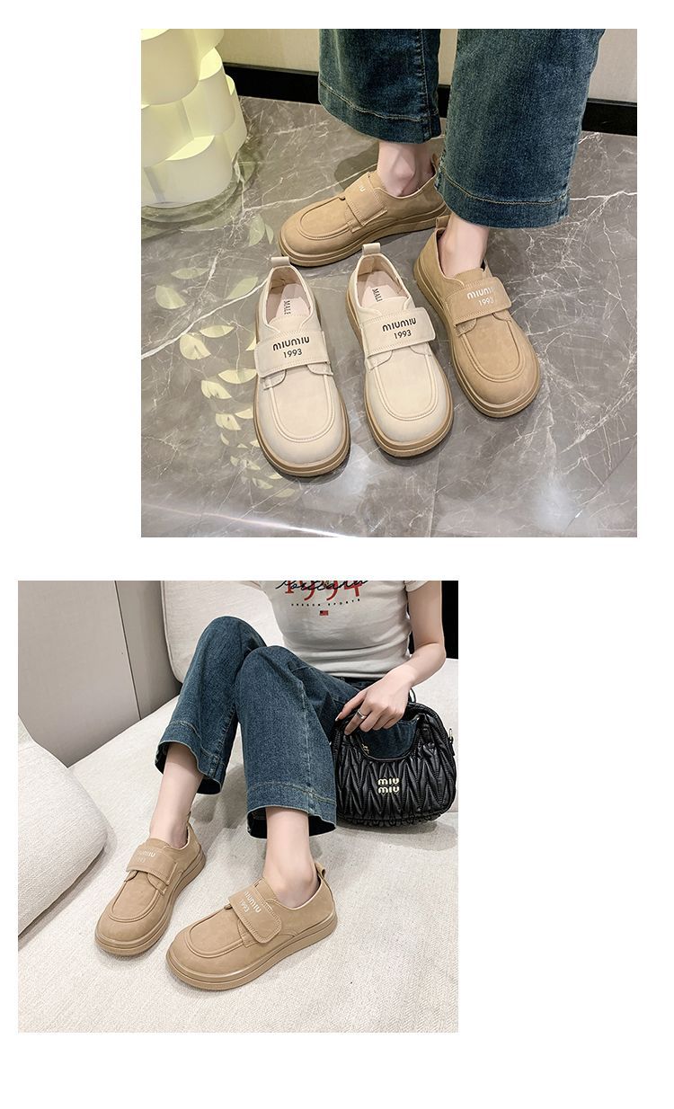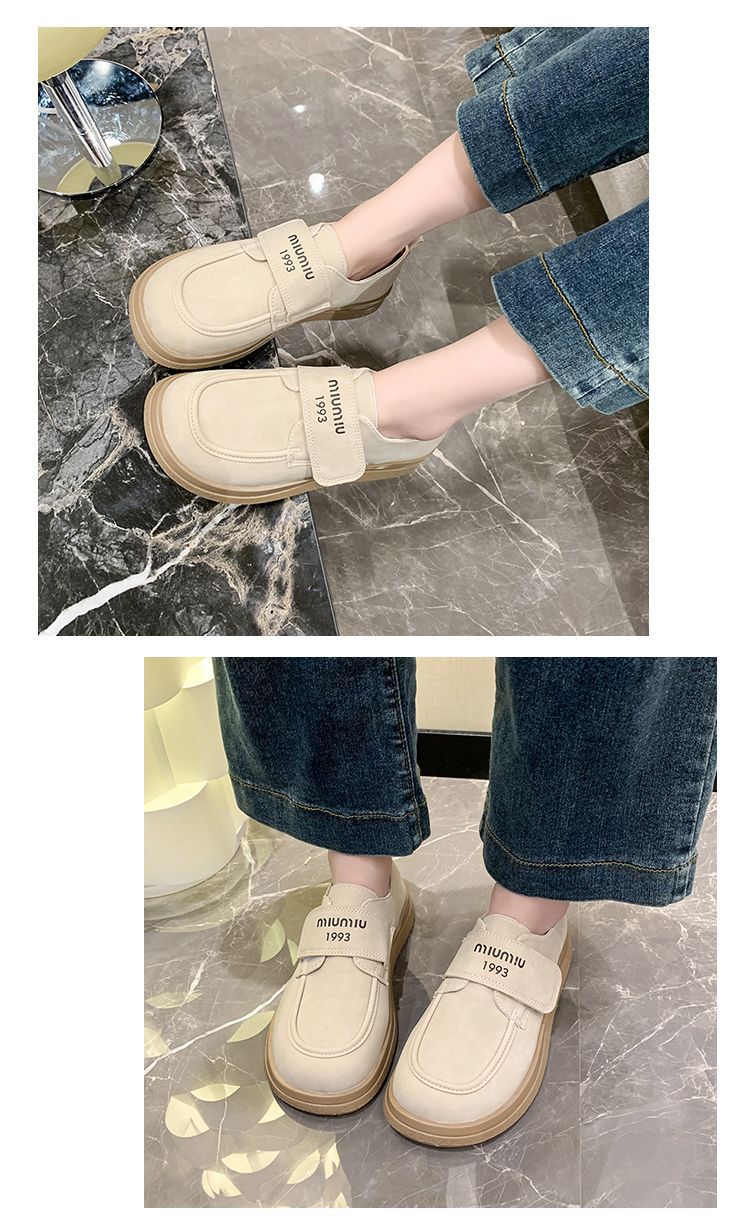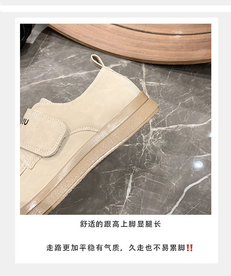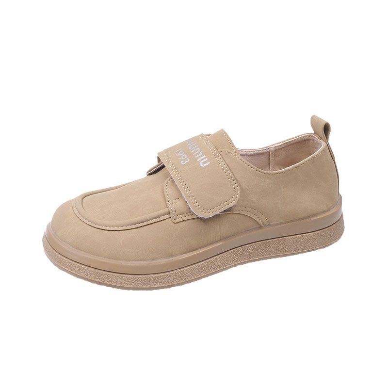平跟勃肯鞋女2024春季新款英伦风圆头百搭小皮鞋一脚蹬魔术贴单鞋