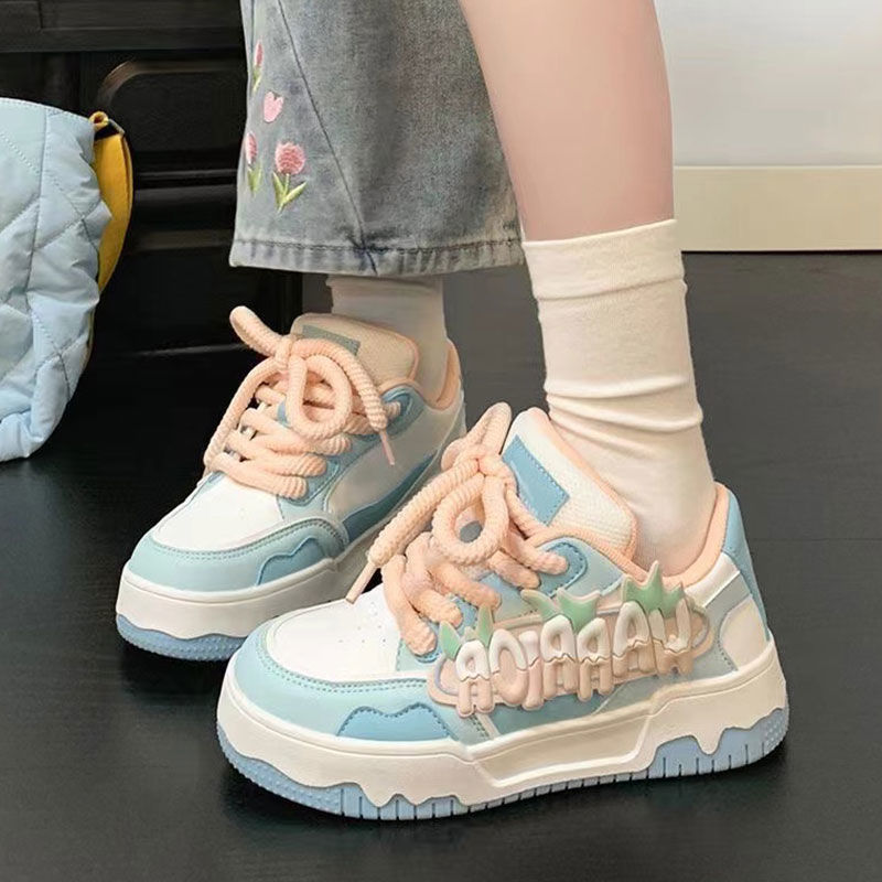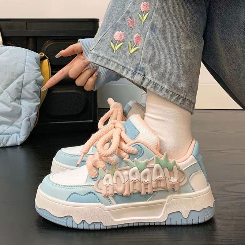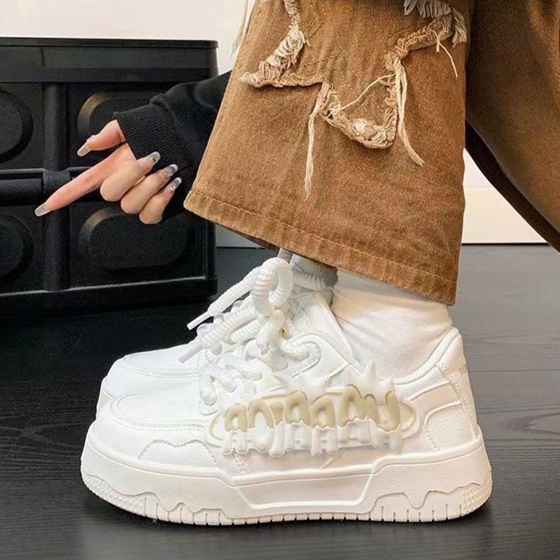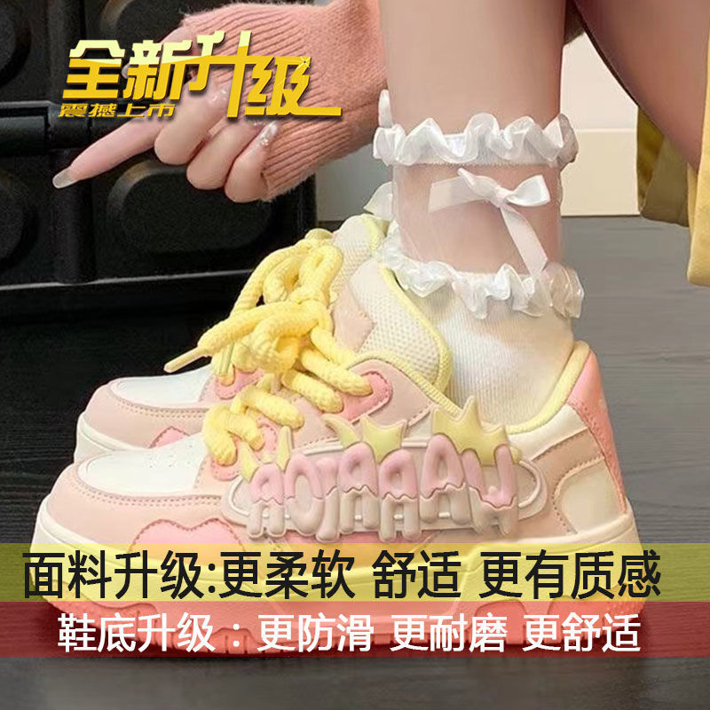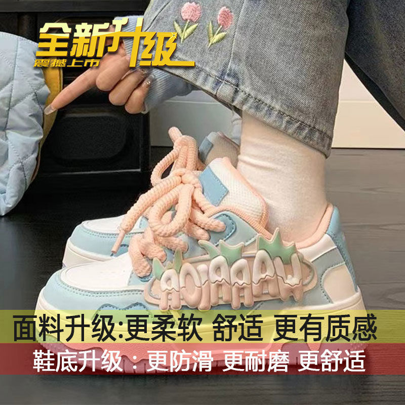 耐磨鞋子女款春季2024新款百搭爆款小白鞋小众爱心设计厚底板鞋潮