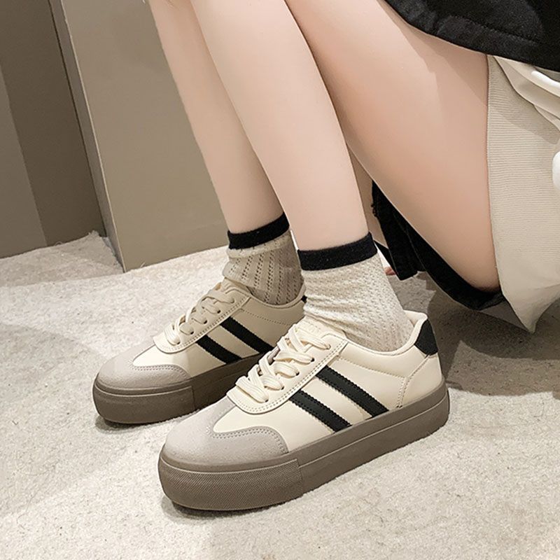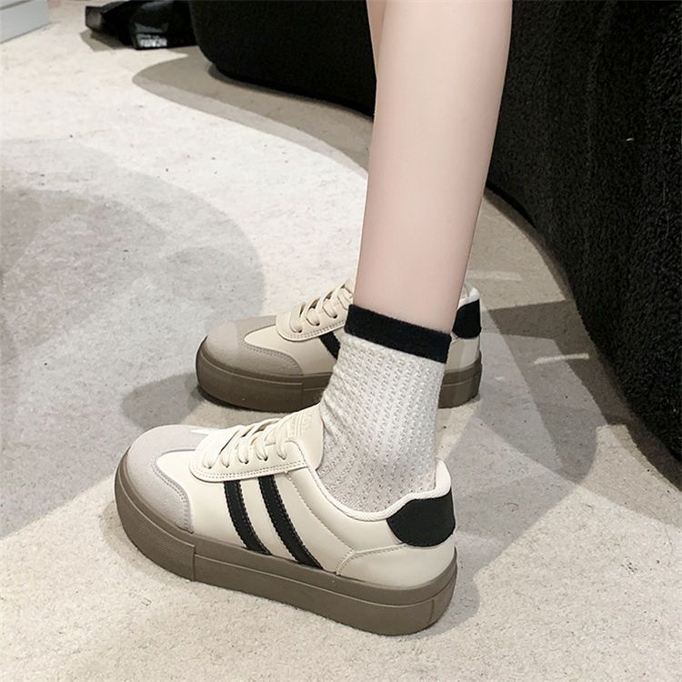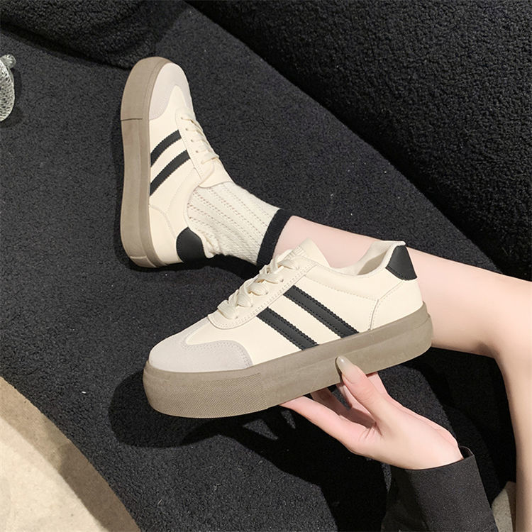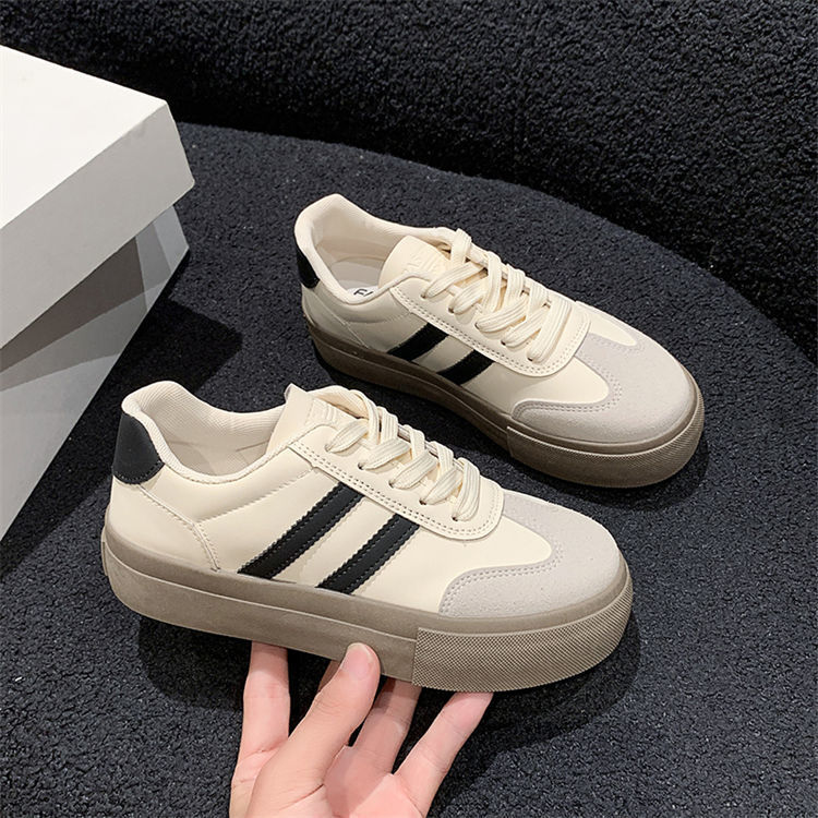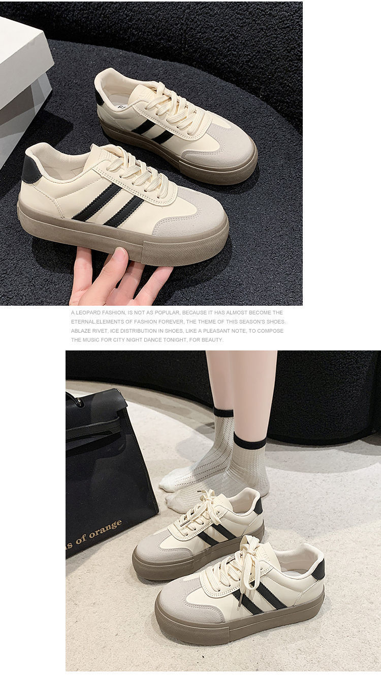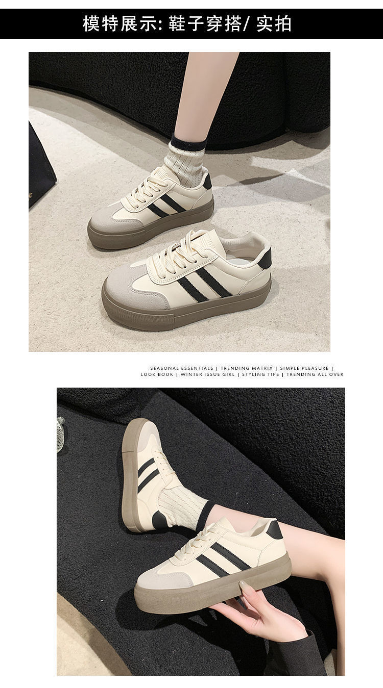 小白鞋女厚底2024年春秋新款阿甘德训鞋百搭休闲板鞋松糕系带单鞋