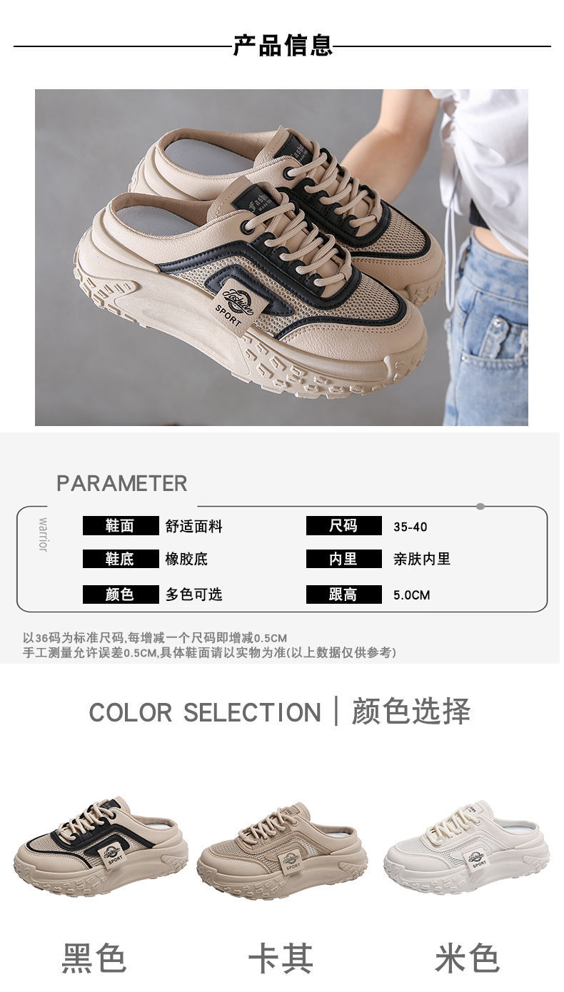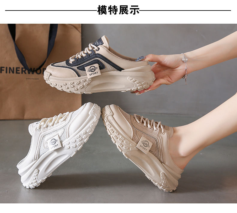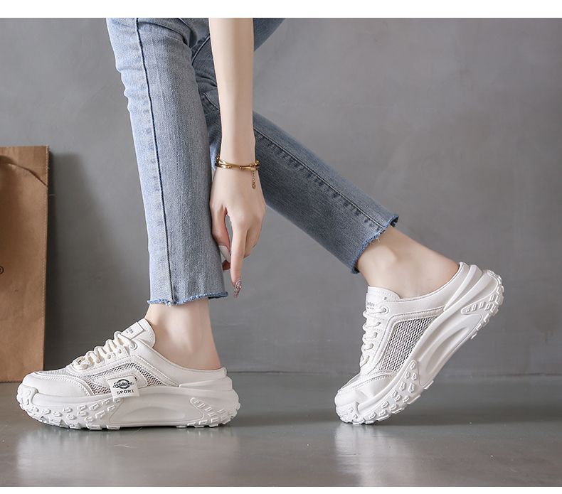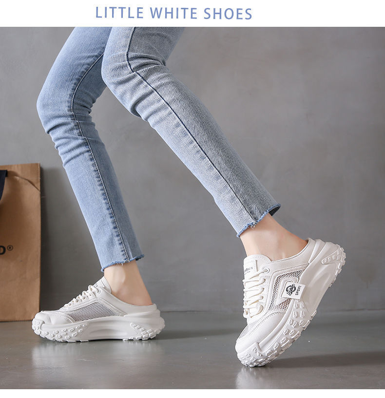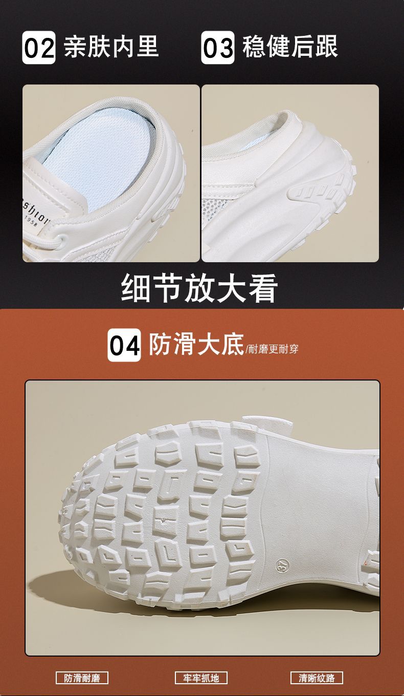 软底时尚百搭半拖鞋春夏透气包头拖鞋2024年夏季新款韩版小白鞋子