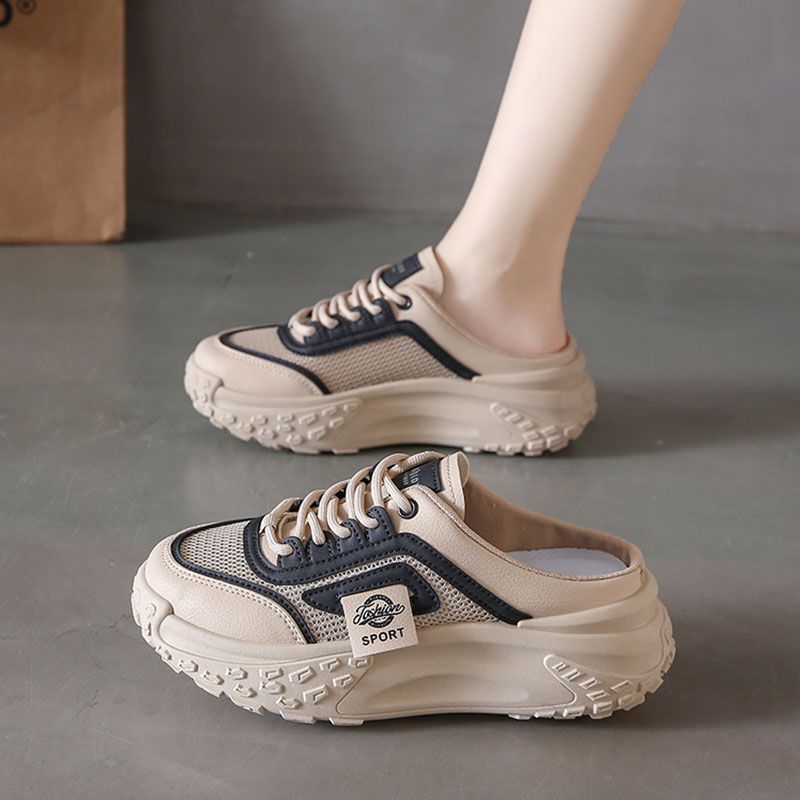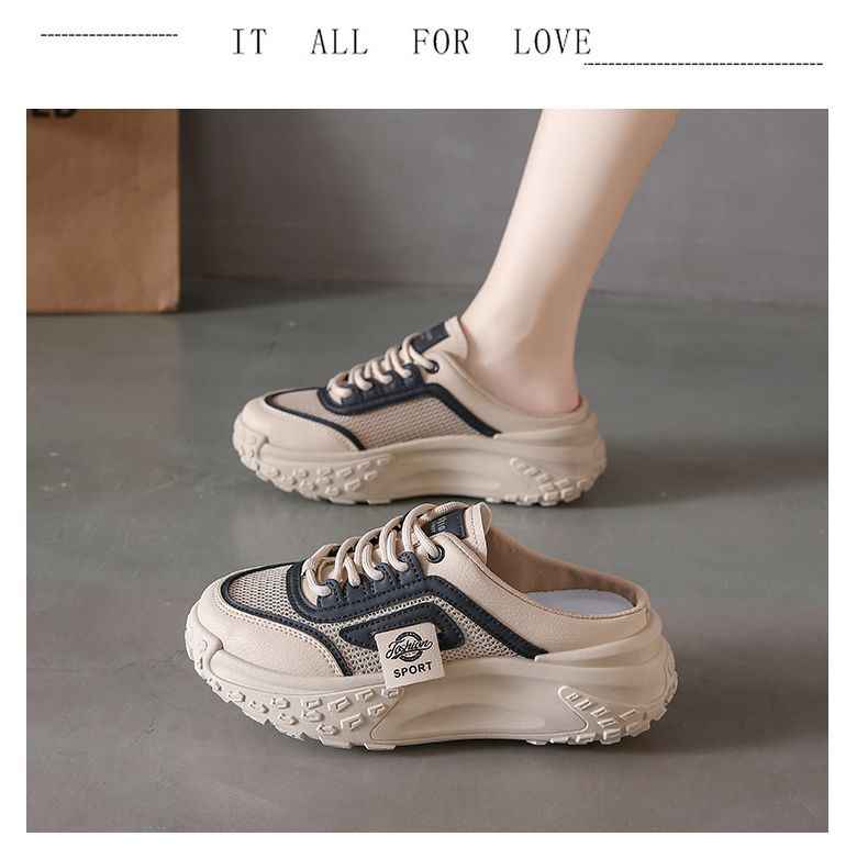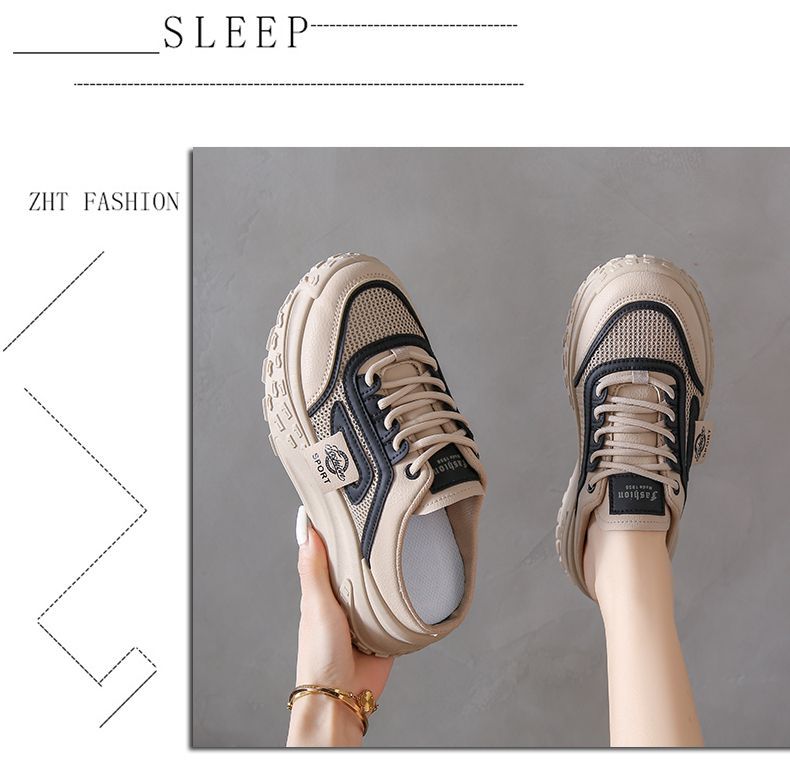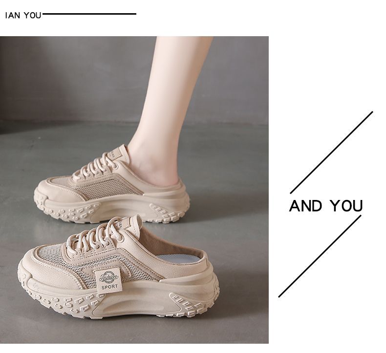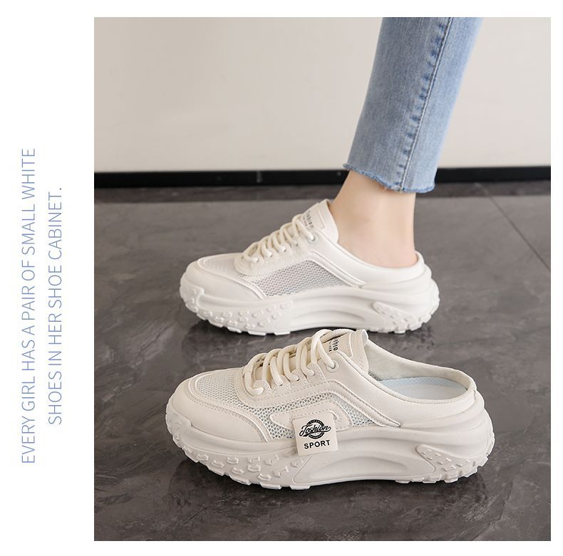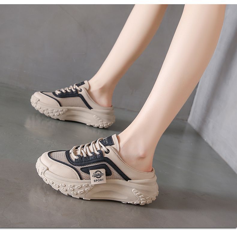 软底时尚百搭半拖鞋春夏透气包头拖鞋2024年夏季新款韩版小白鞋子