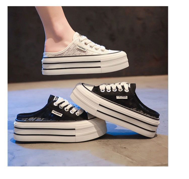 包头半拖鞋女夏2024新款百搭厚底无后跟透气网面懒人一脚蹬凉拖鞋