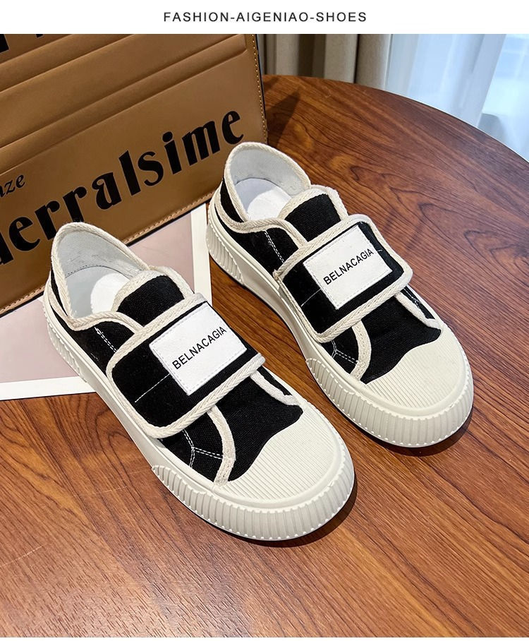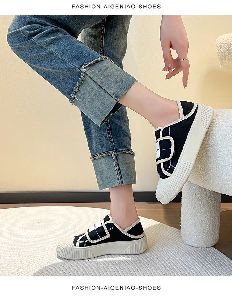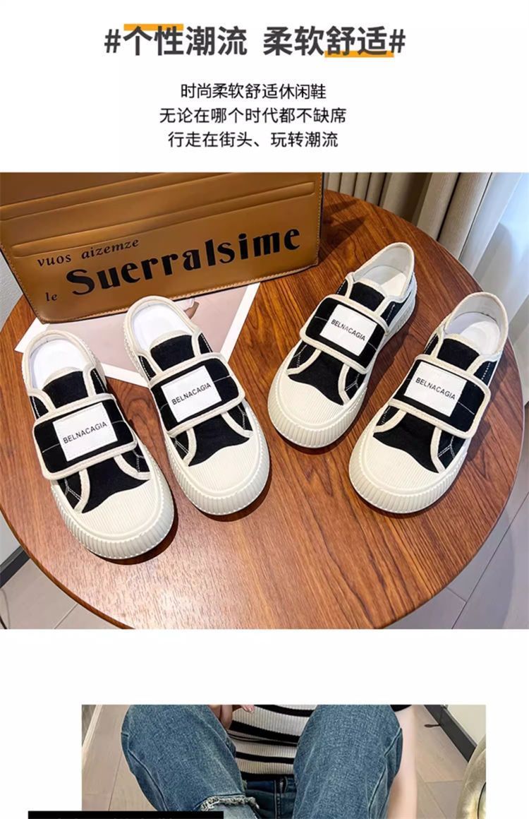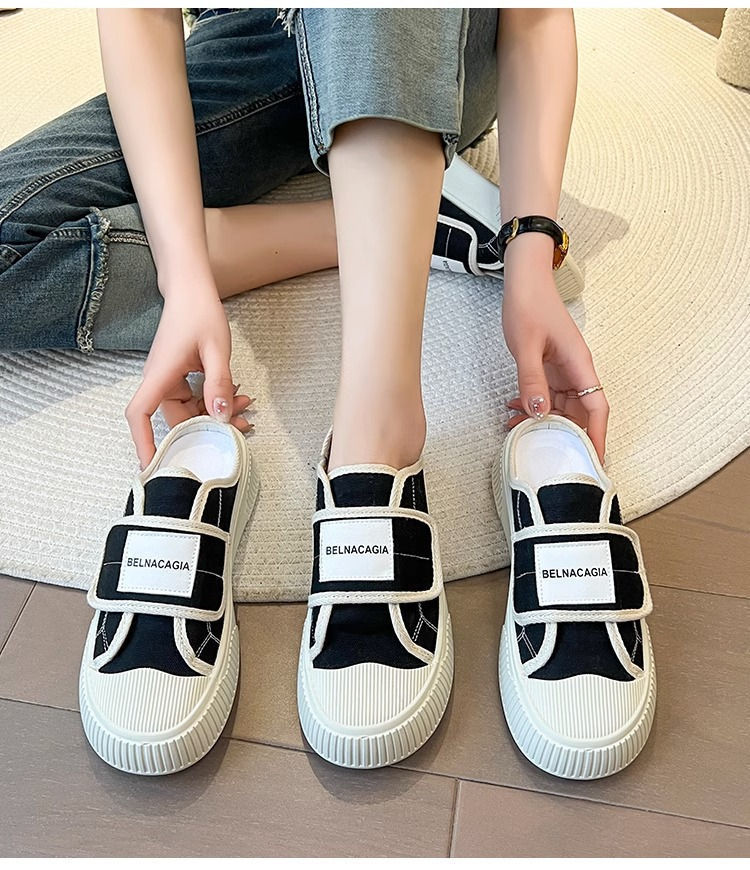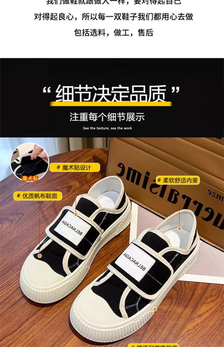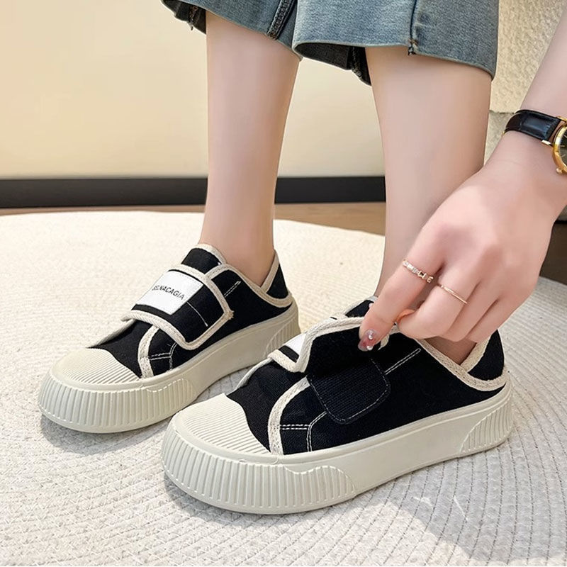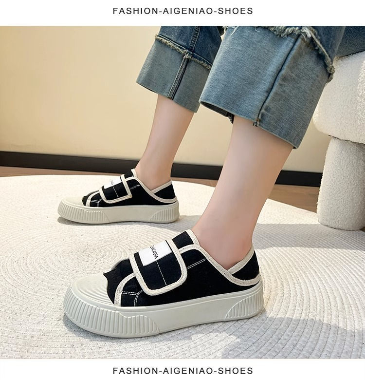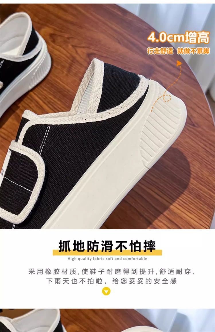 学院风魔术贴帆布鞋女鞋2024新款春秋夏款厚底布鞋休闲板鞋一脚蹬
