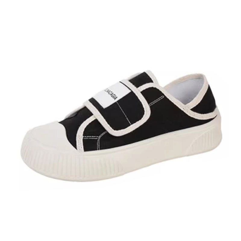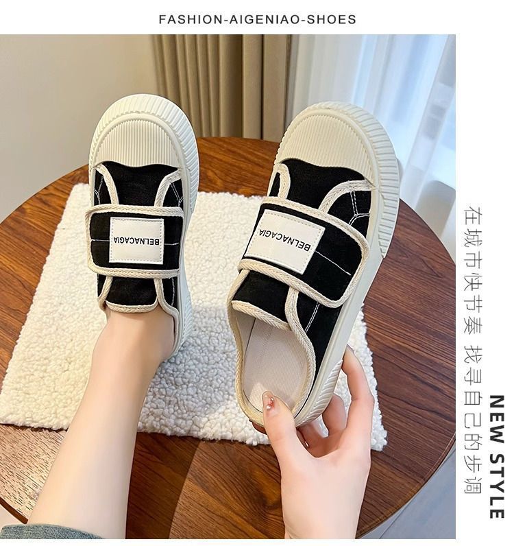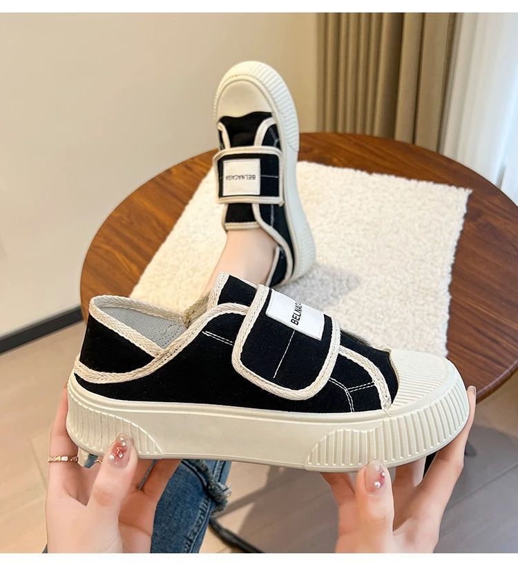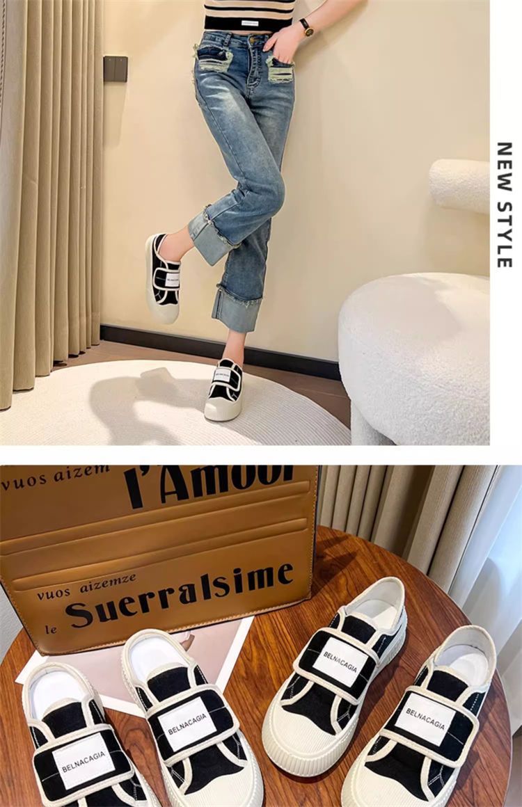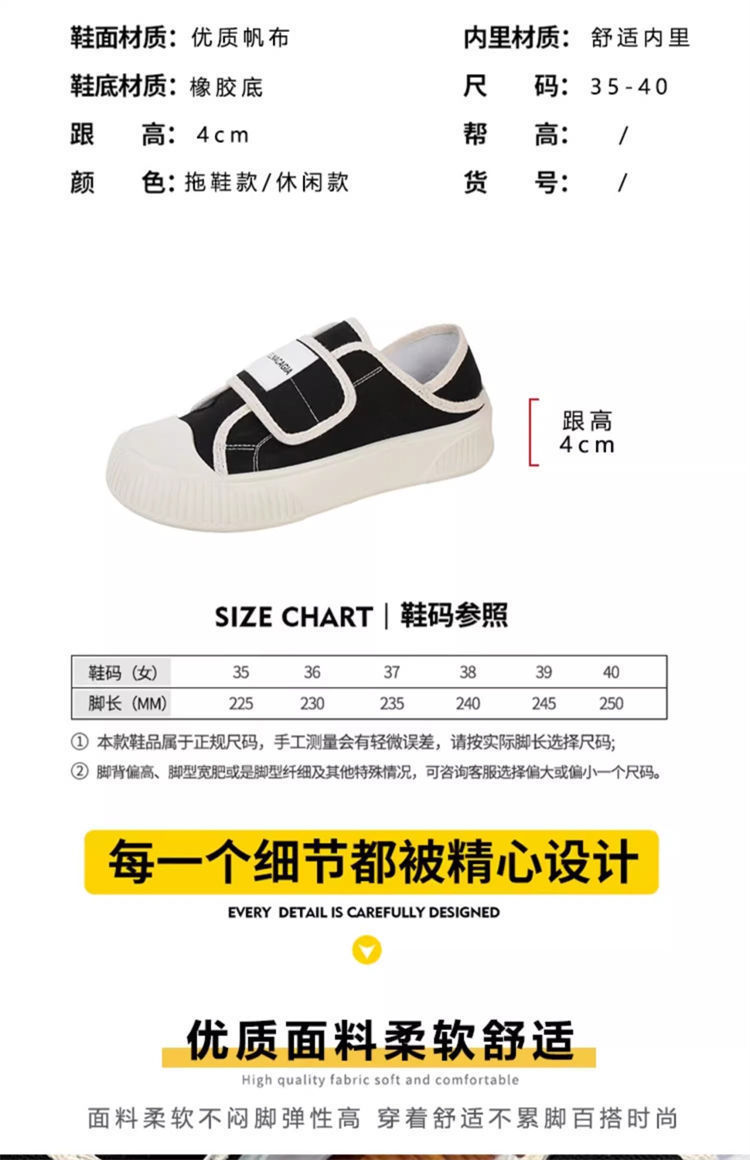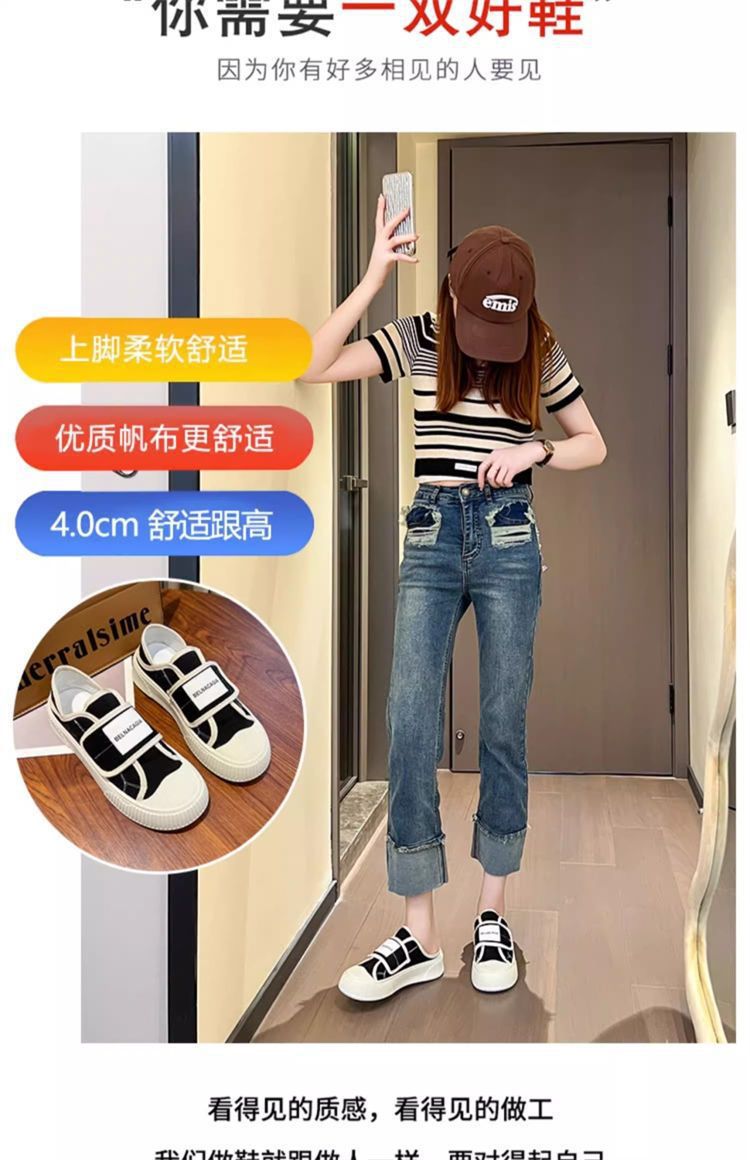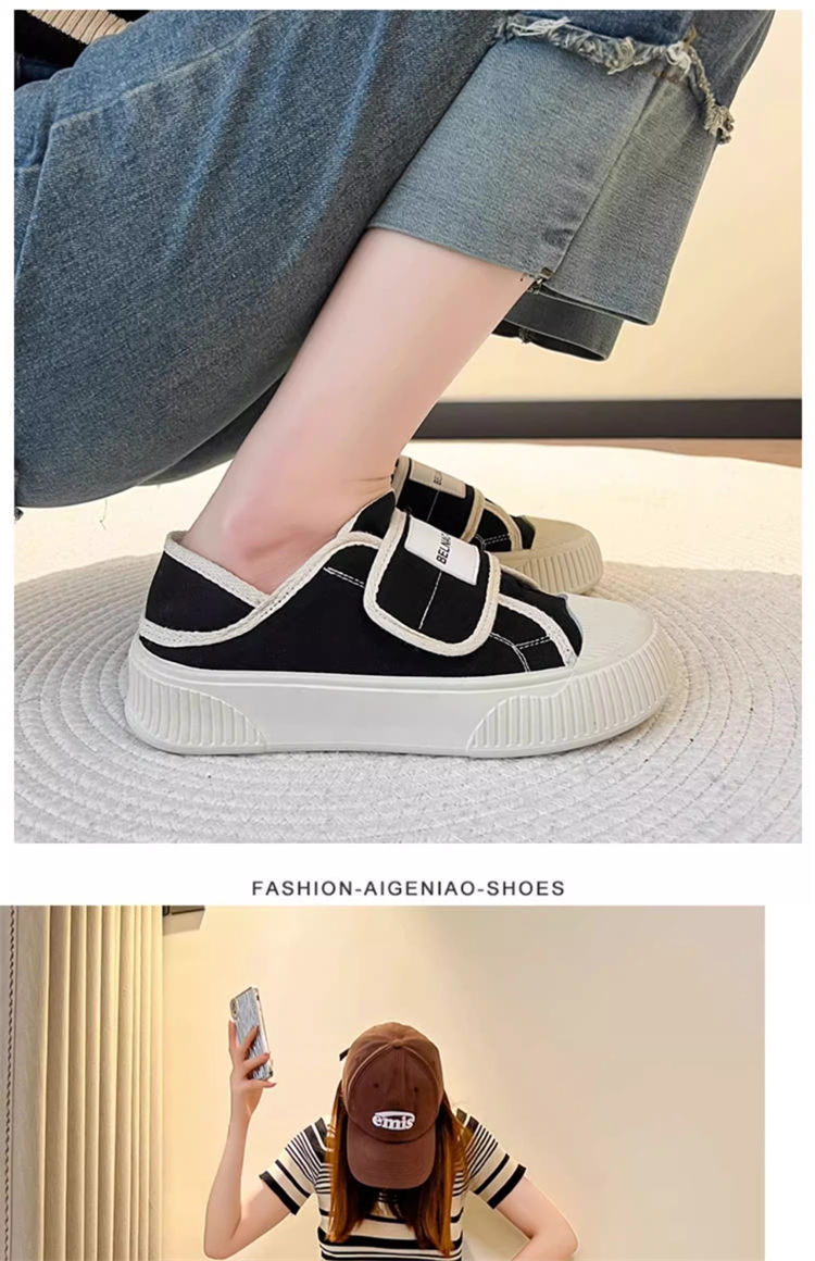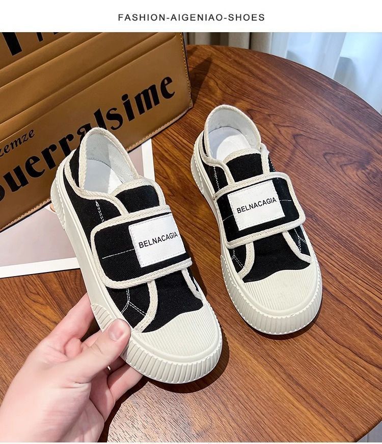 学院风魔术贴帆布鞋女鞋2024新款春秋夏款厚底布鞋休闲板鞋一脚蹬