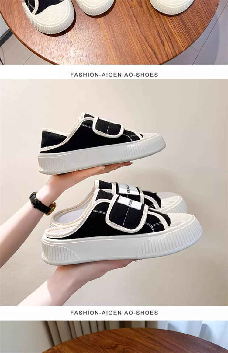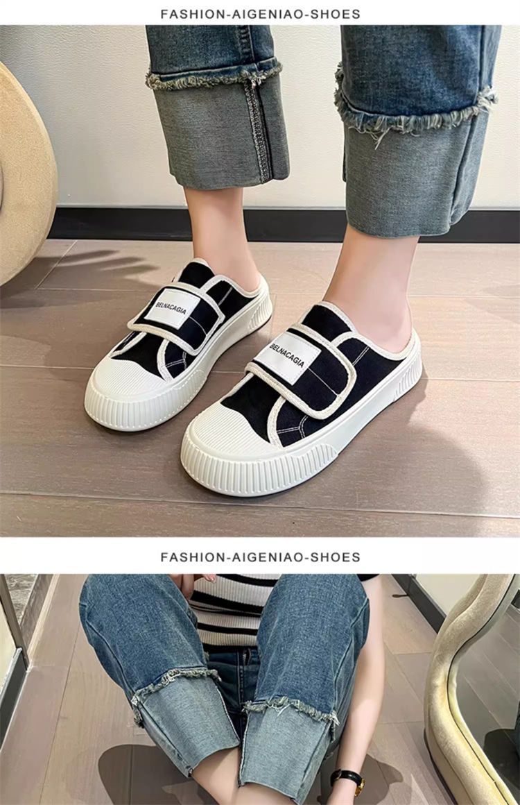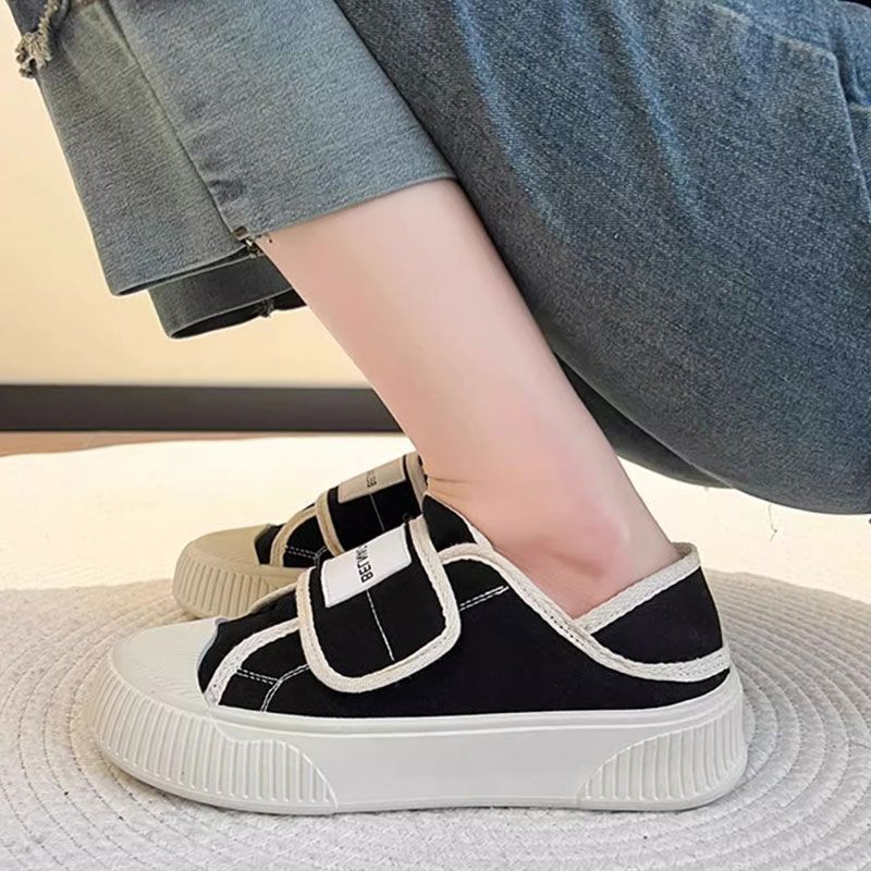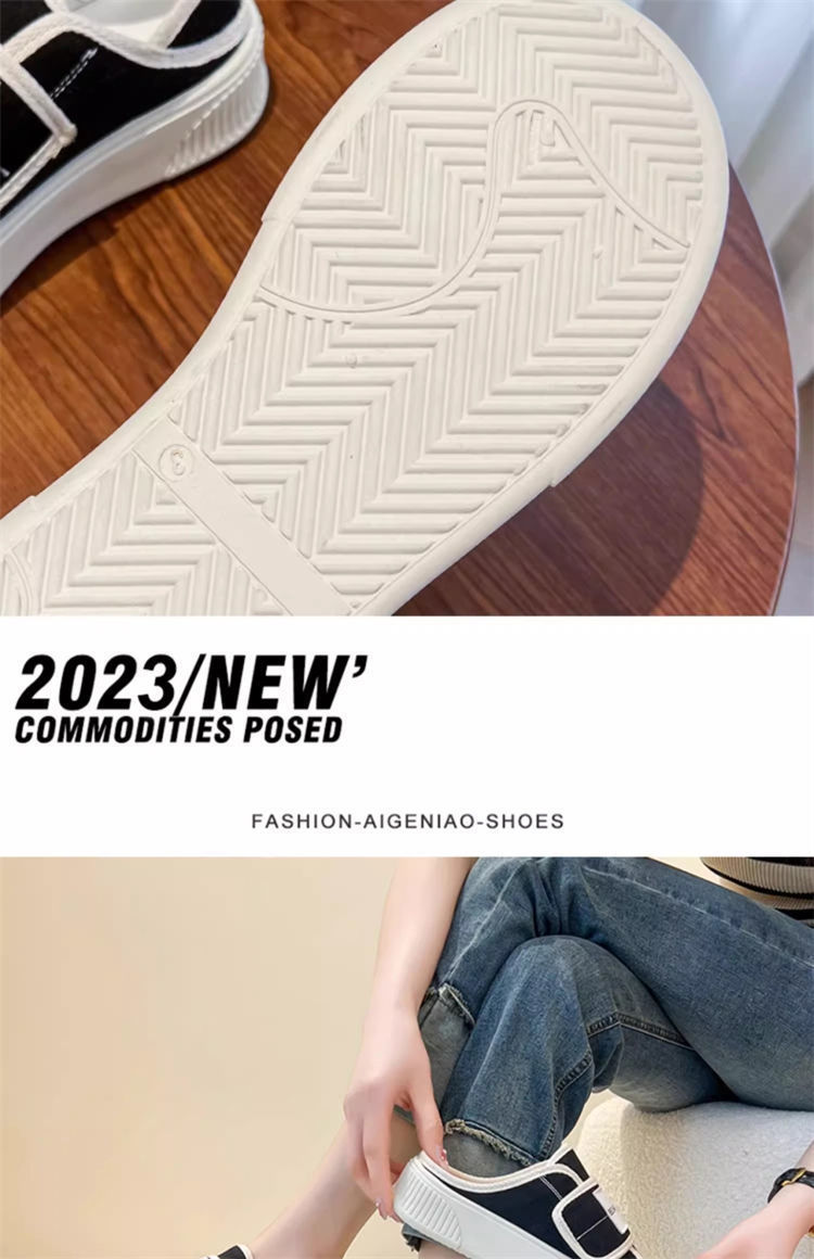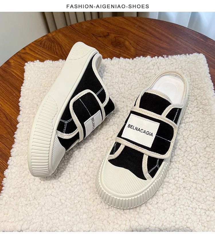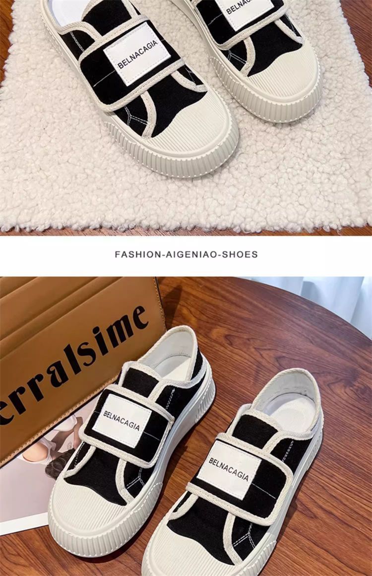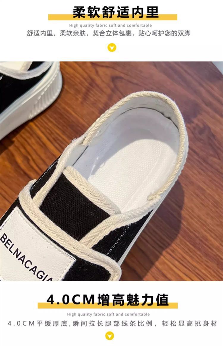 学院风魔术贴帆布鞋女鞋2024新款春秋夏款厚底布鞋休闲板鞋一脚蹬