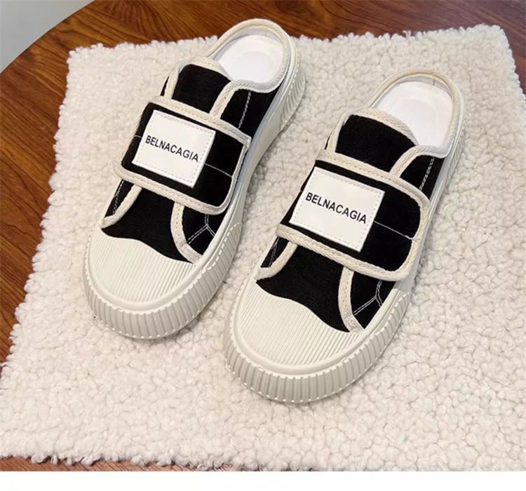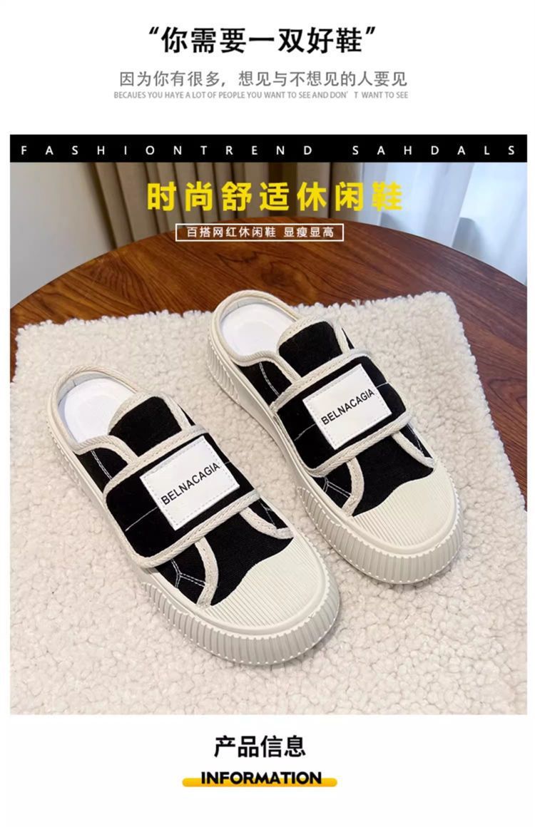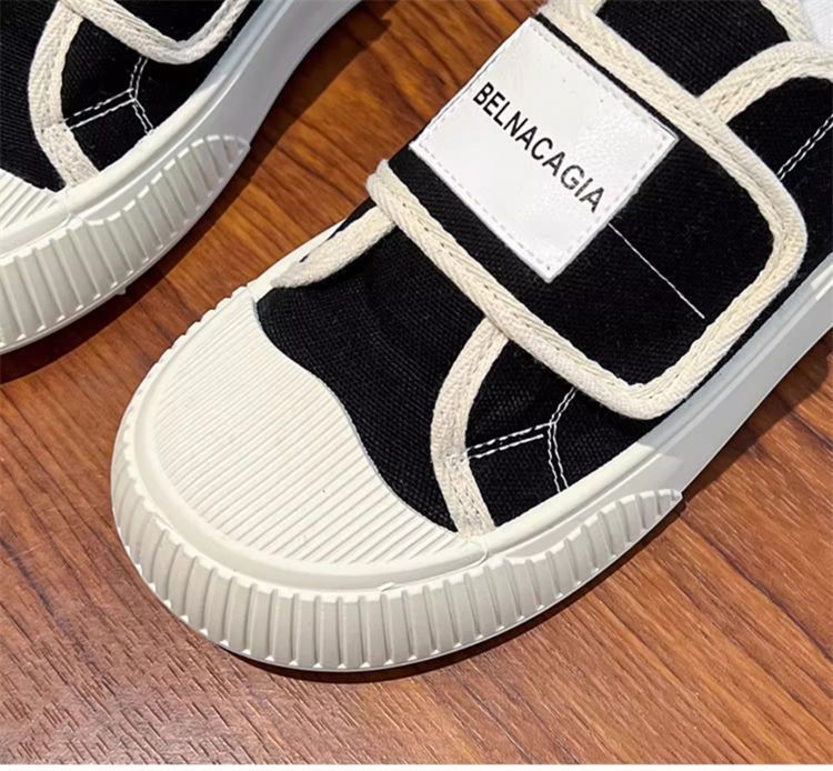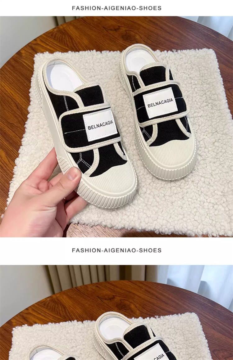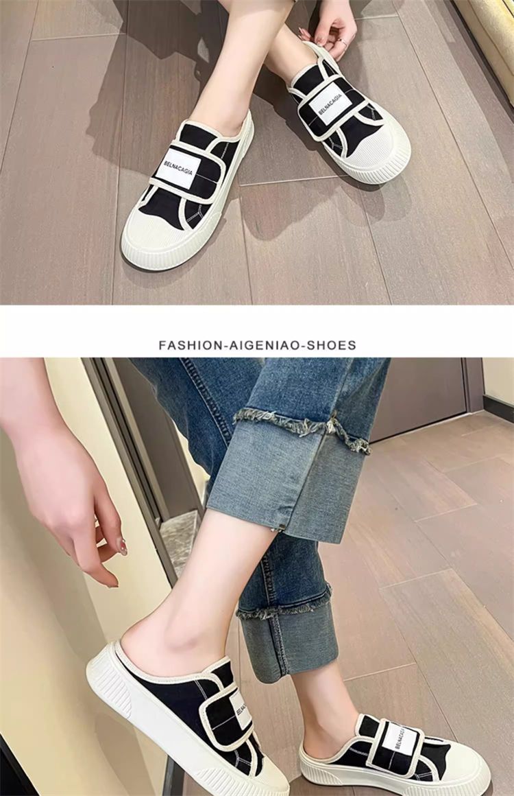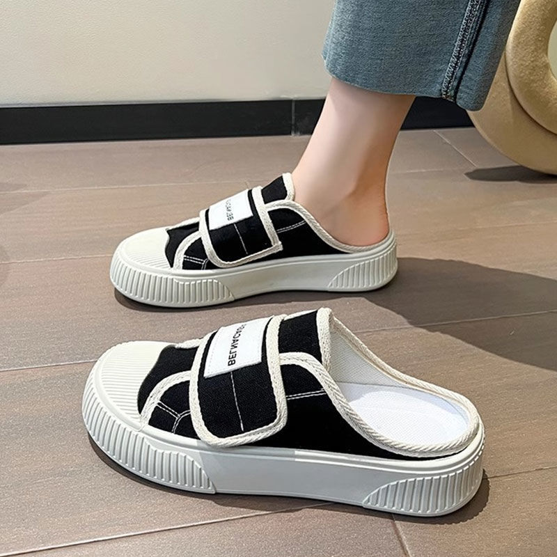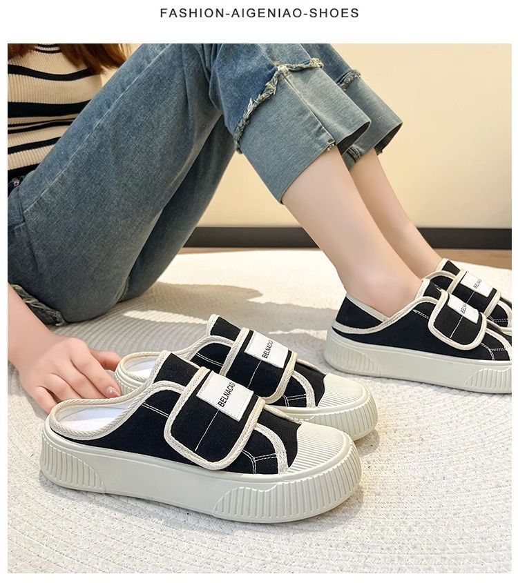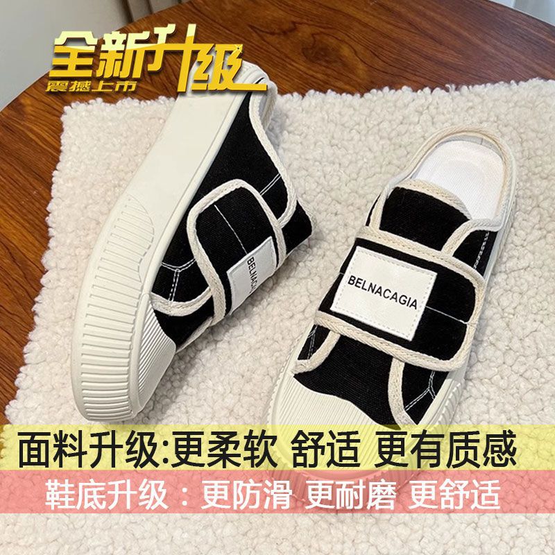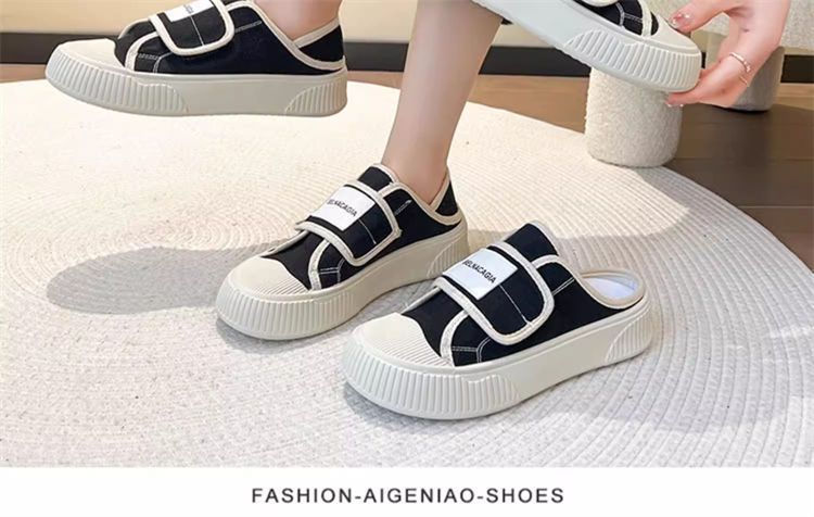 学院风魔术贴帆布鞋女鞋2024新款春秋夏款厚底布鞋休闲板鞋一脚蹬