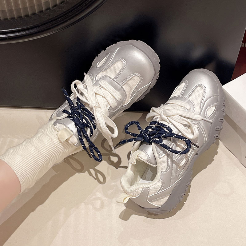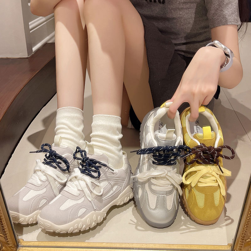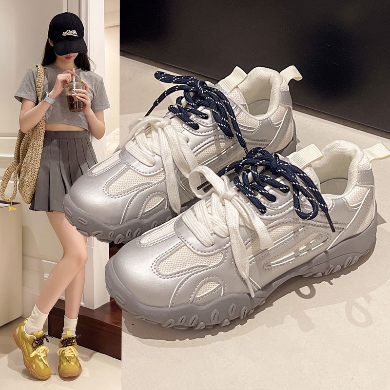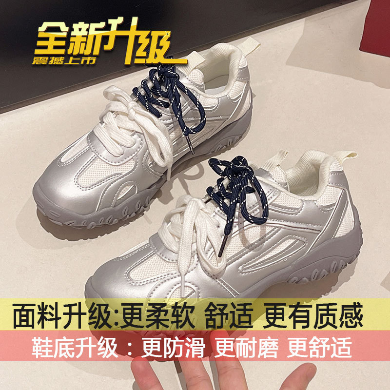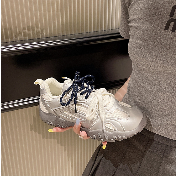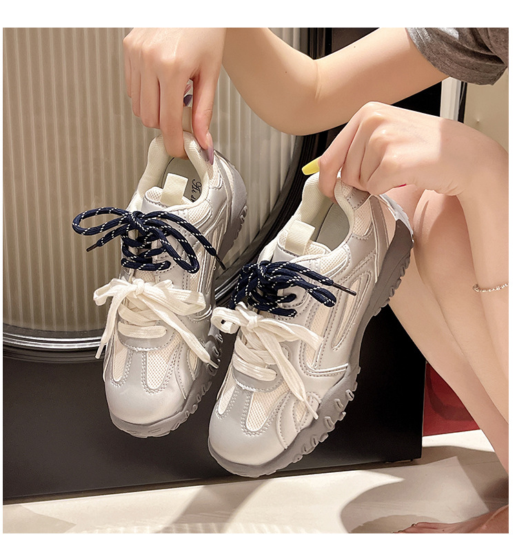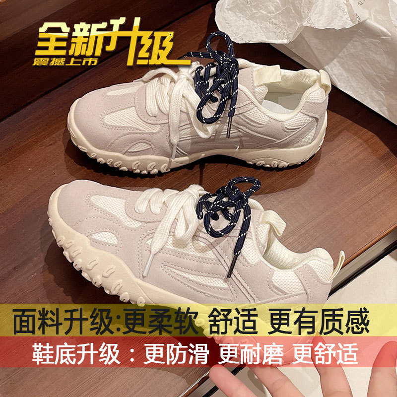 爆款超火德训鞋女2024秋季新款薄款透气运动鞋厚底系带圆头小白鞋