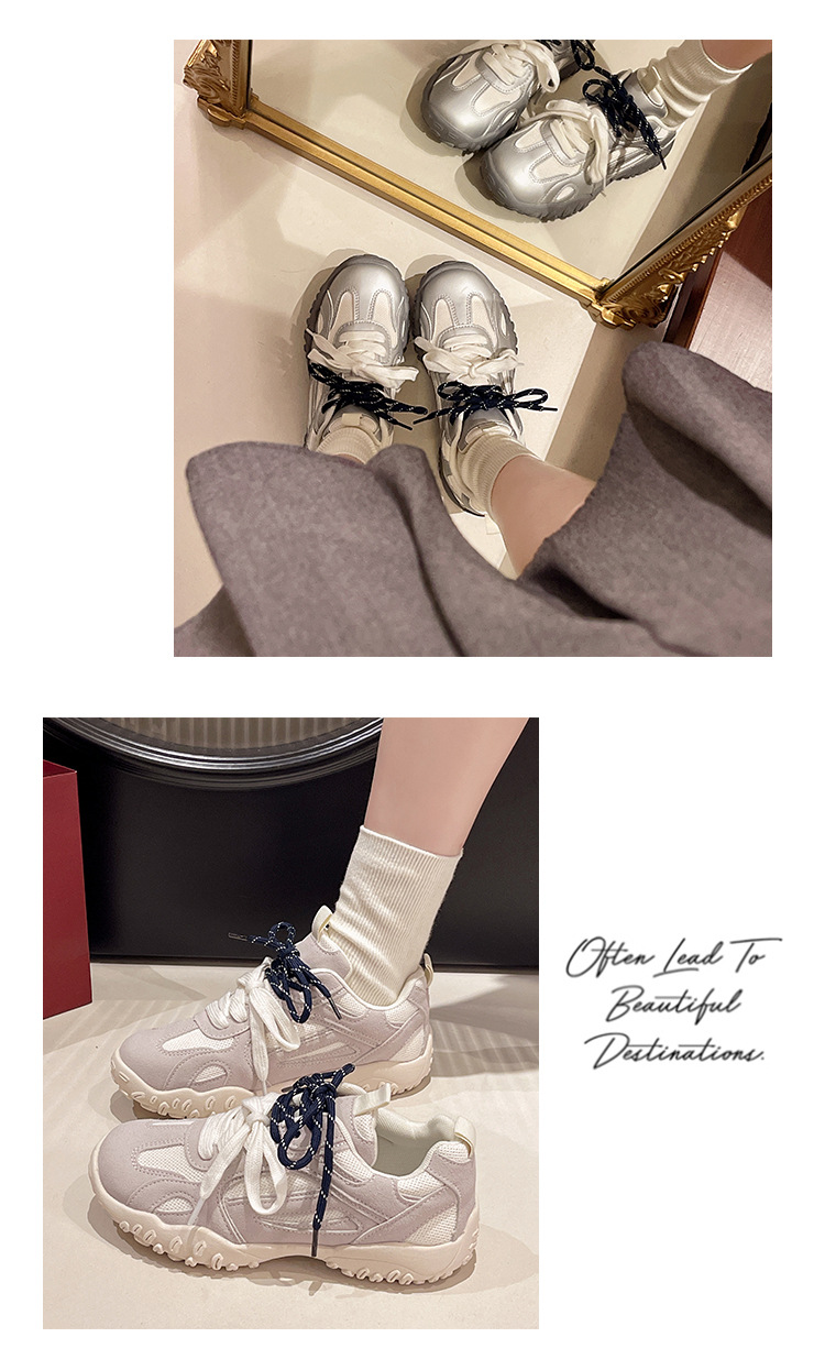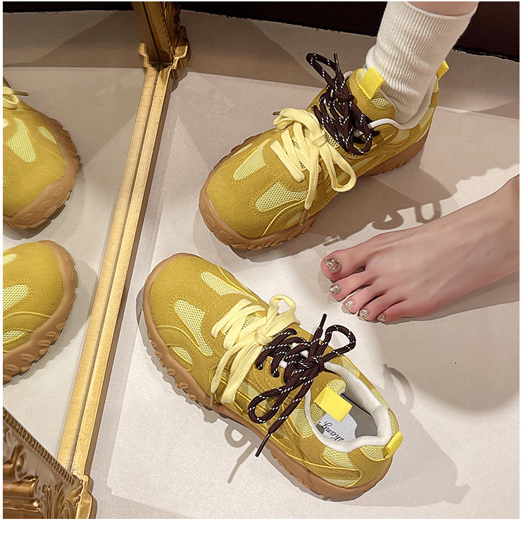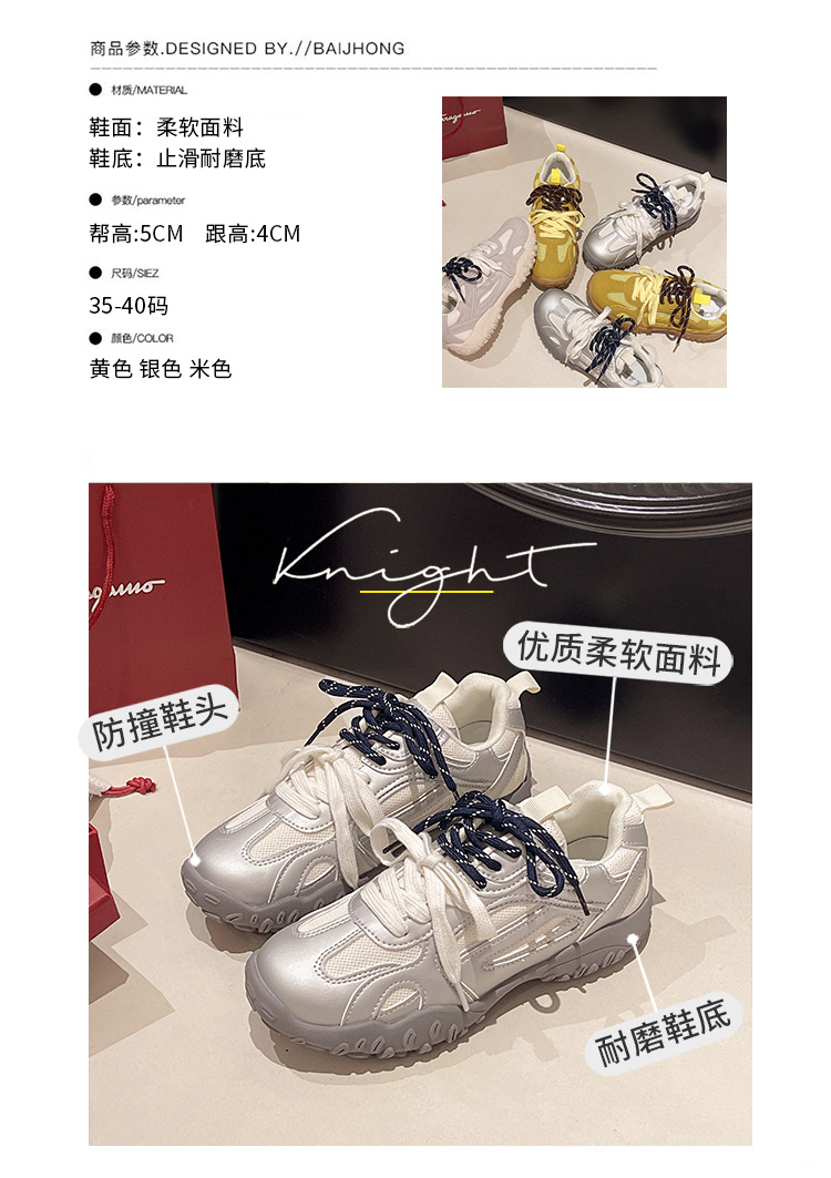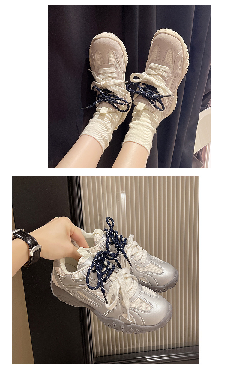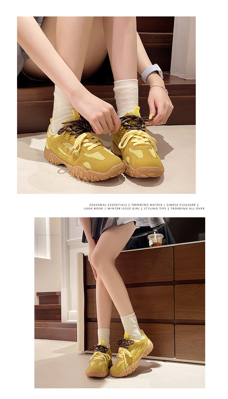 爆款超火德训鞋女2024秋季新款薄款透气运动鞋厚底系带圆头小白鞋
