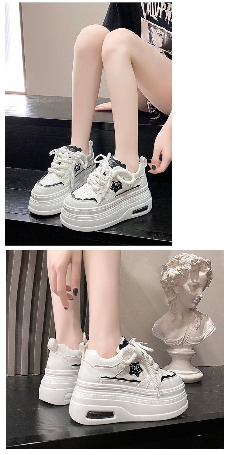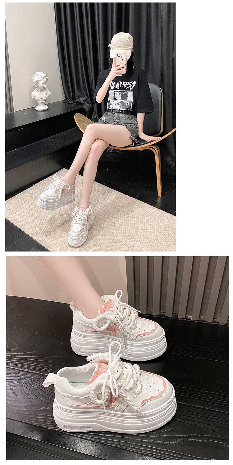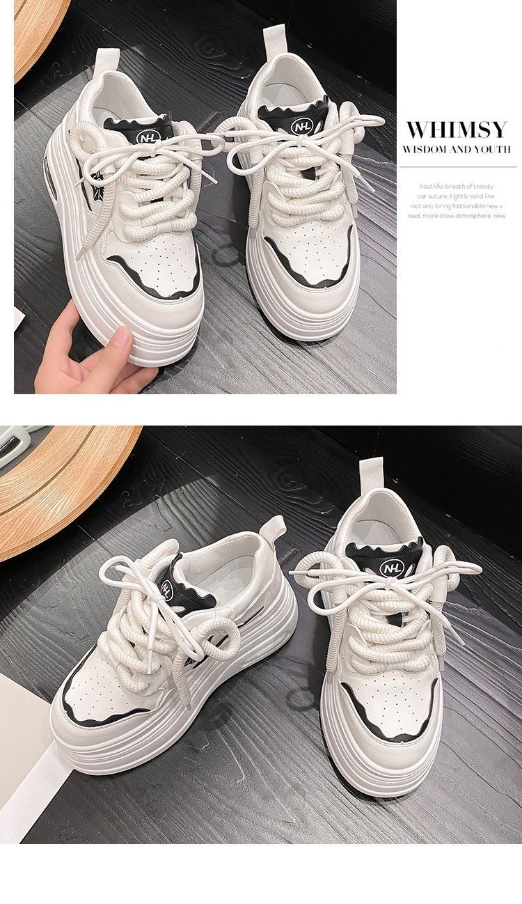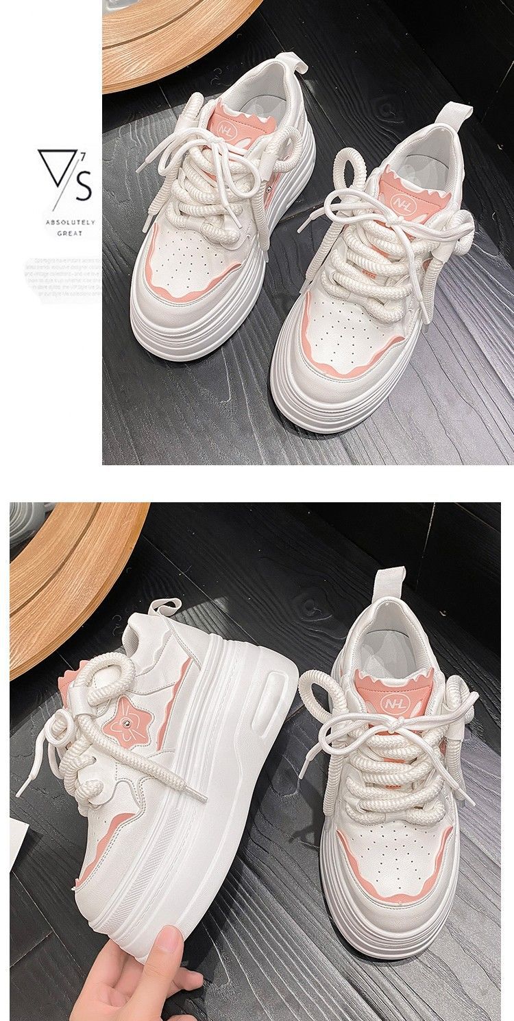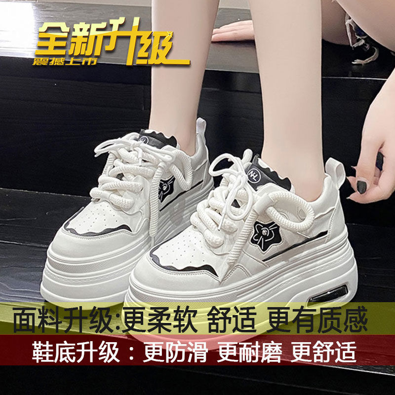 软皮小白鞋女2024新款春季韩版百搭内增高休闲鞋厚底松糕透气女鞋