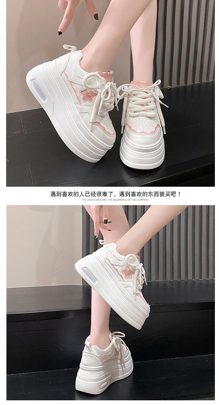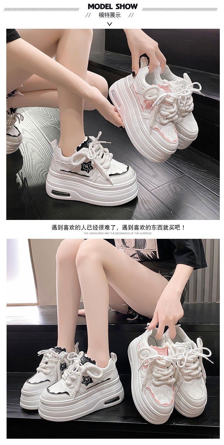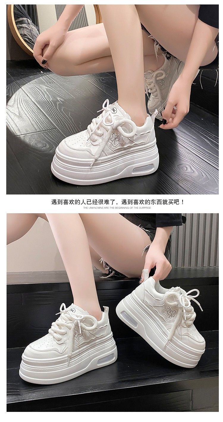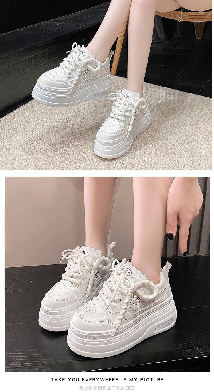 软皮小白鞋女2024新款春季韩版百搭内增高休闲鞋厚底松糕透气女鞋