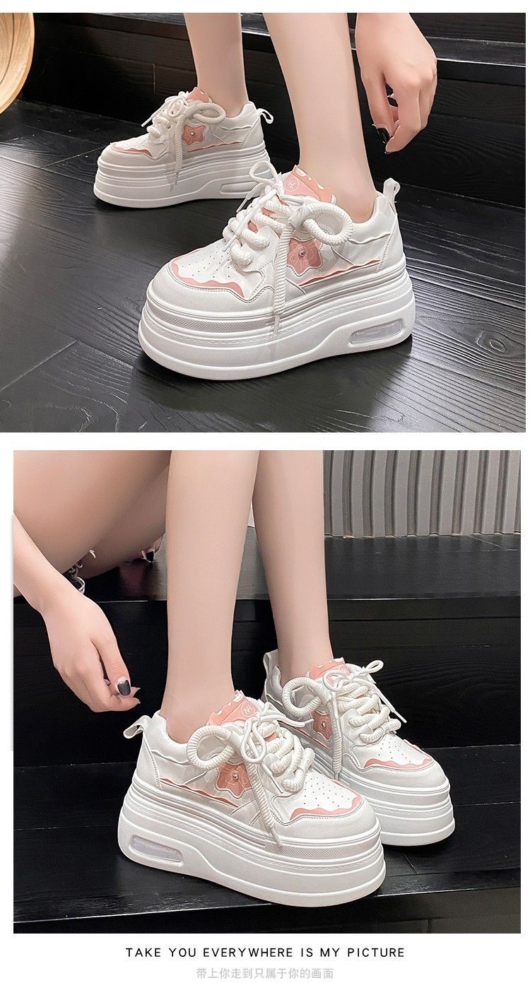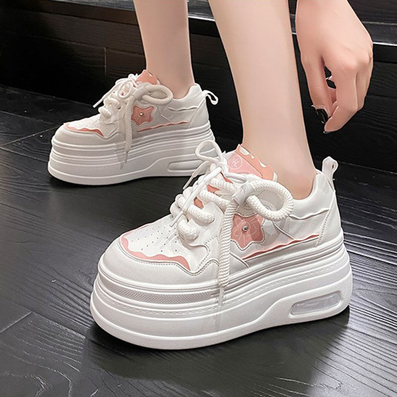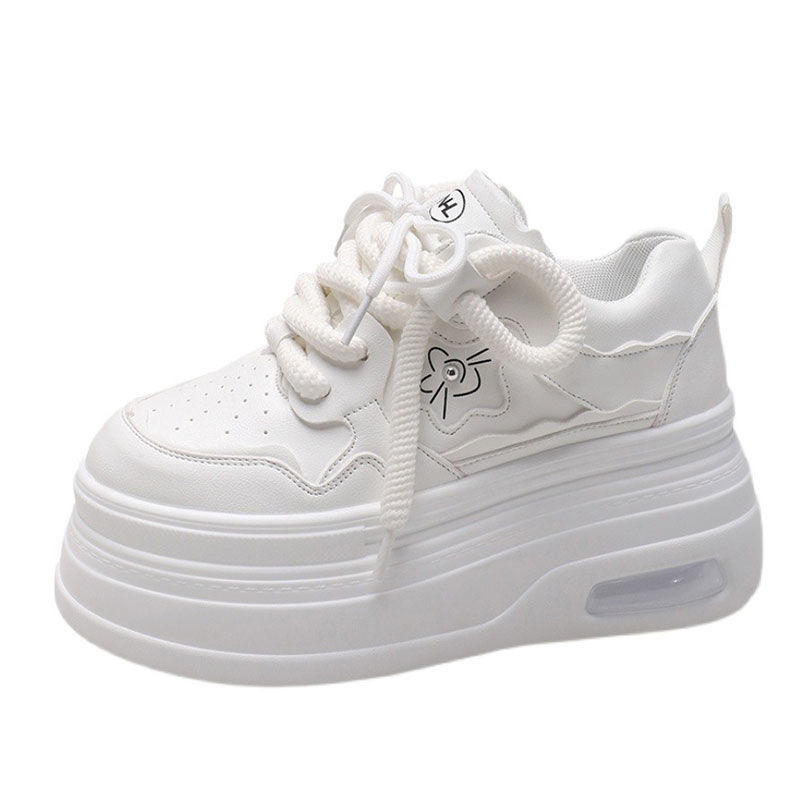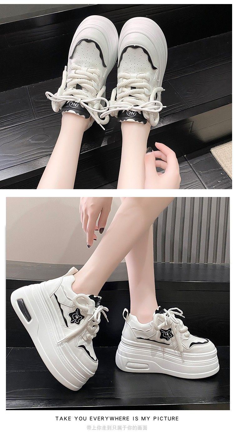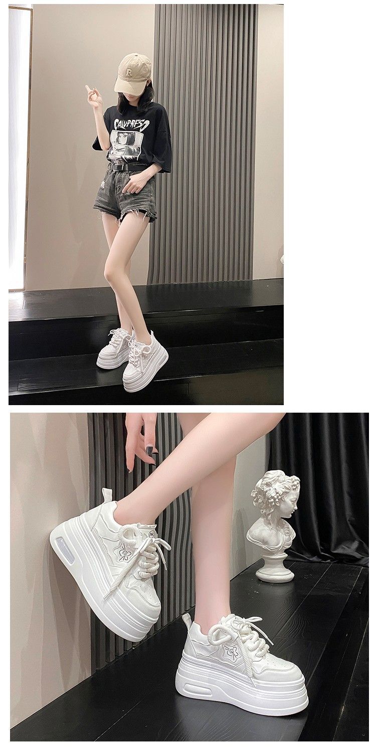 软皮小白鞋女2024新款春季韩版百搭内增高休闲鞋厚底松糕透气女鞋