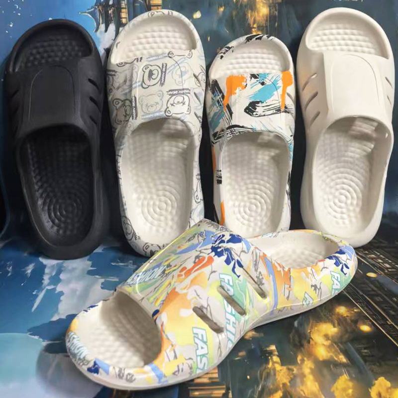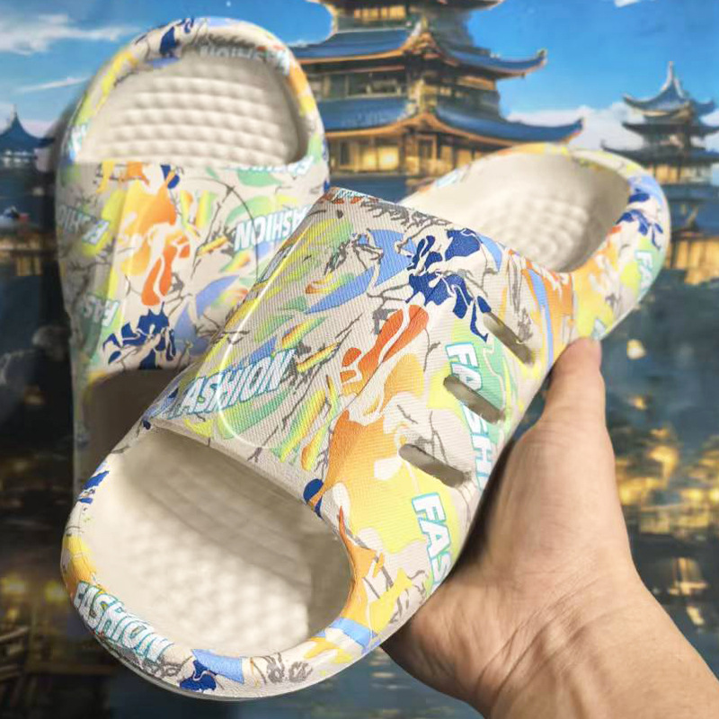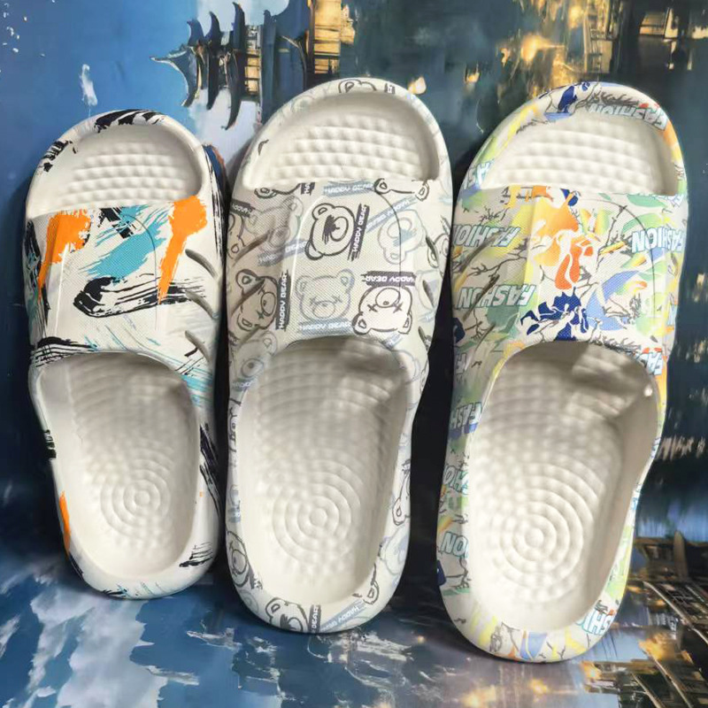 踏屎感涂鸦拖鞋凉鞋男女情侣一字拖户内外沙滩鞋子Slippers Shoes