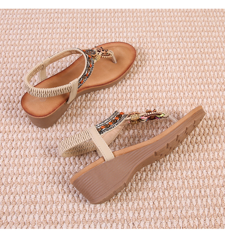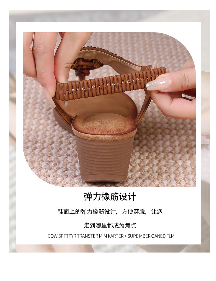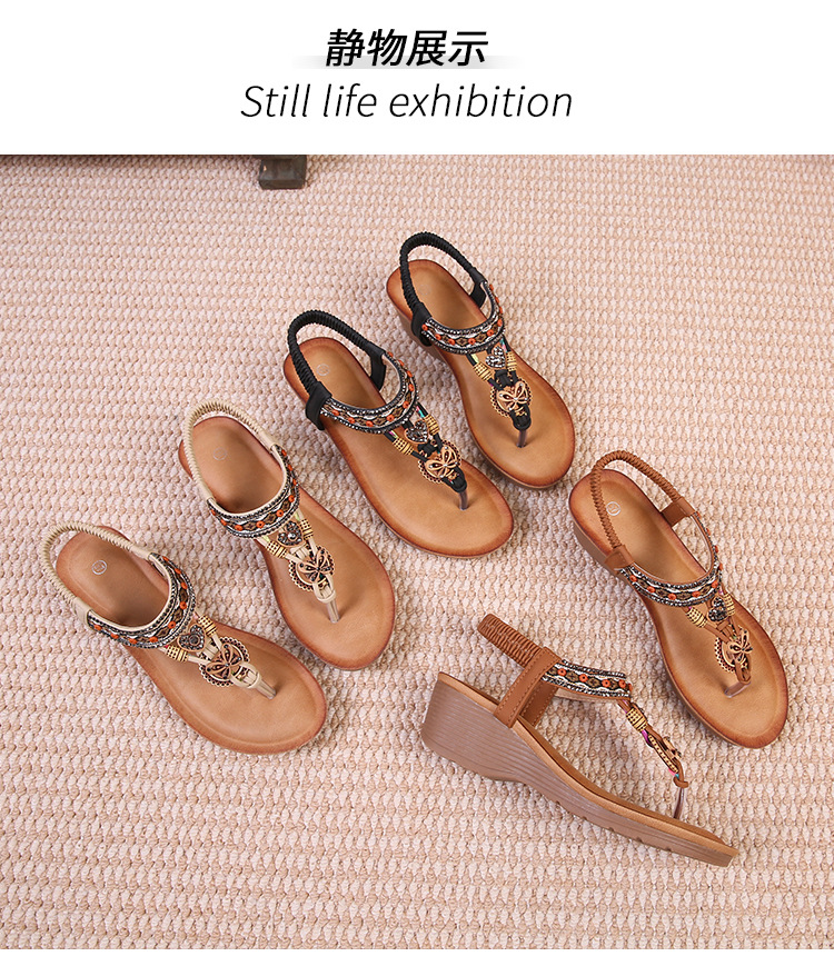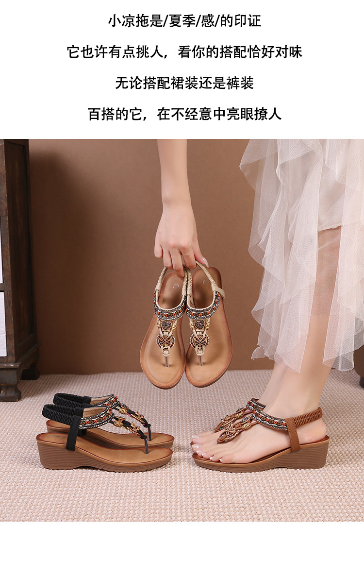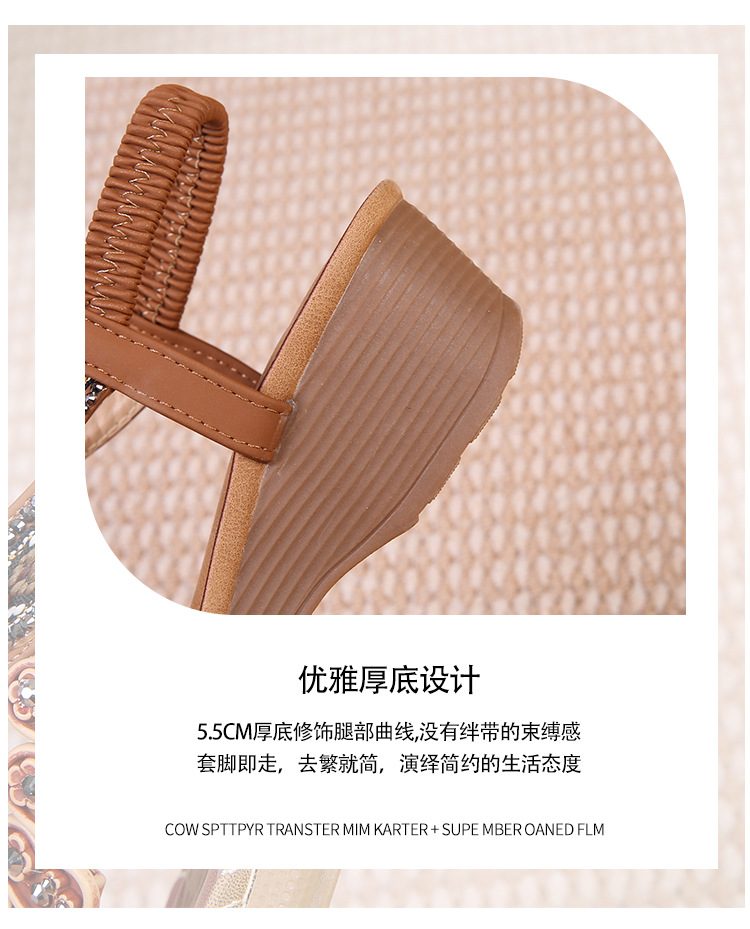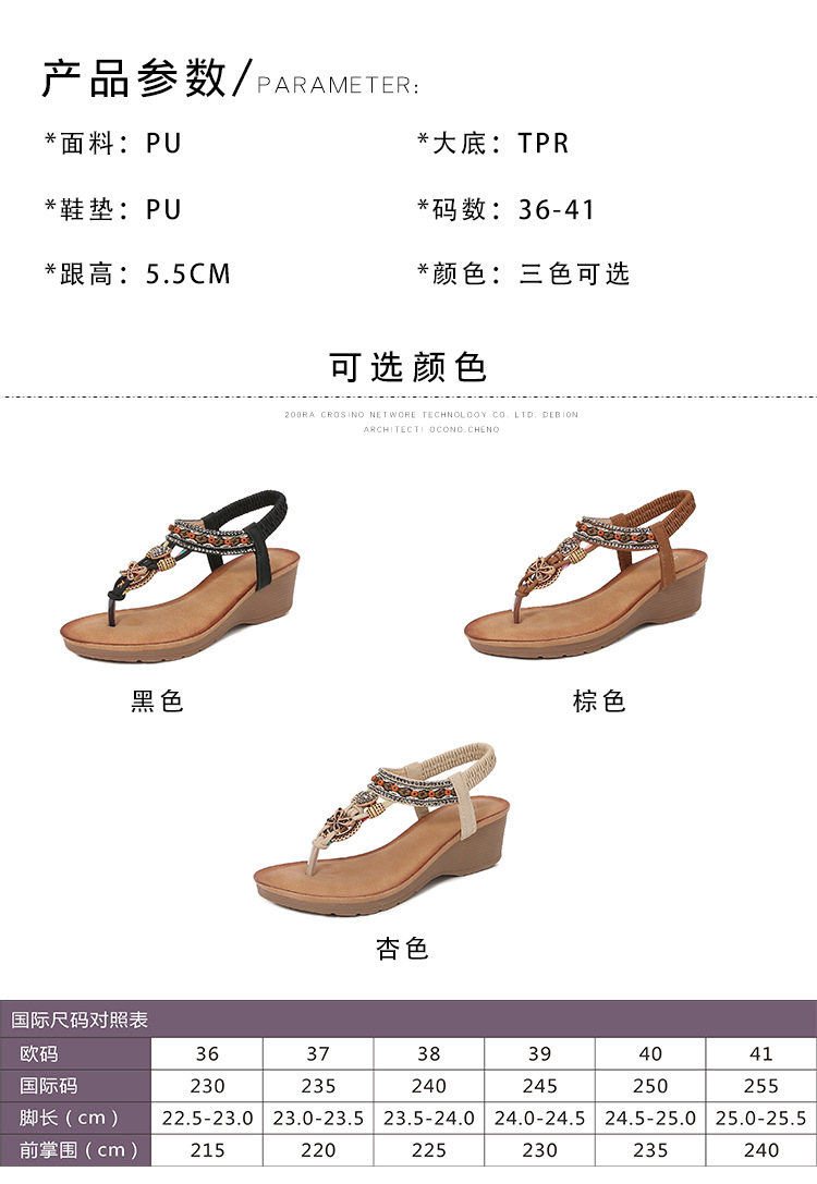 旅行坡跟罗马凉鞋女新款欧美民族风露趾度假旅游女鞋589