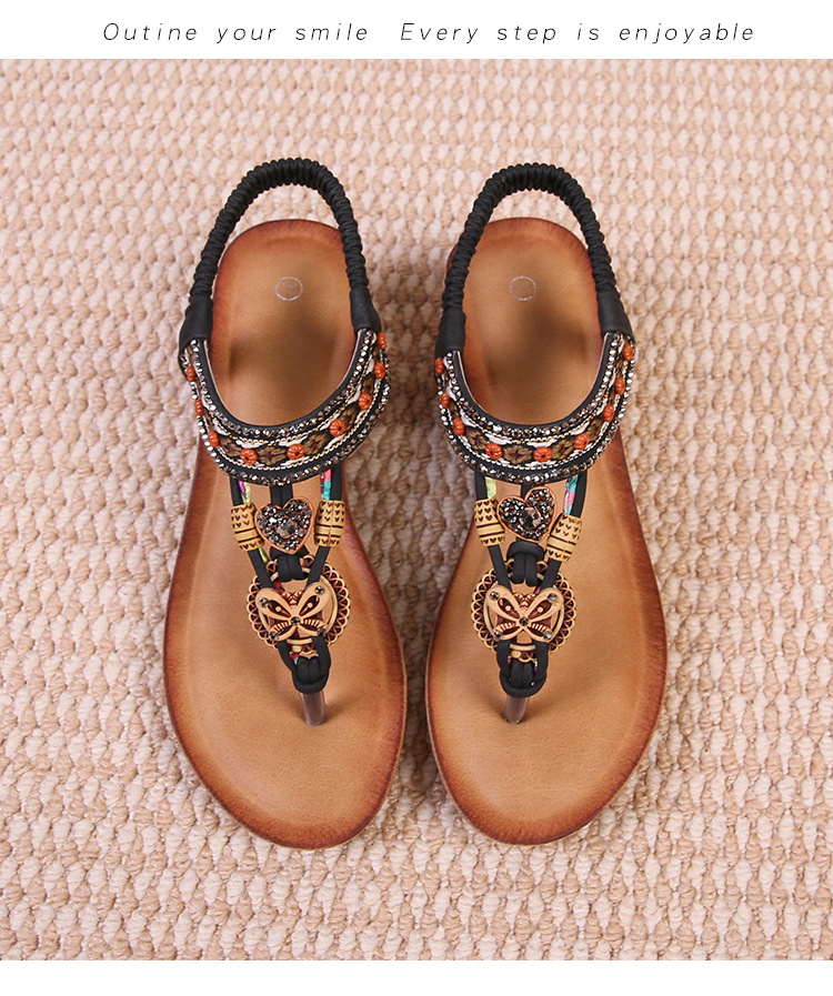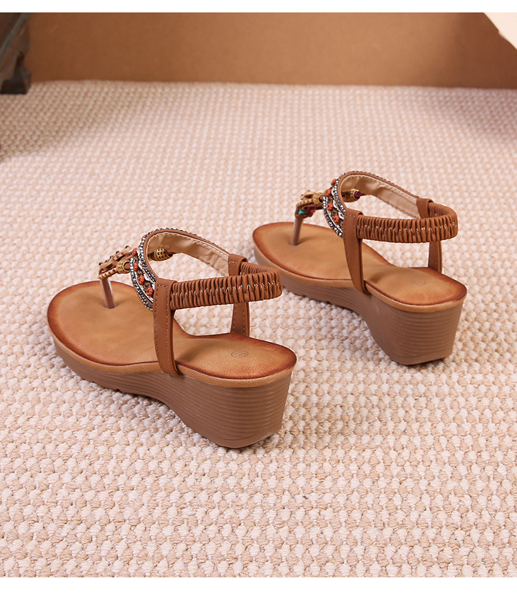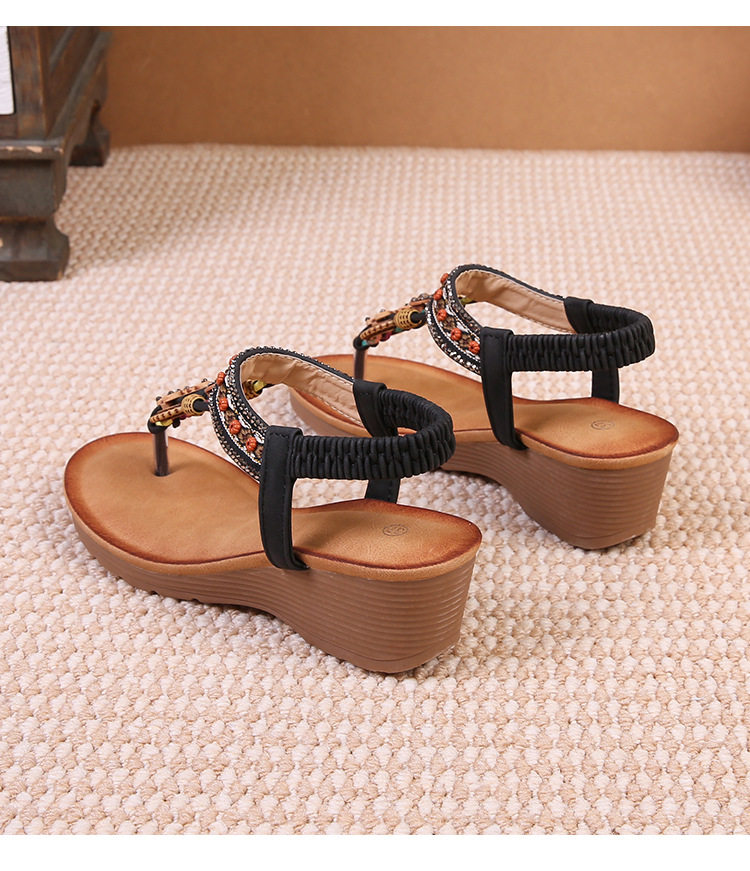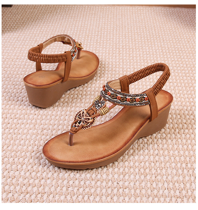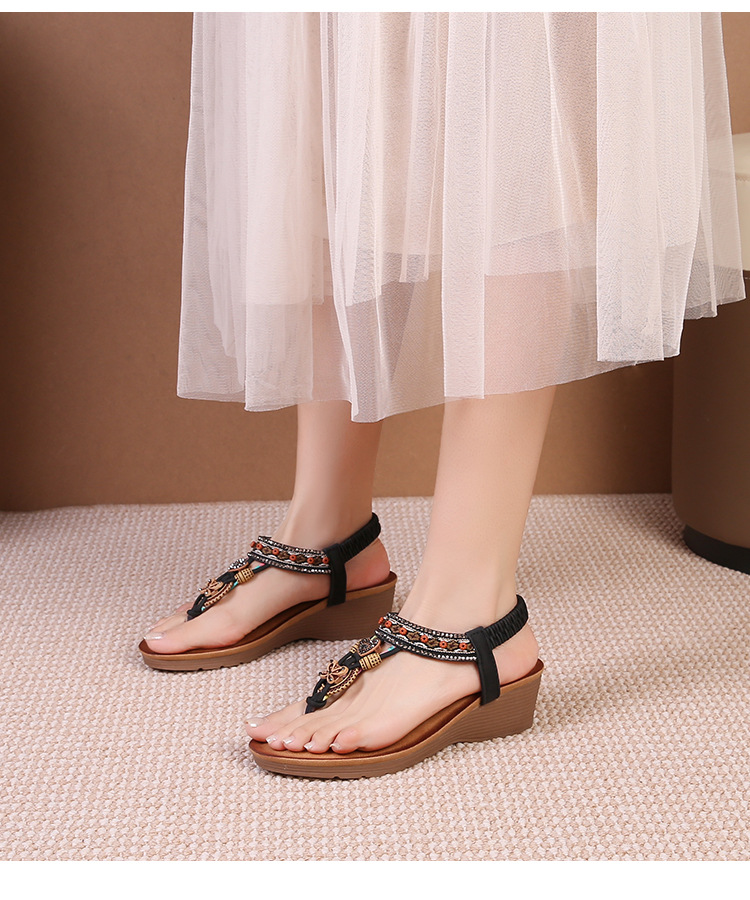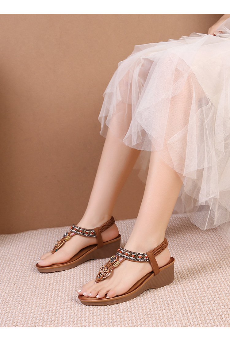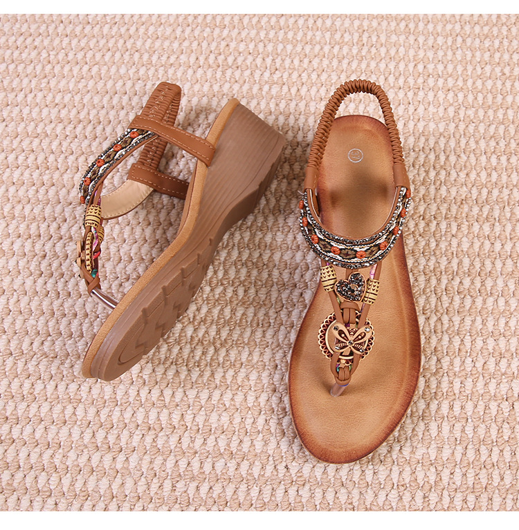 旅行坡跟罗马凉鞋女新款欧美民族风露趾度假旅游女鞋589