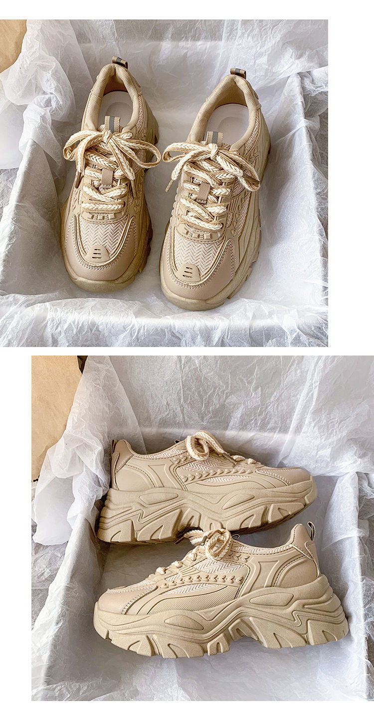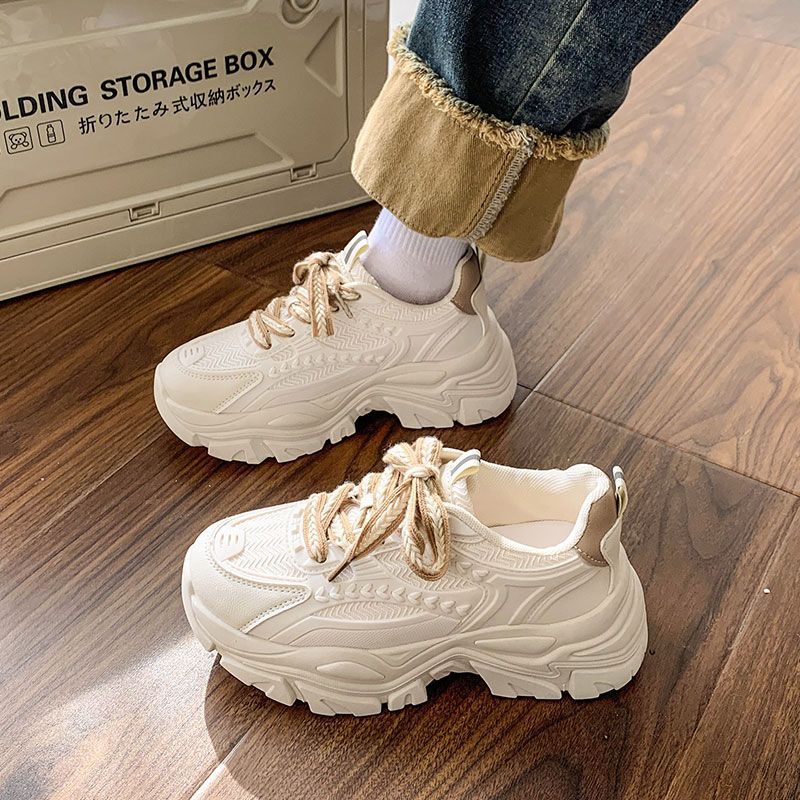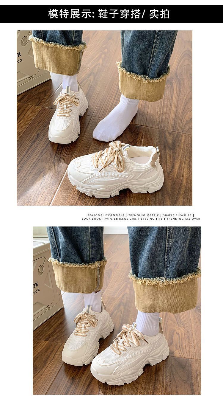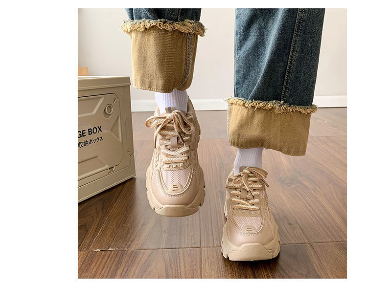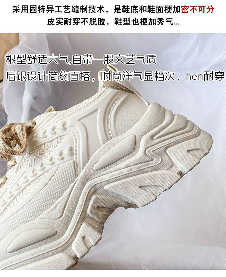 麦穗老爹鞋女ins潮春季爆款透气百搭厚底增高小白运动鞋一件代发