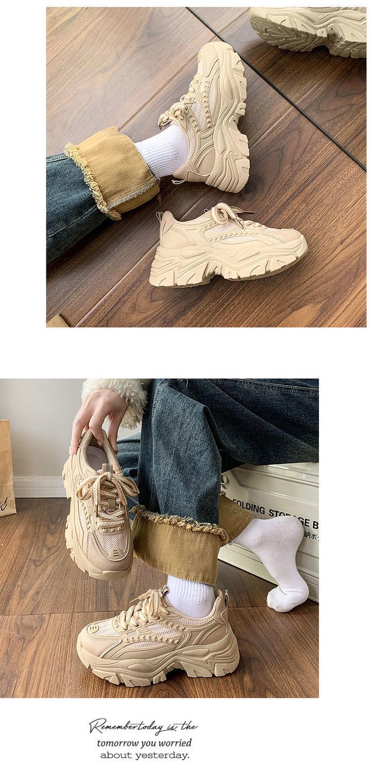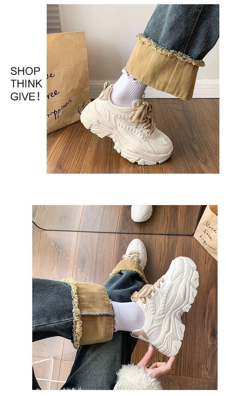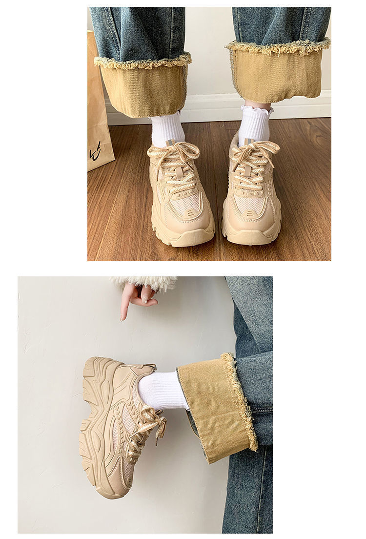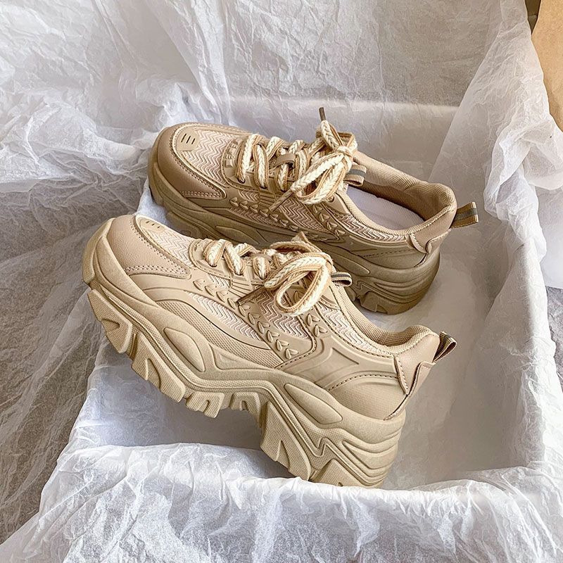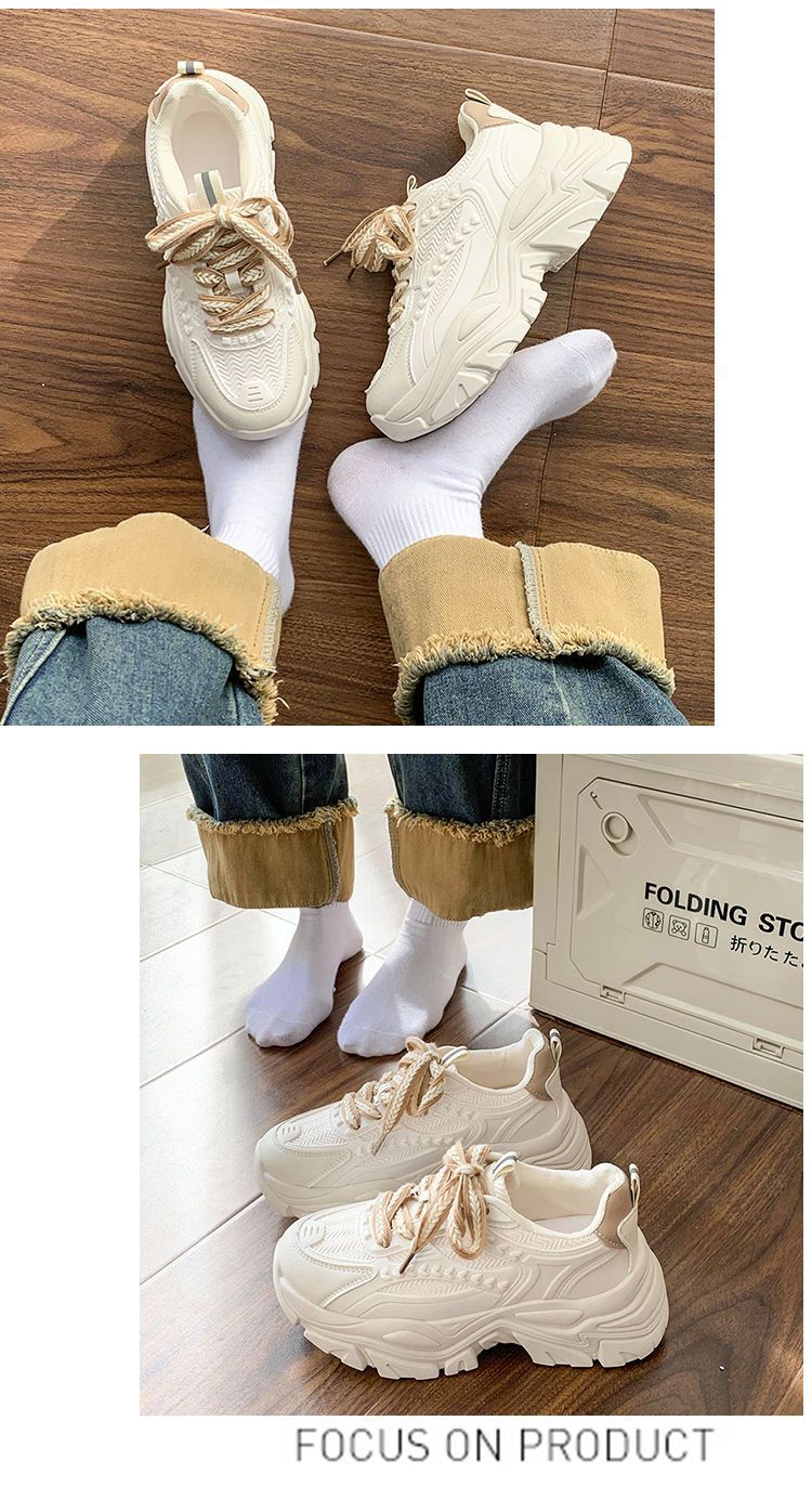 麦穗老爹鞋女ins潮春季爆款透气百搭厚底增高小白运动鞋一件代发