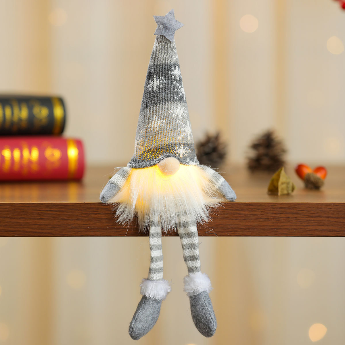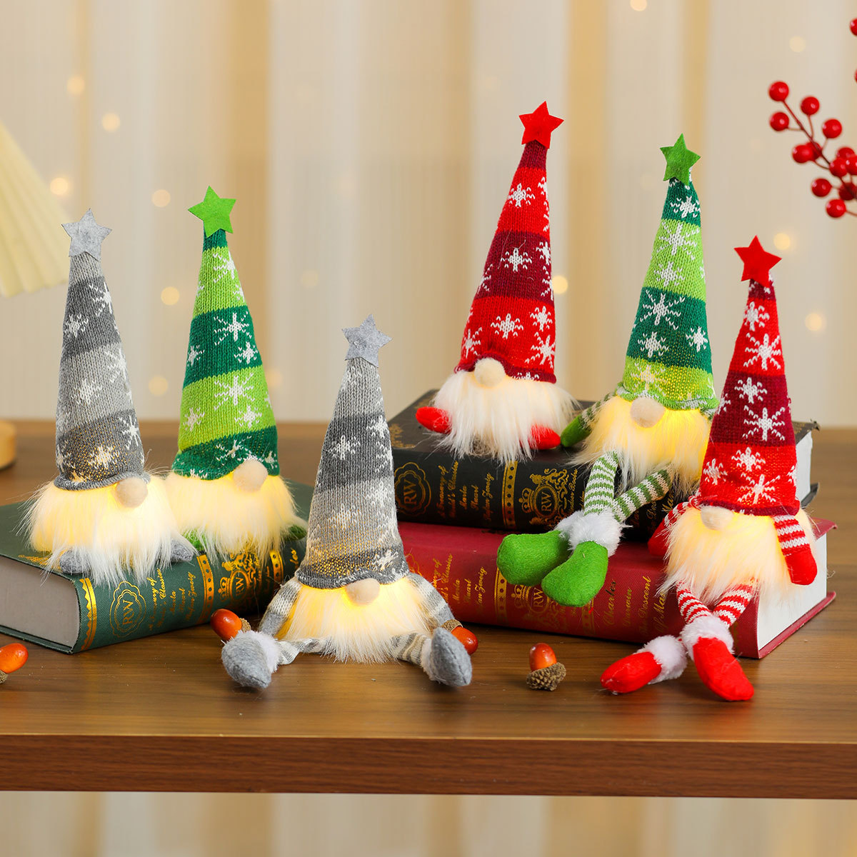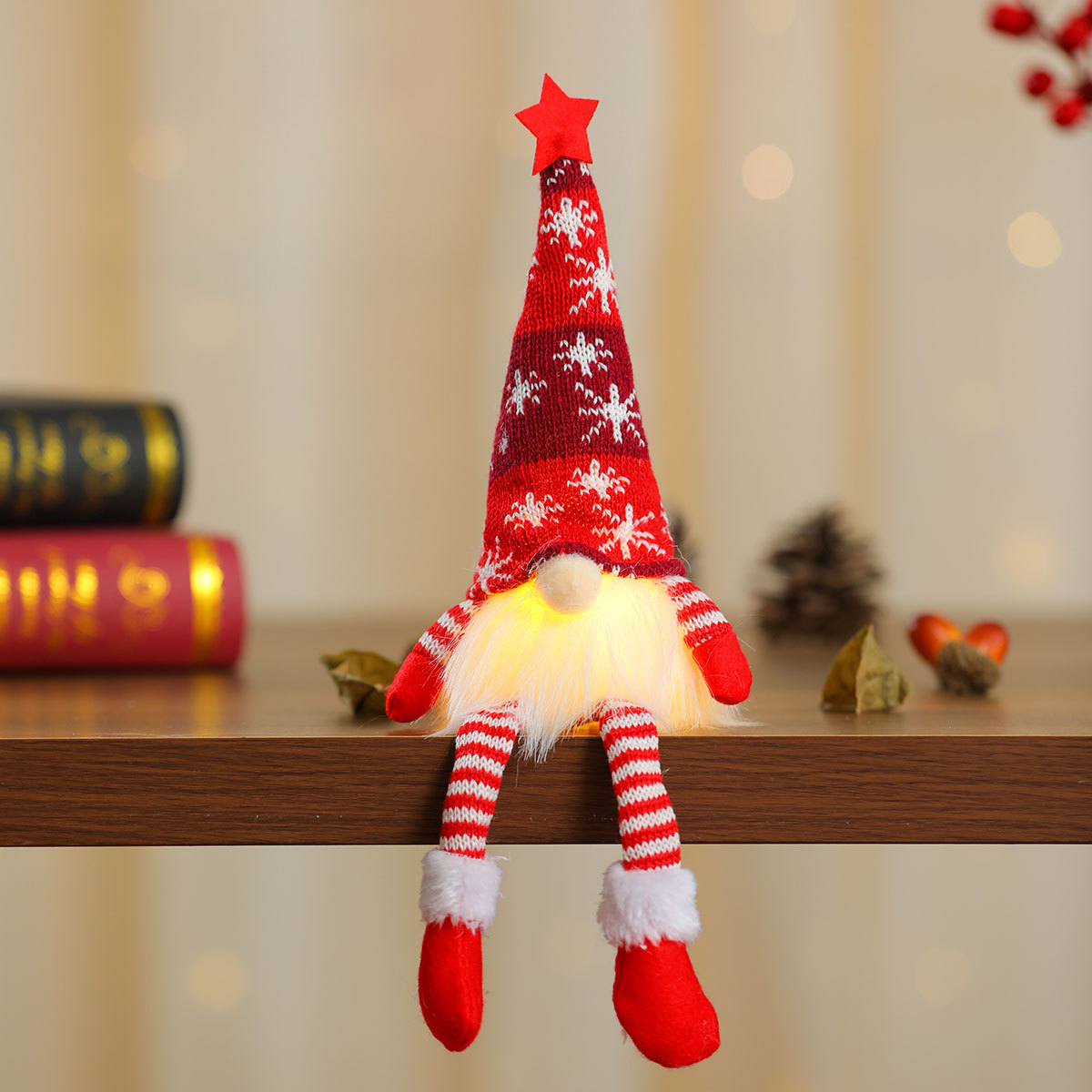 圣诞节装饰条纹雪花针织五角星帽带灯发光挂腿公仔玩偶摆件礼物