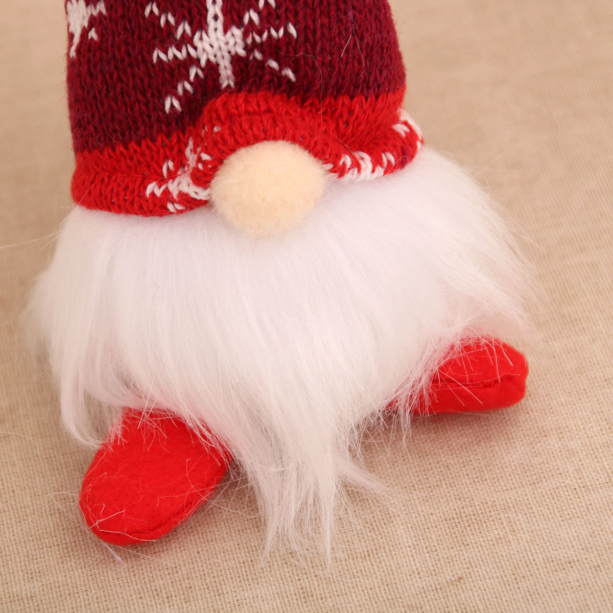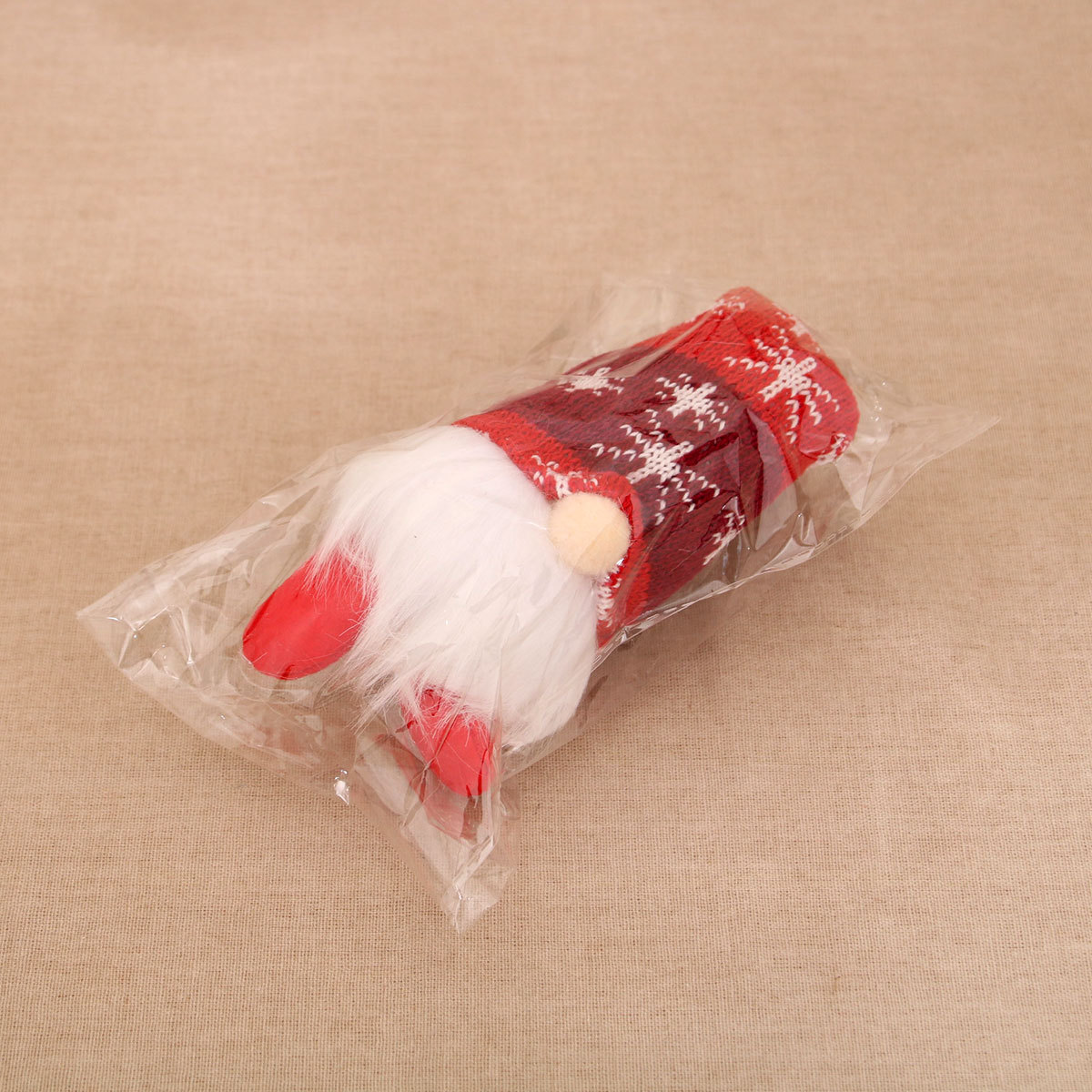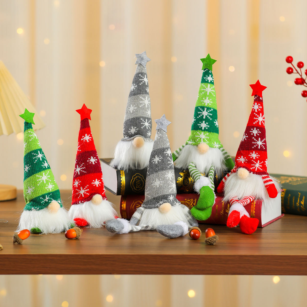 圣诞节装饰条纹雪花针织五角星帽带灯发光挂腿公仔玩偶摆件礼物