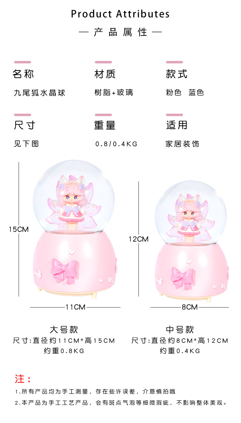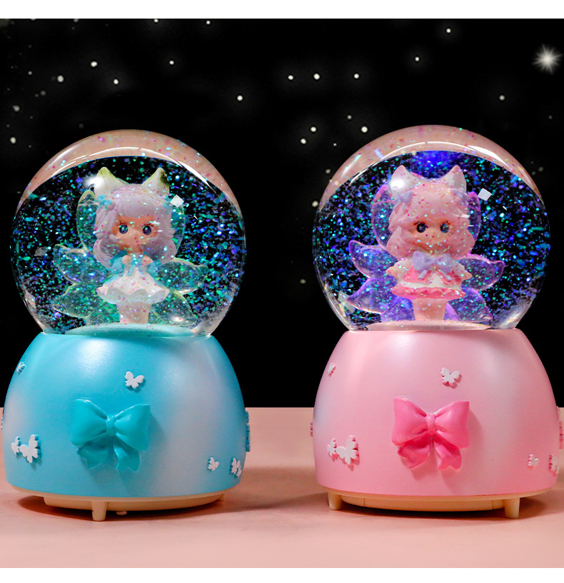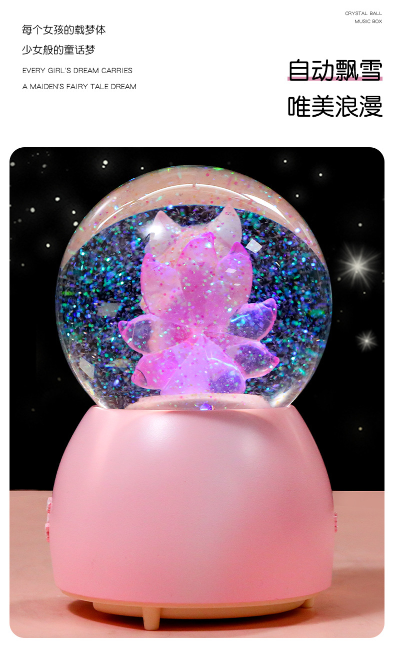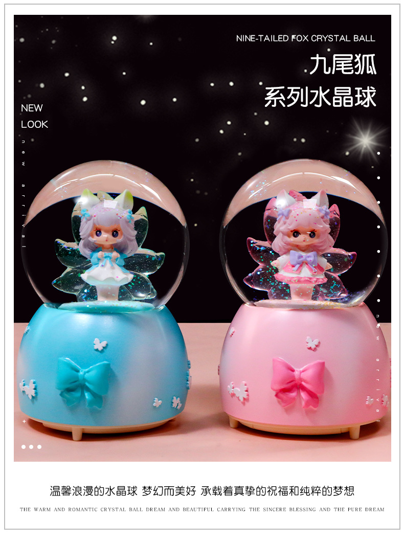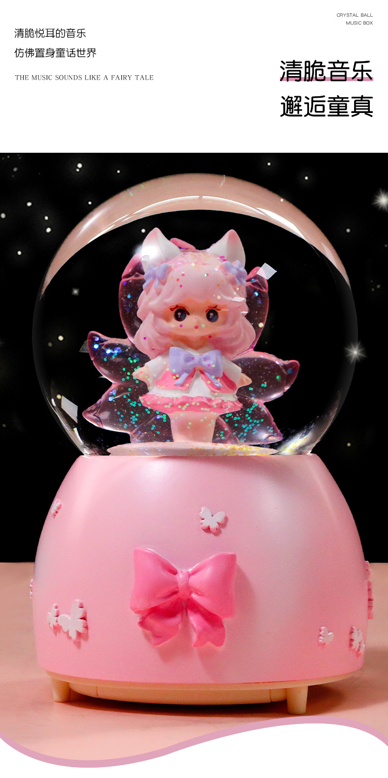 少女心九尾狐水晶球音乐盒飘雪八音灯光树脂工艺品学生儿童礼物