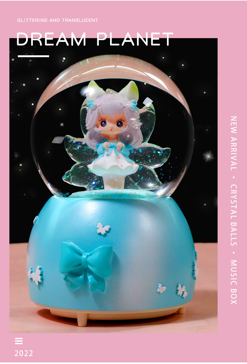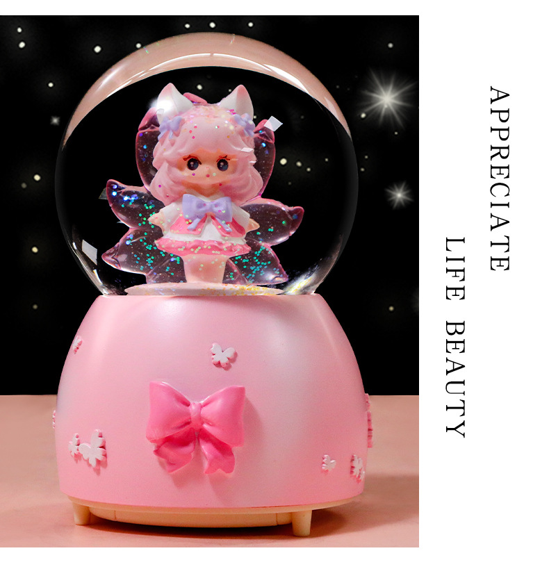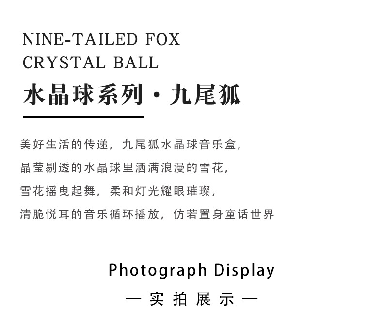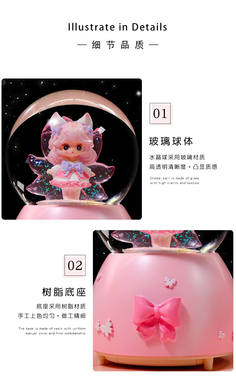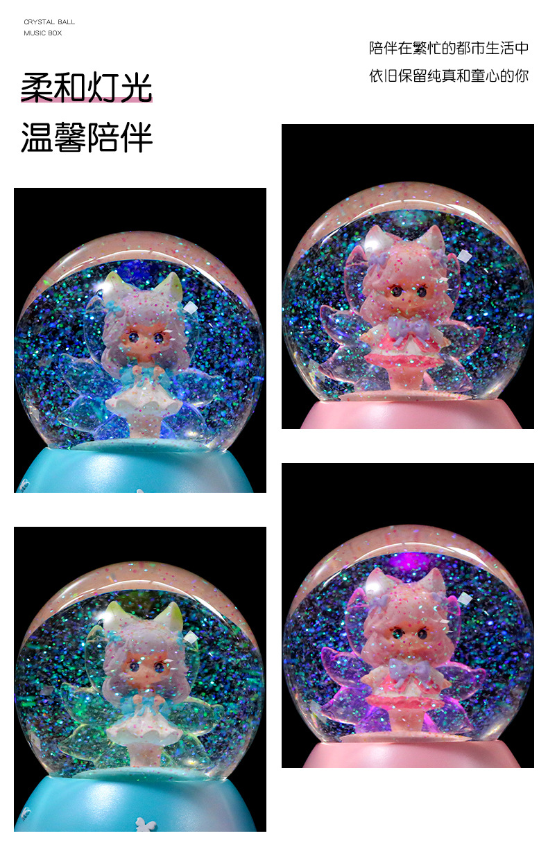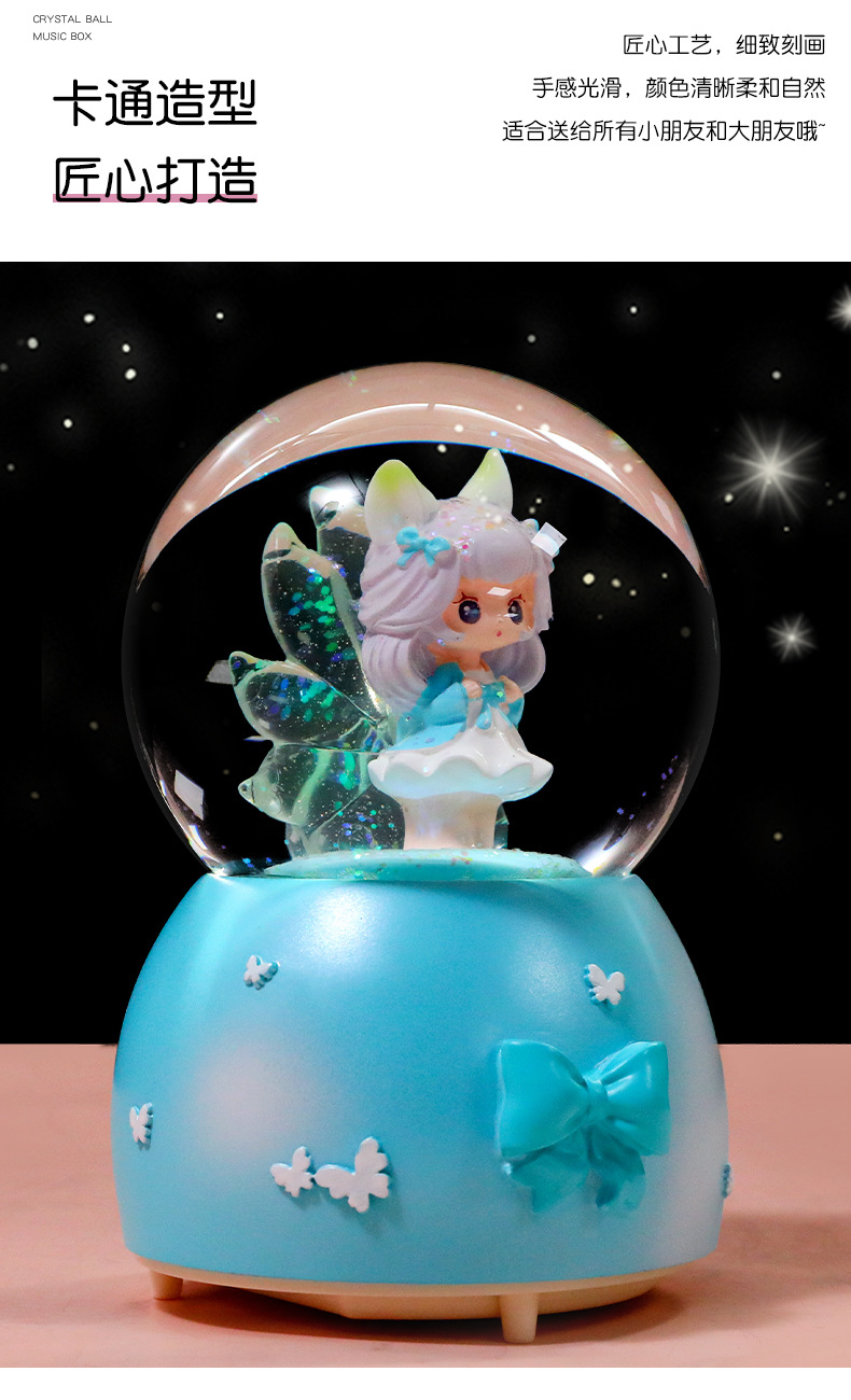 少女心九尾狐水晶球音乐盒飘雪八音灯光树脂工艺品学生儿童礼物