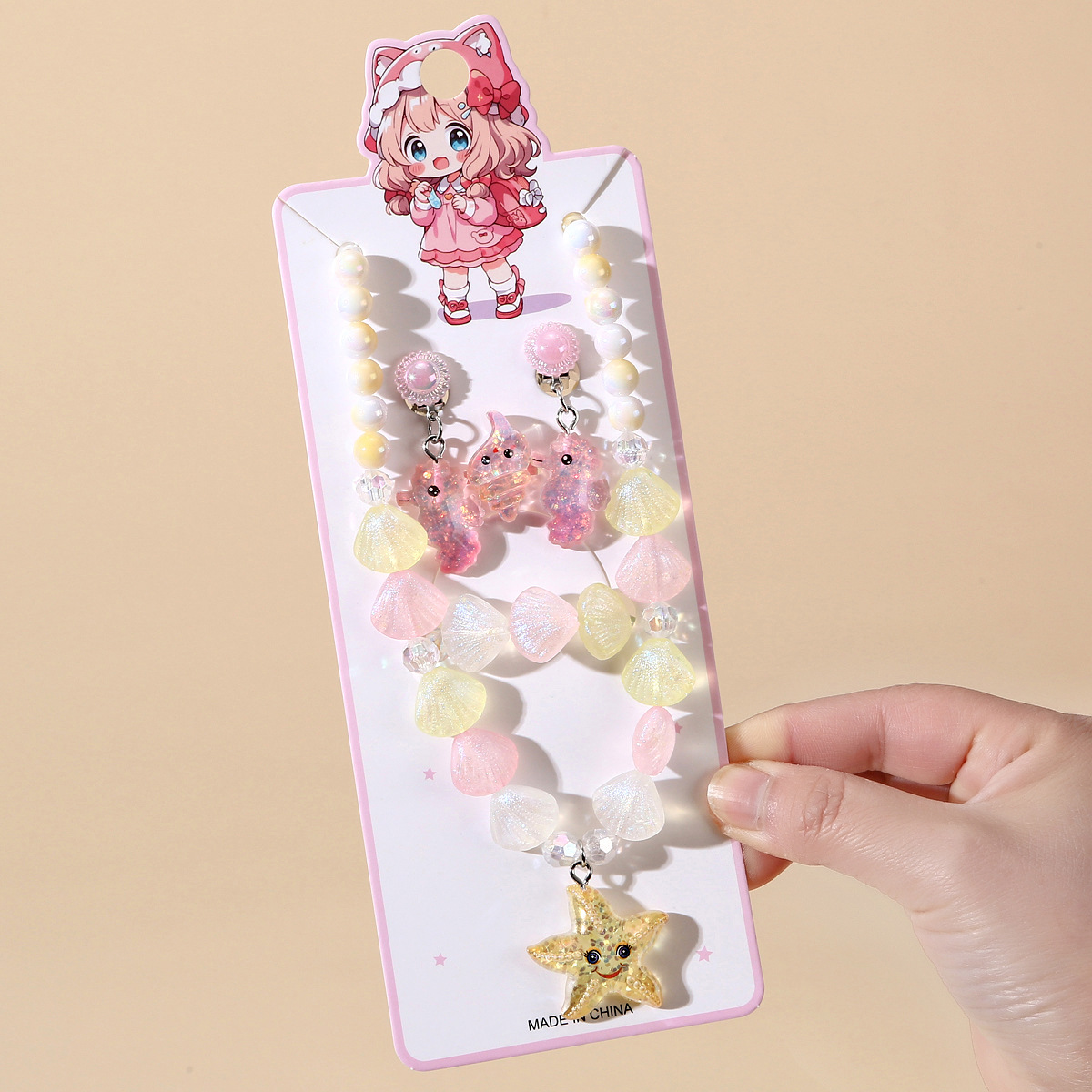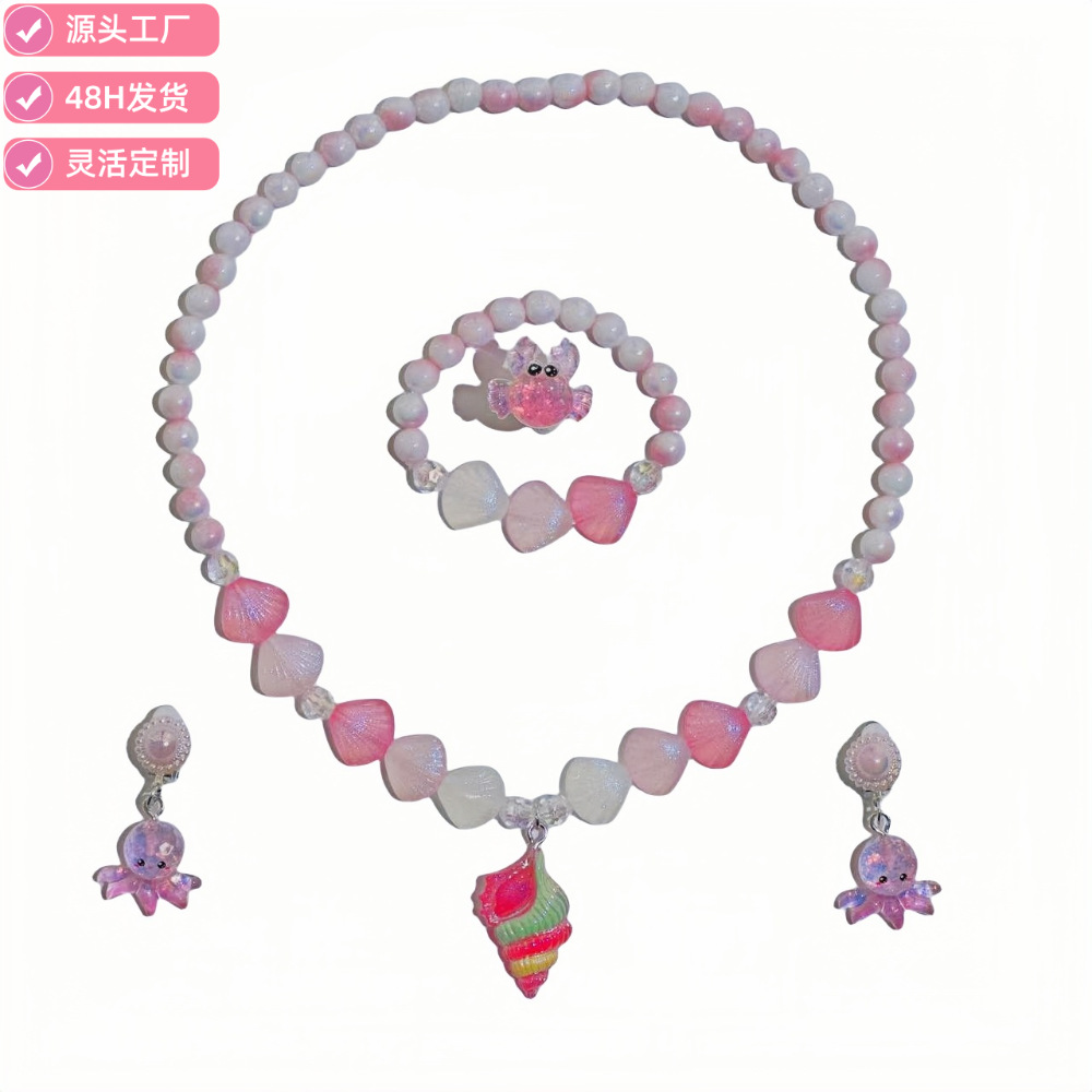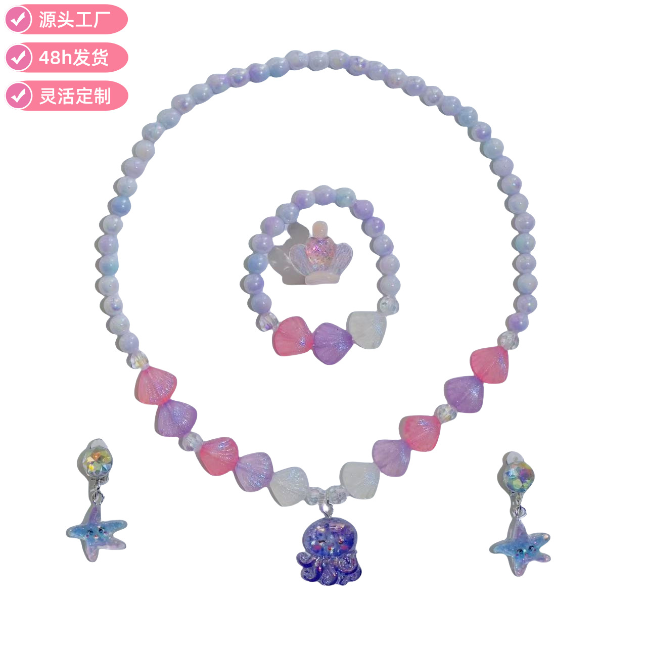跨境热销儿童夜光海洋风项链耳夹戒指套装女童公主系列卡通配饰