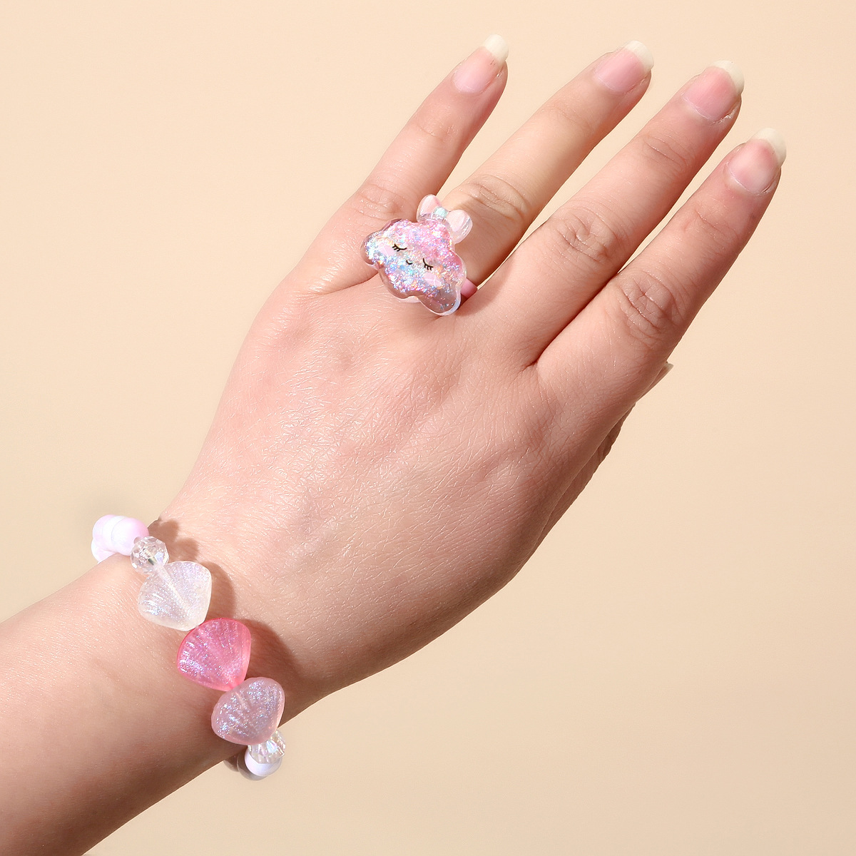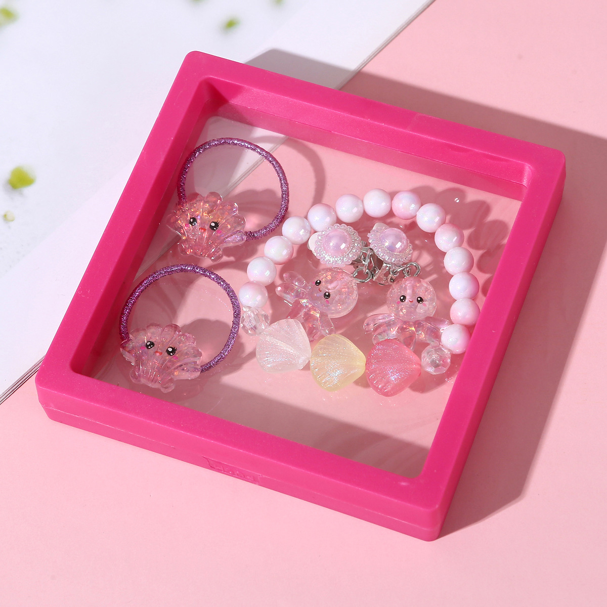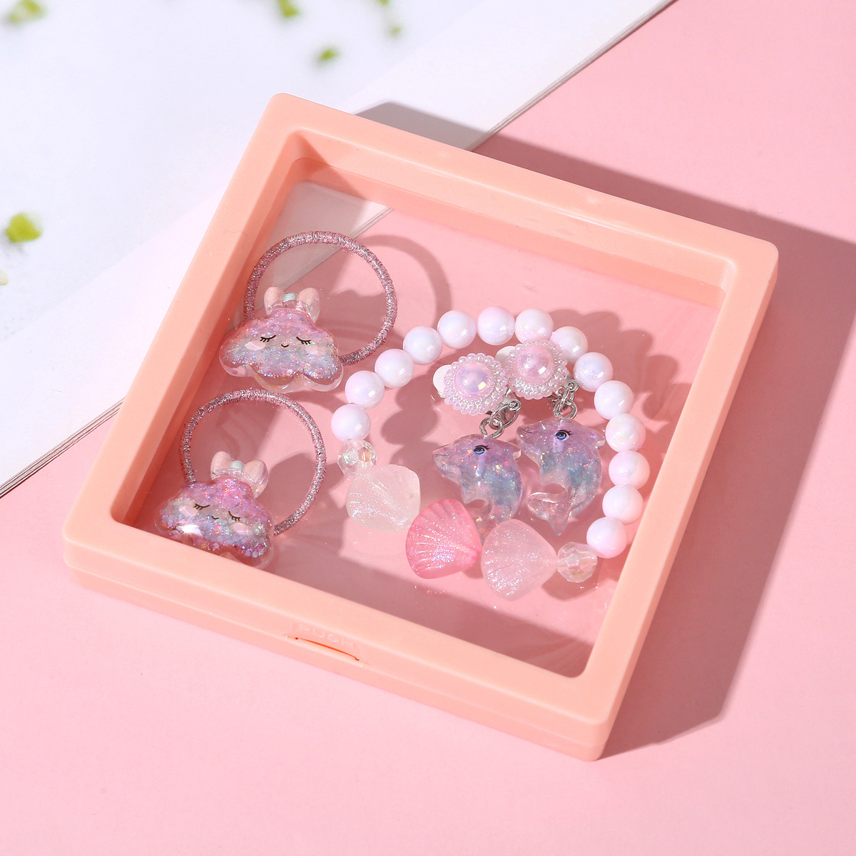 跨境热销儿童夜光海洋风项链耳夹戒指套装女童公主系列卡通配饰