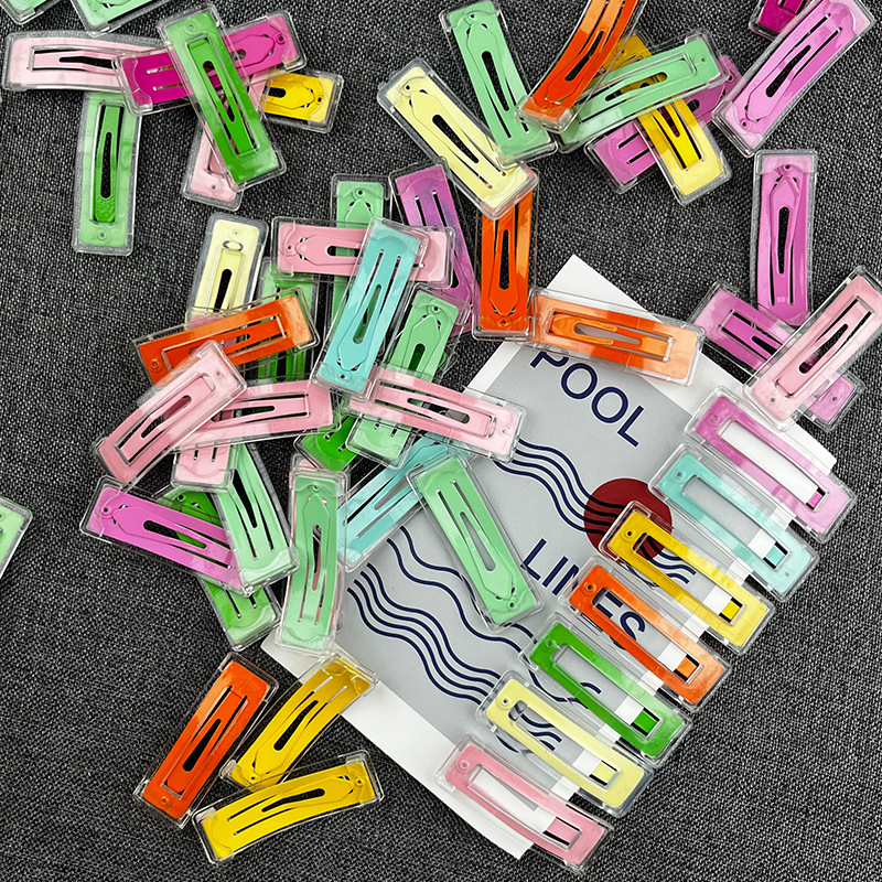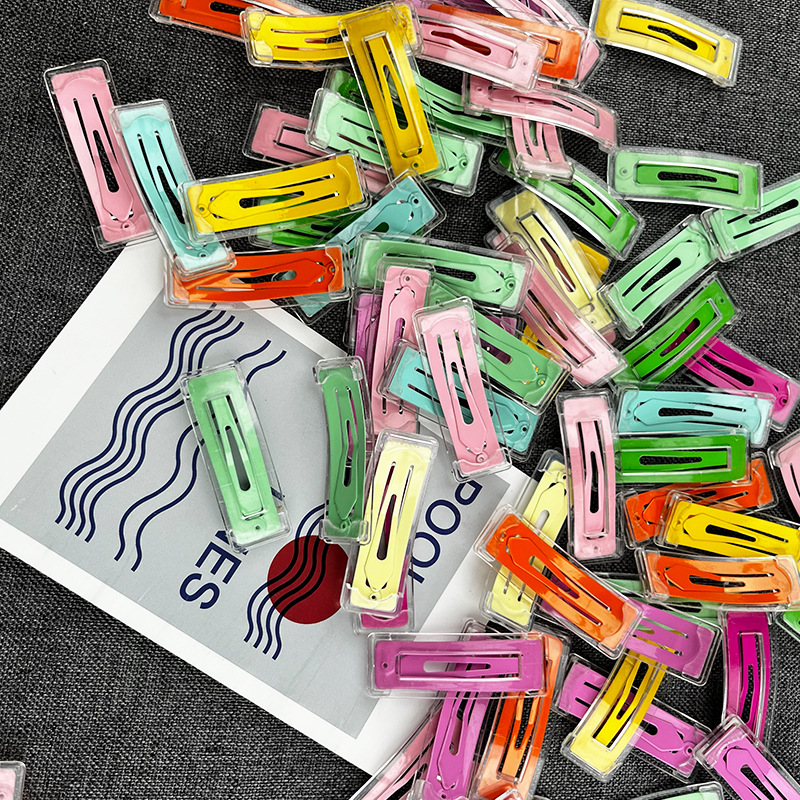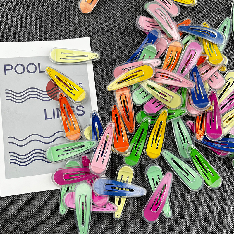 塑料壳BB夹儿童成人DIY水滴5cm糖果色透明果冻彩色塑料套发夹配饰