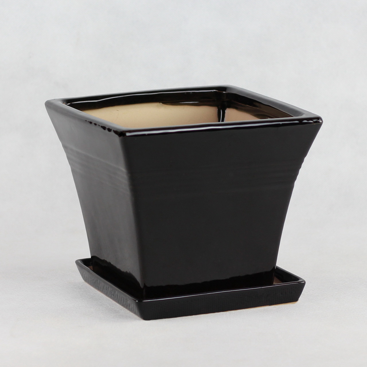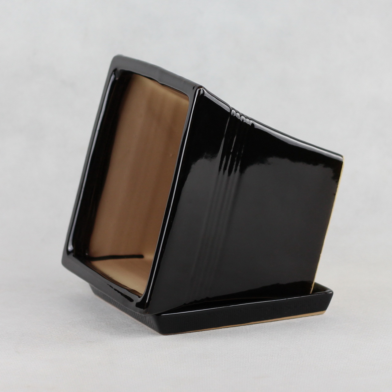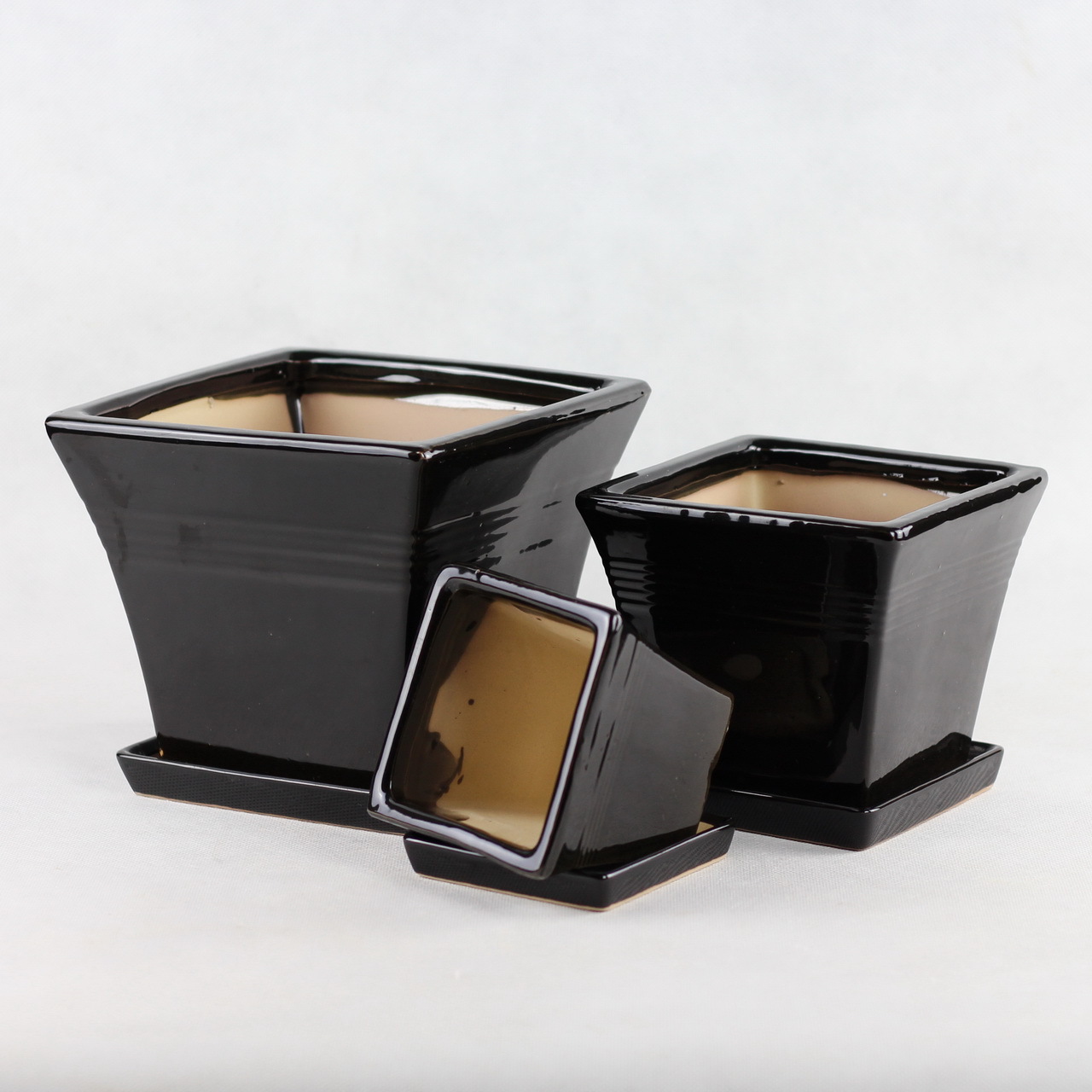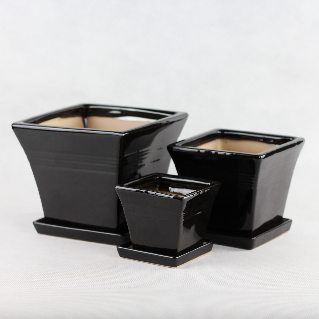 陶瓷花盆三件套家用办公室酒店商场402黑色阳台花盆 四方形花盆