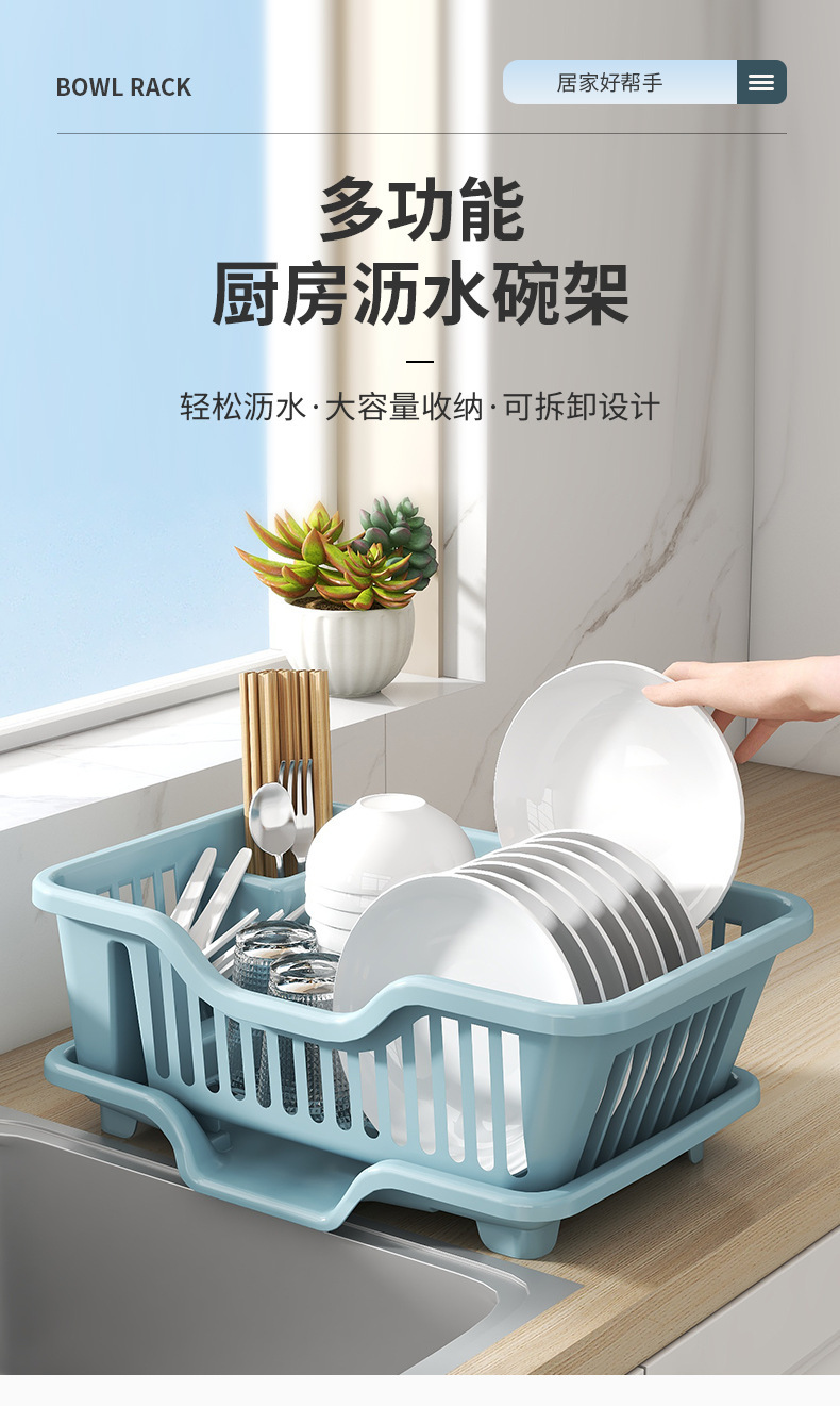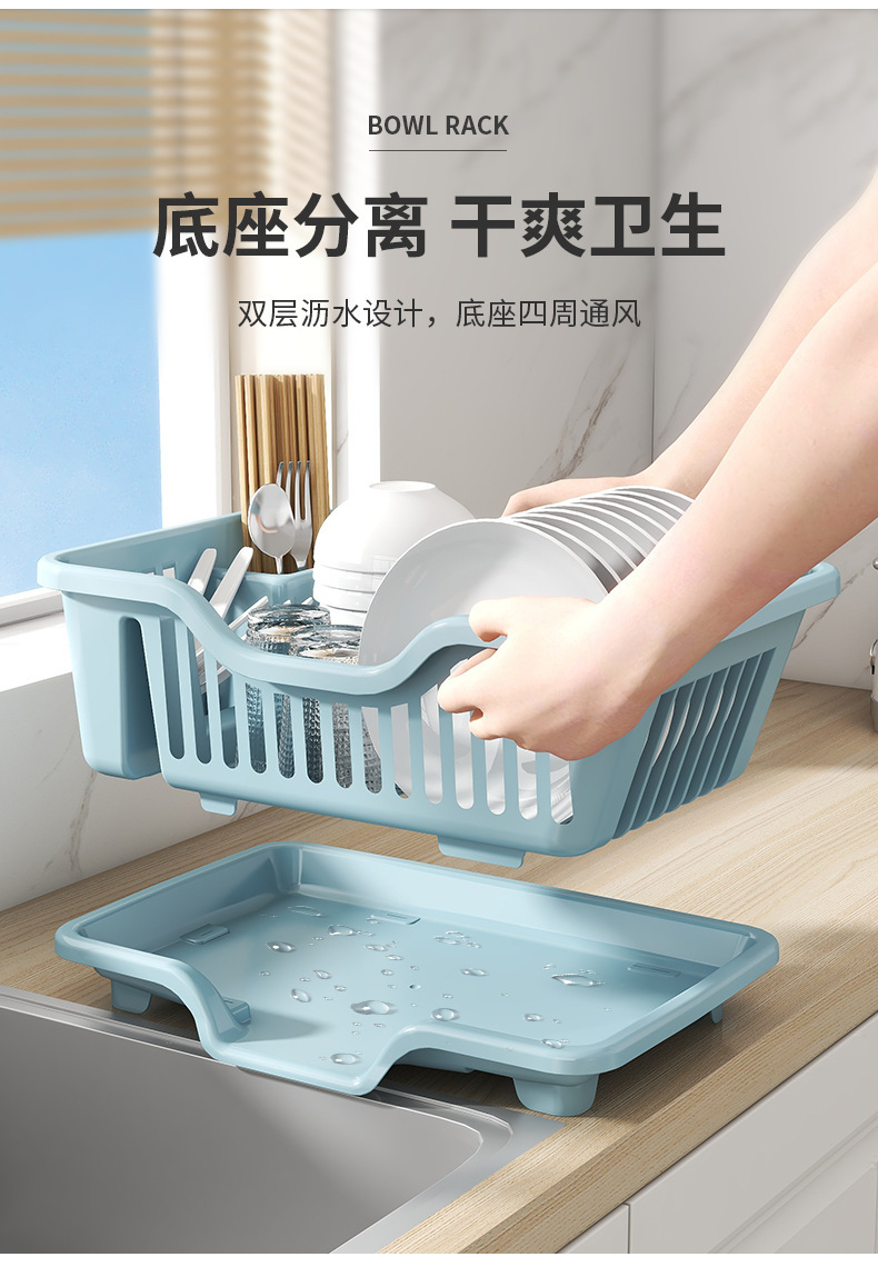 厨房水槽沥水碗架餐具滤水篮碗盘筷子置物架多功能双层洗碗收纳篮
