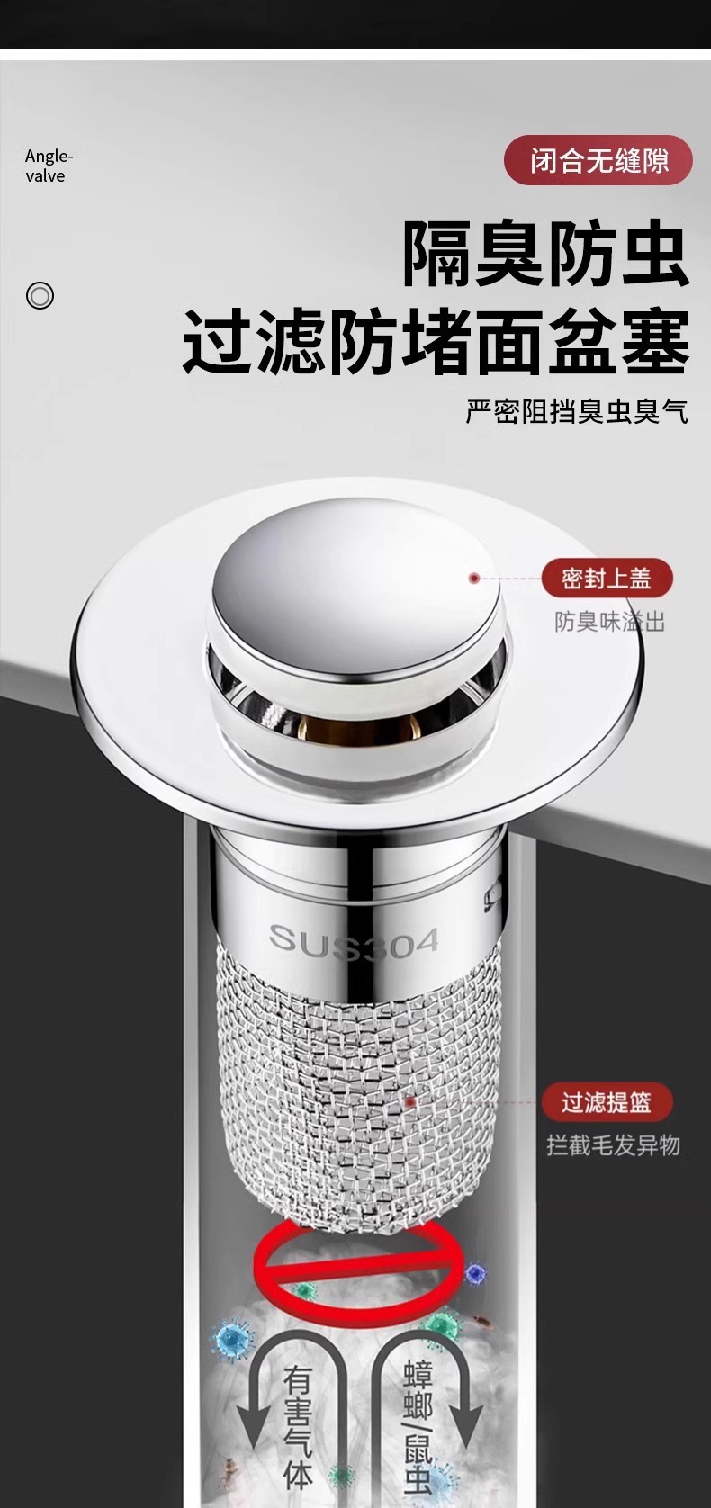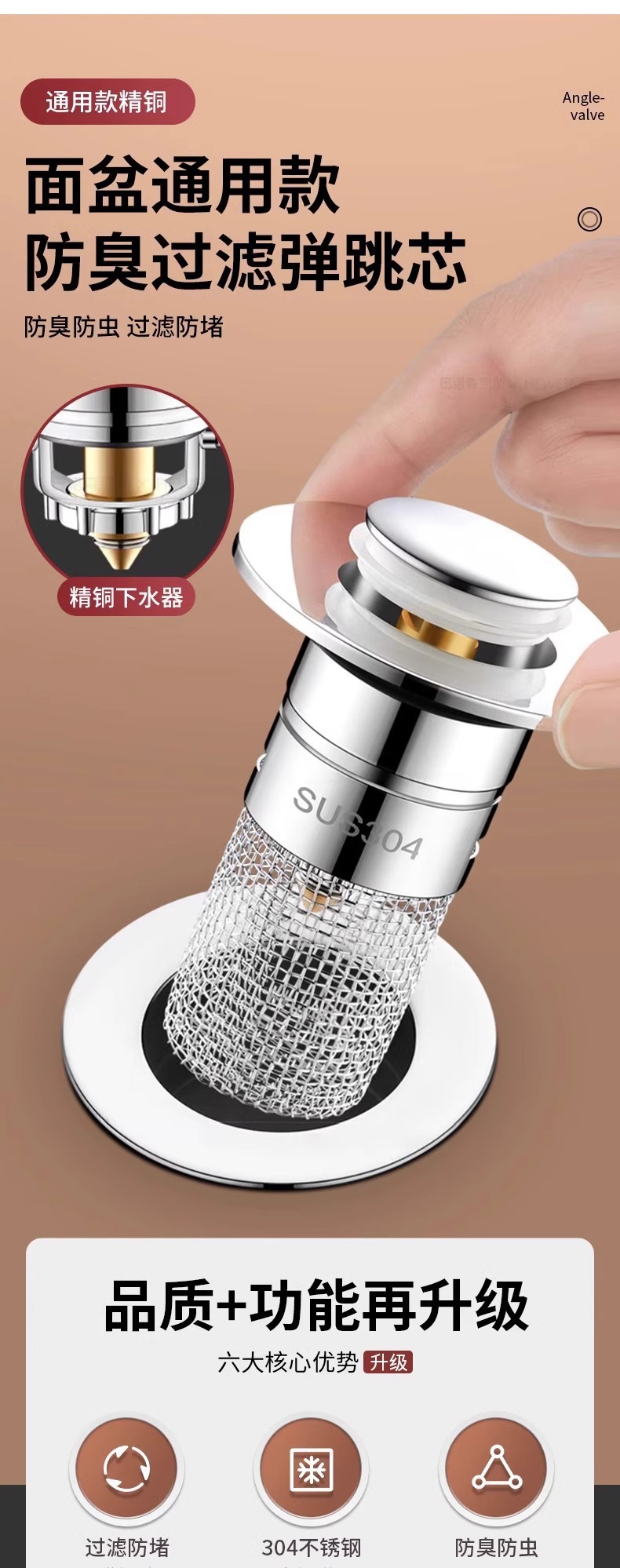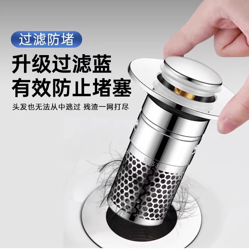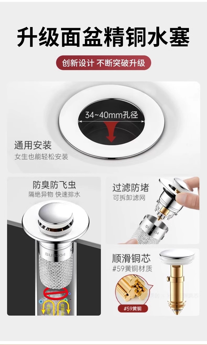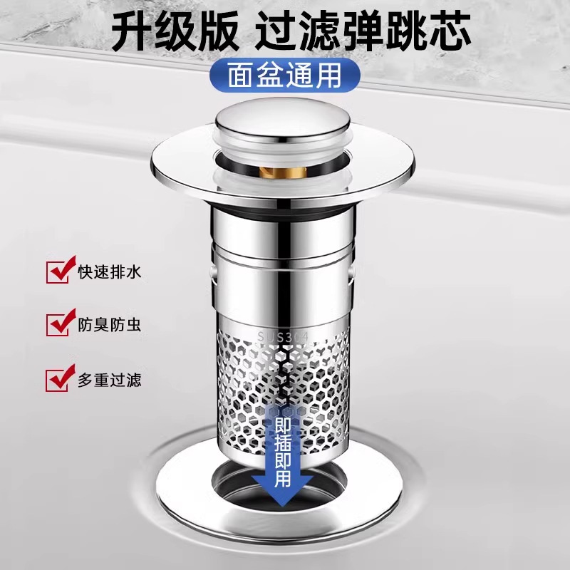 通用型洗脸盆漏水塞面盆弹跳芯下水防臭卫生间洗手盆按压防虫防堵