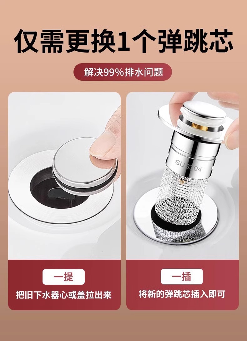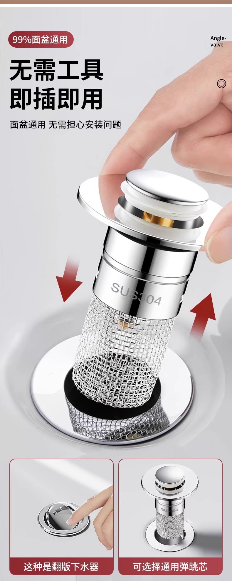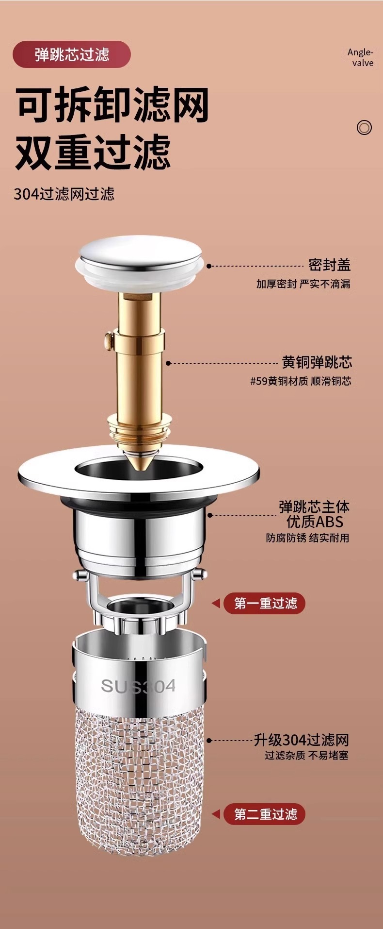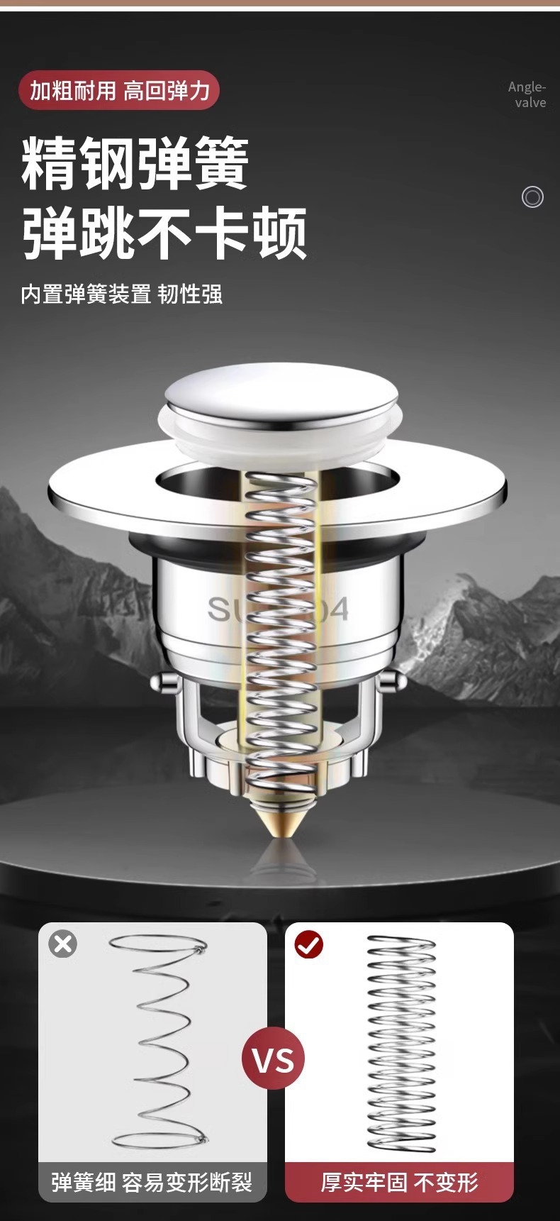 通用型洗脸盆漏水塞面盆弹跳芯下水防臭卫生间洗手盆按压防虫防堵