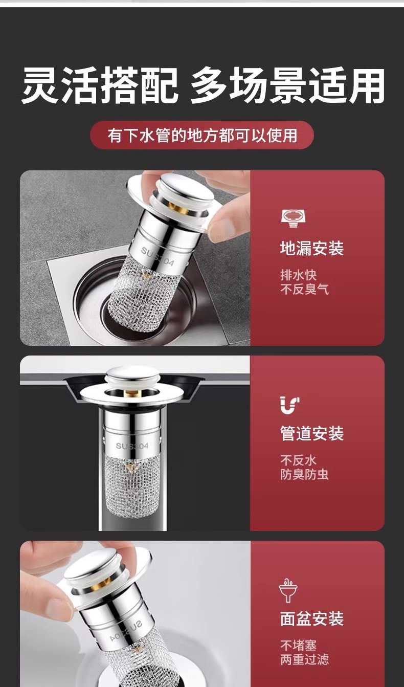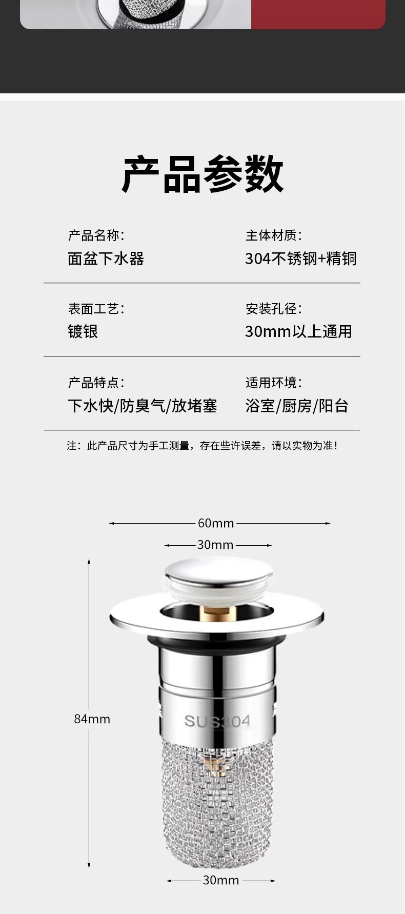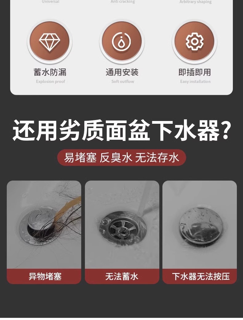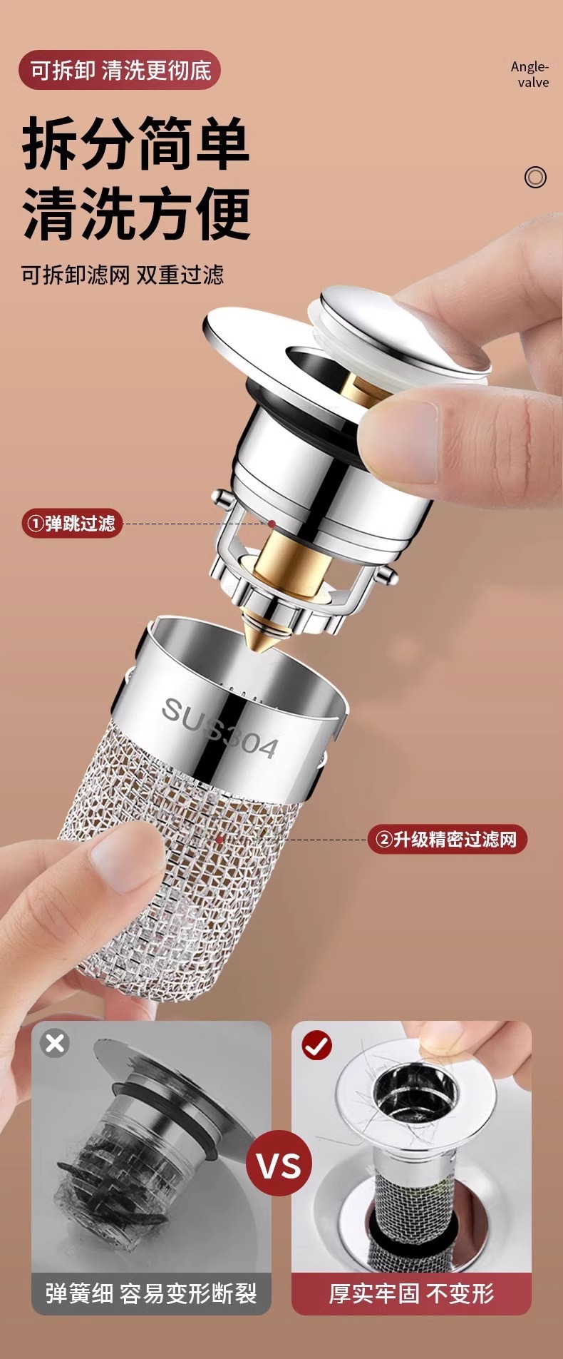 通用型洗脸盆漏水塞面盆弹跳芯下水防臭卫生间洗手盆按压防虫防堵