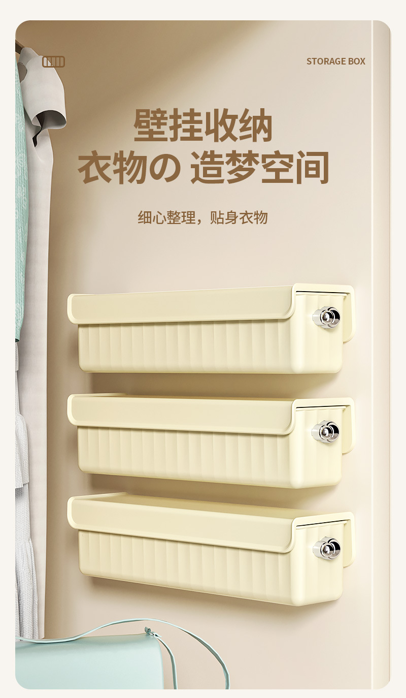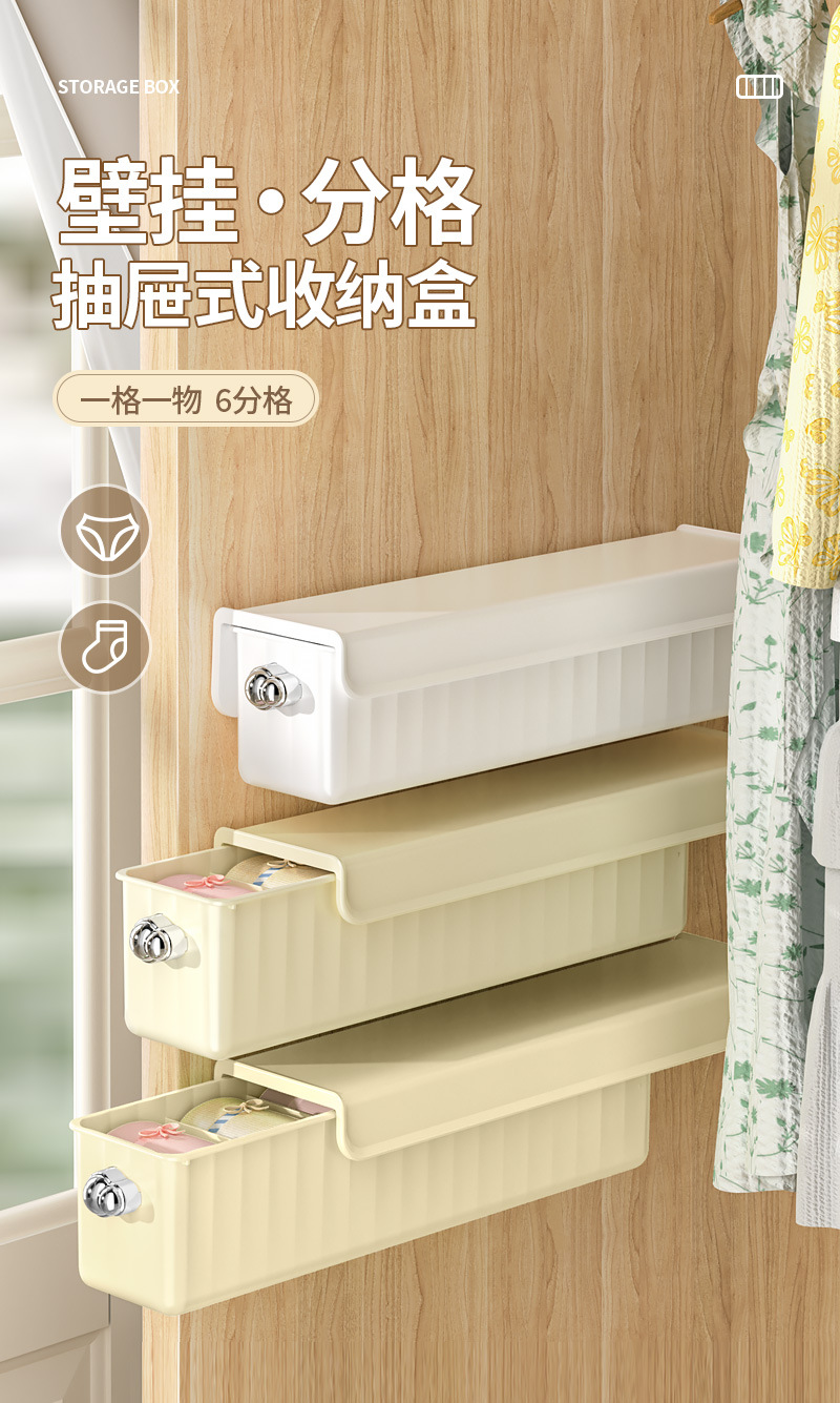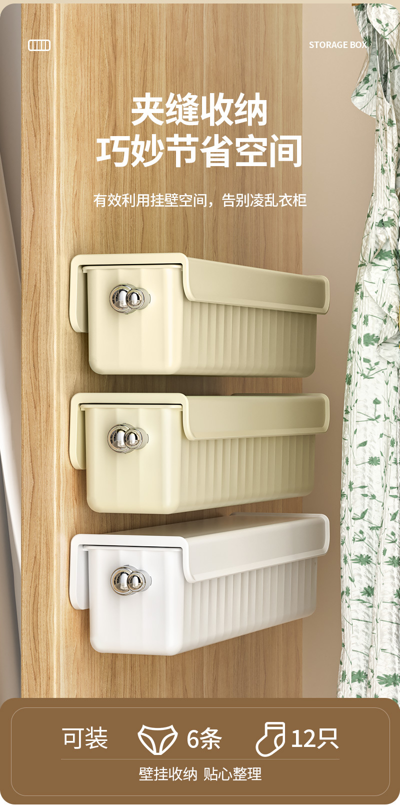 内裤袜子收纳盒大容量家用卧室衣柜粘贴壁挂式带盖分格收纳整理盒