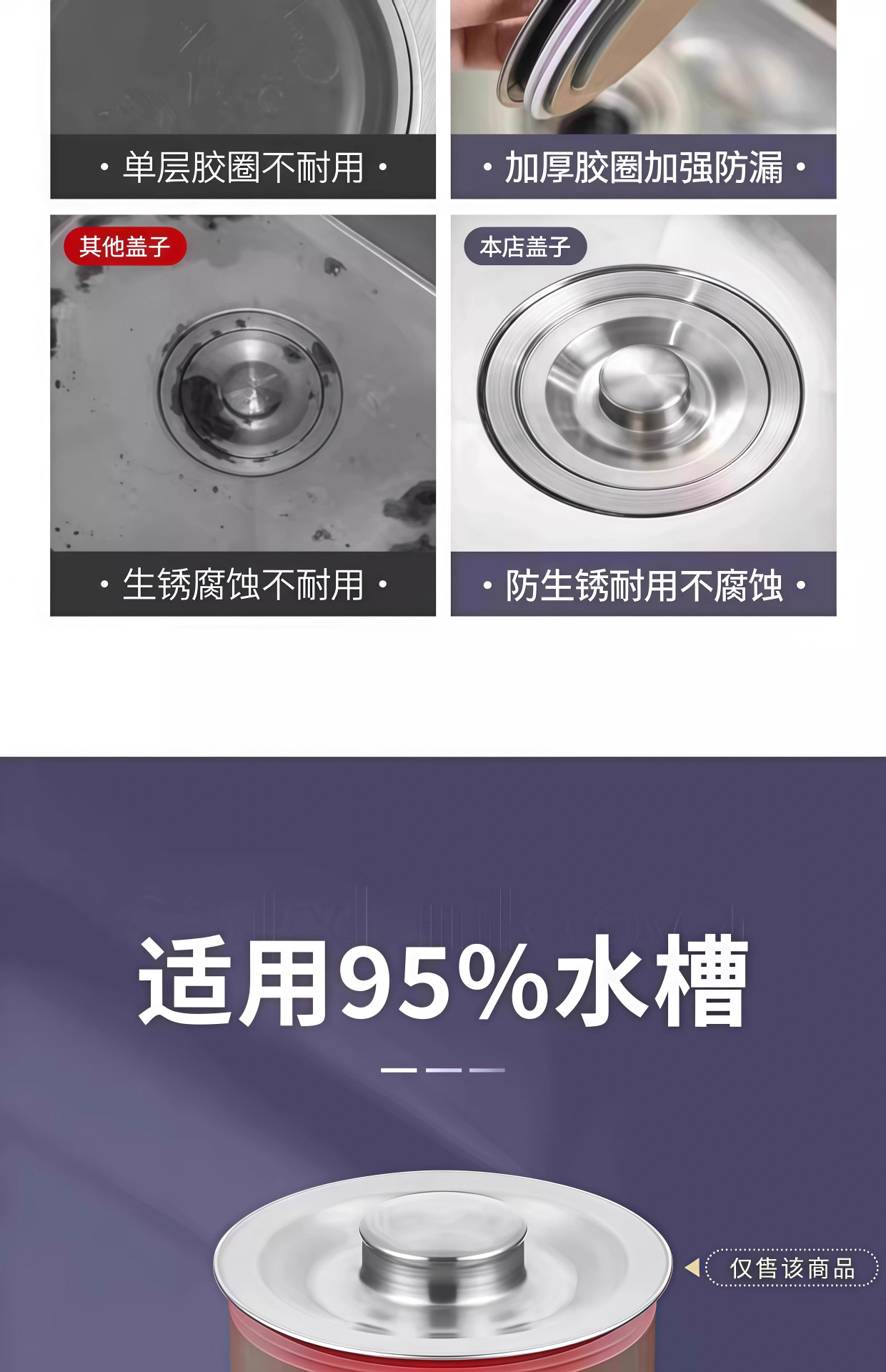 厨房水槽盖洗碗池不锈钢盖子水槽封口盖洗脸盆堵水塞水洗菜盆塞子