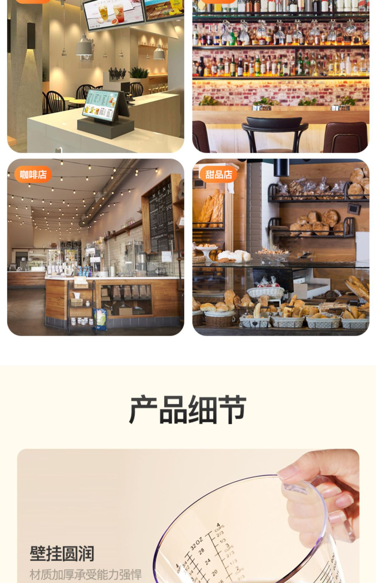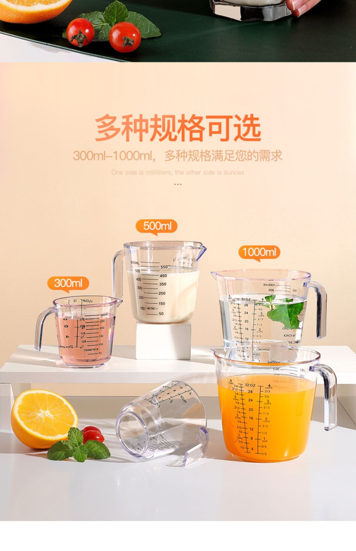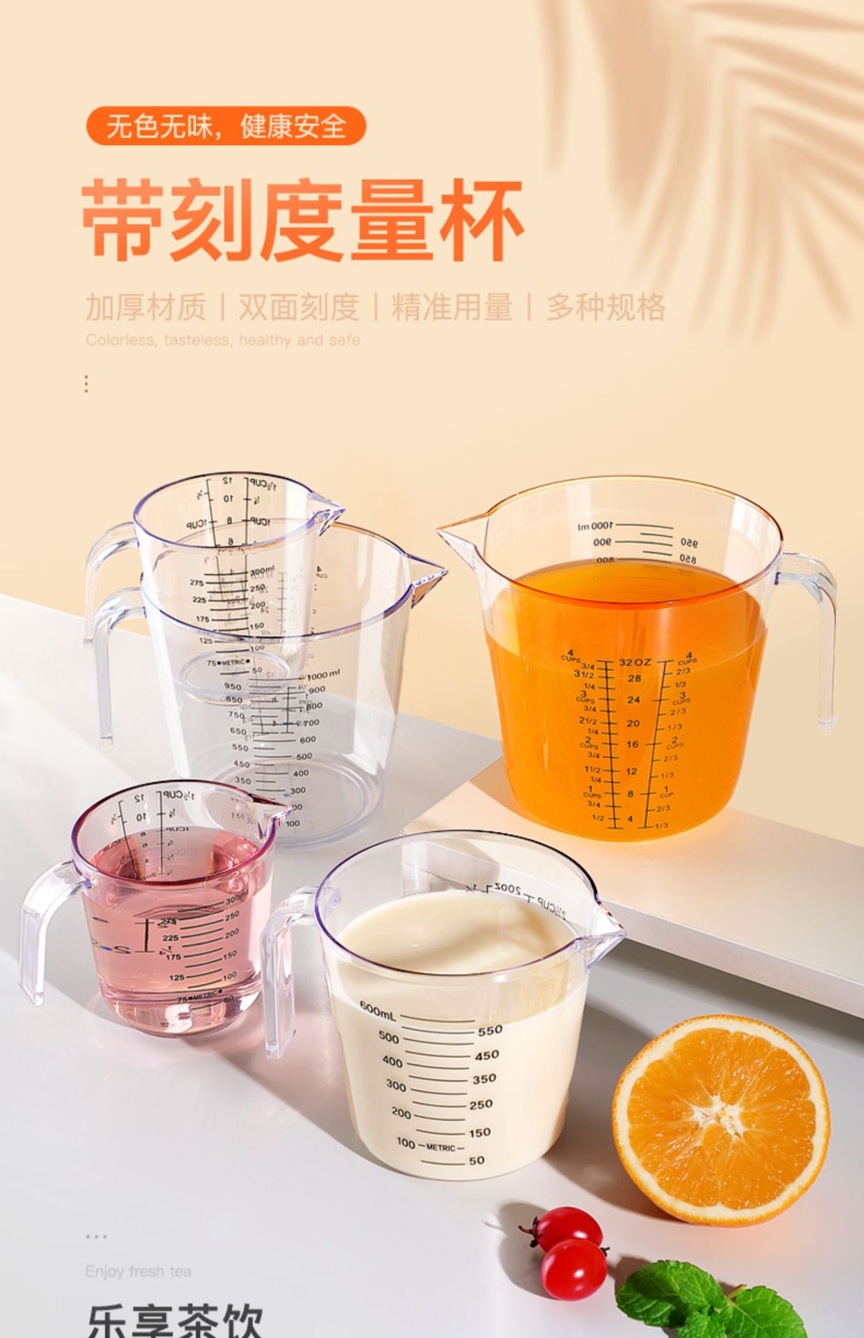 带刻度量杯食品级烘焙奶茶店专用塑料水杯耐高温计量毫升打鸡蛋杯