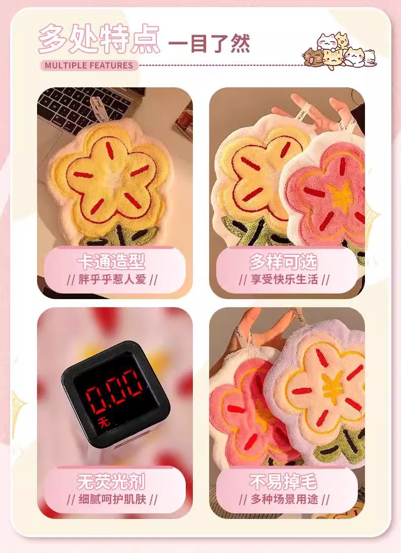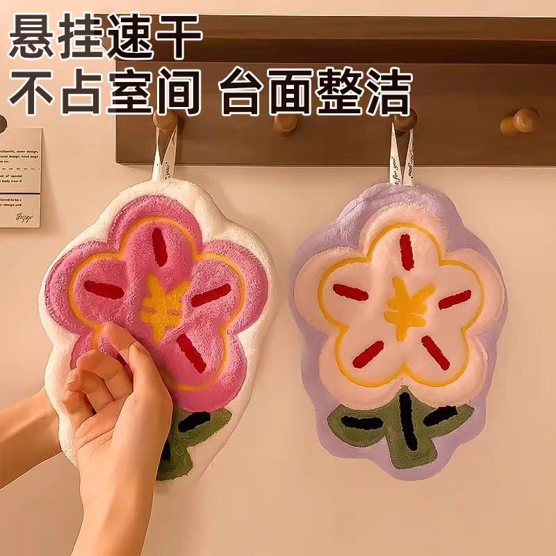 有钱花可爱擦手巾挂式厨房卫生间小毛巾浴室吸水不发臭速干抹手巾
