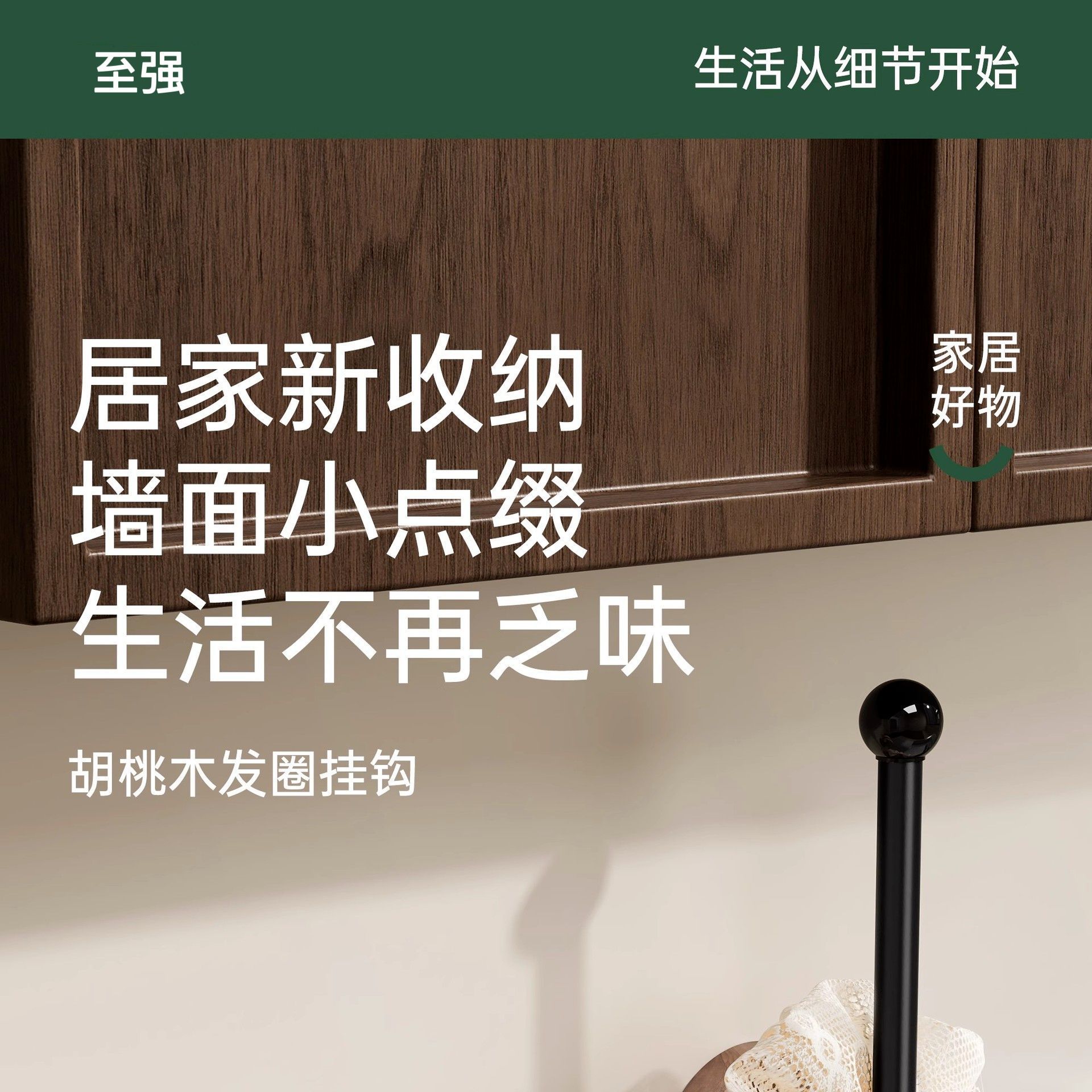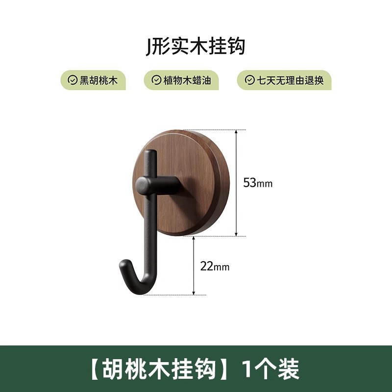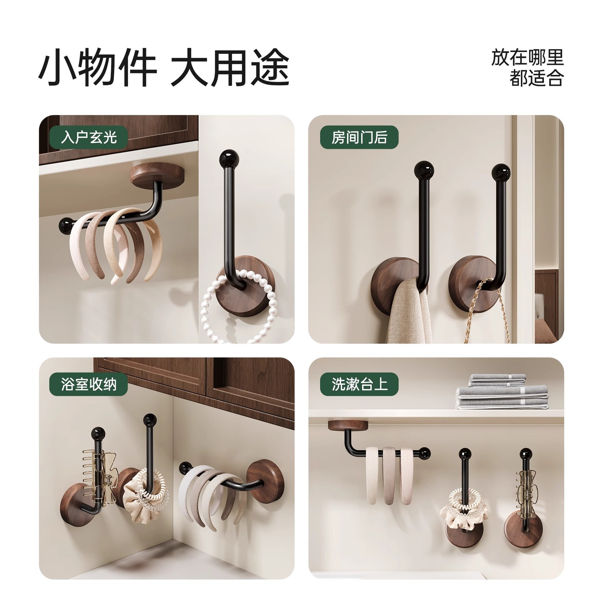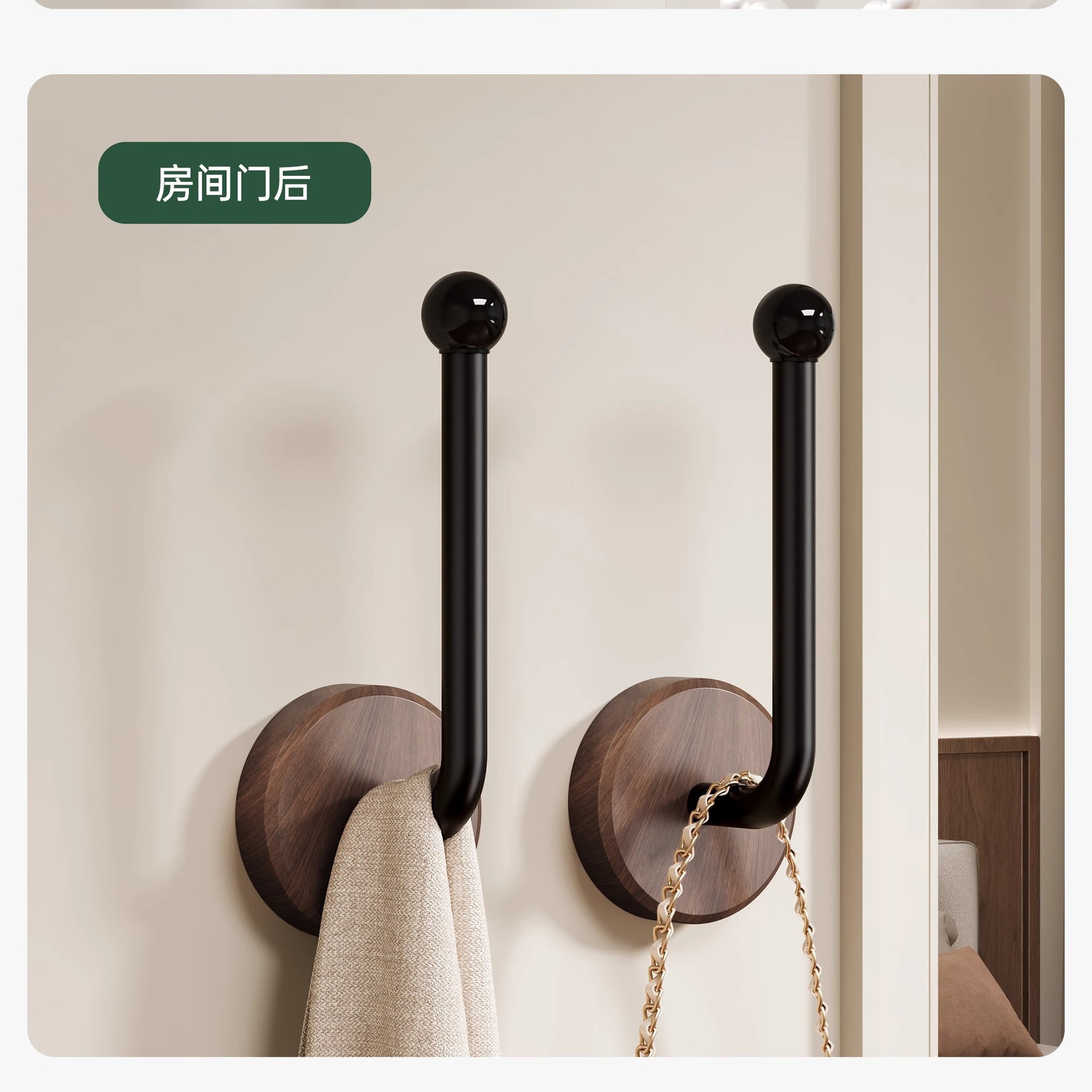 实木黑胡桃木挂衣钩门后免打孔衣柜壁挂墙上玄关衣服粘钩发圈挂钩
