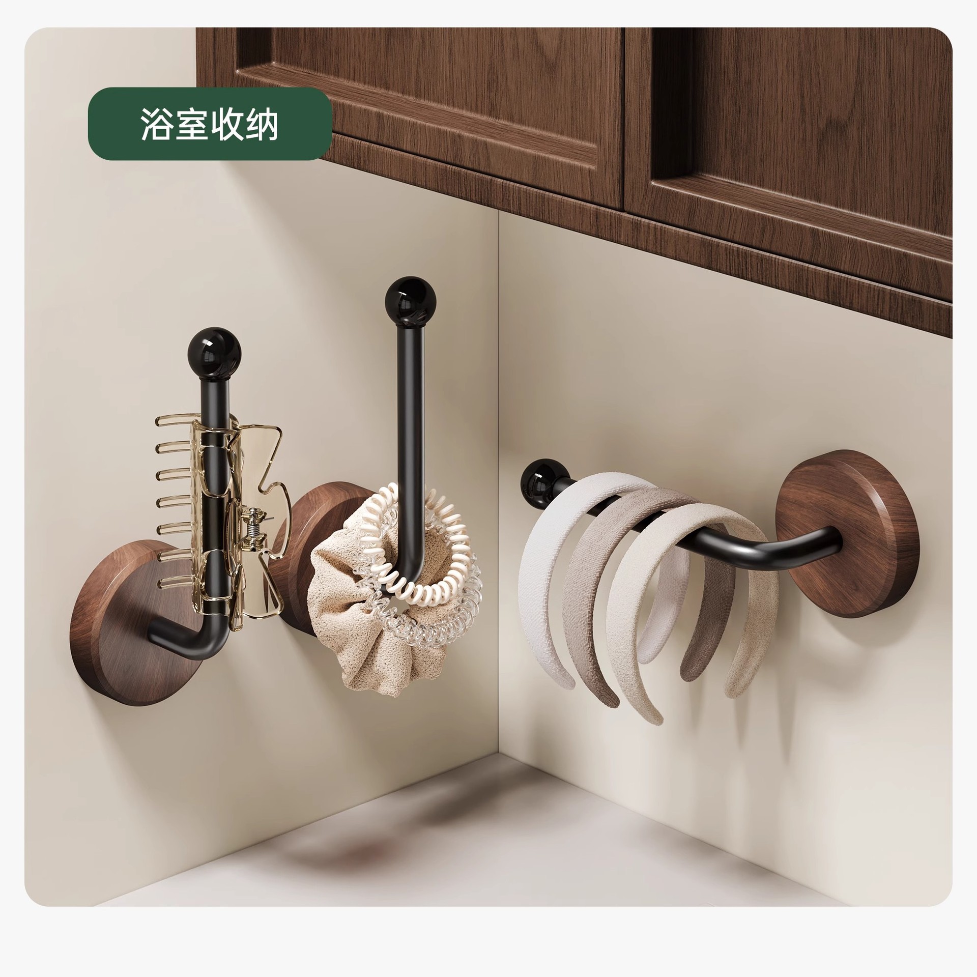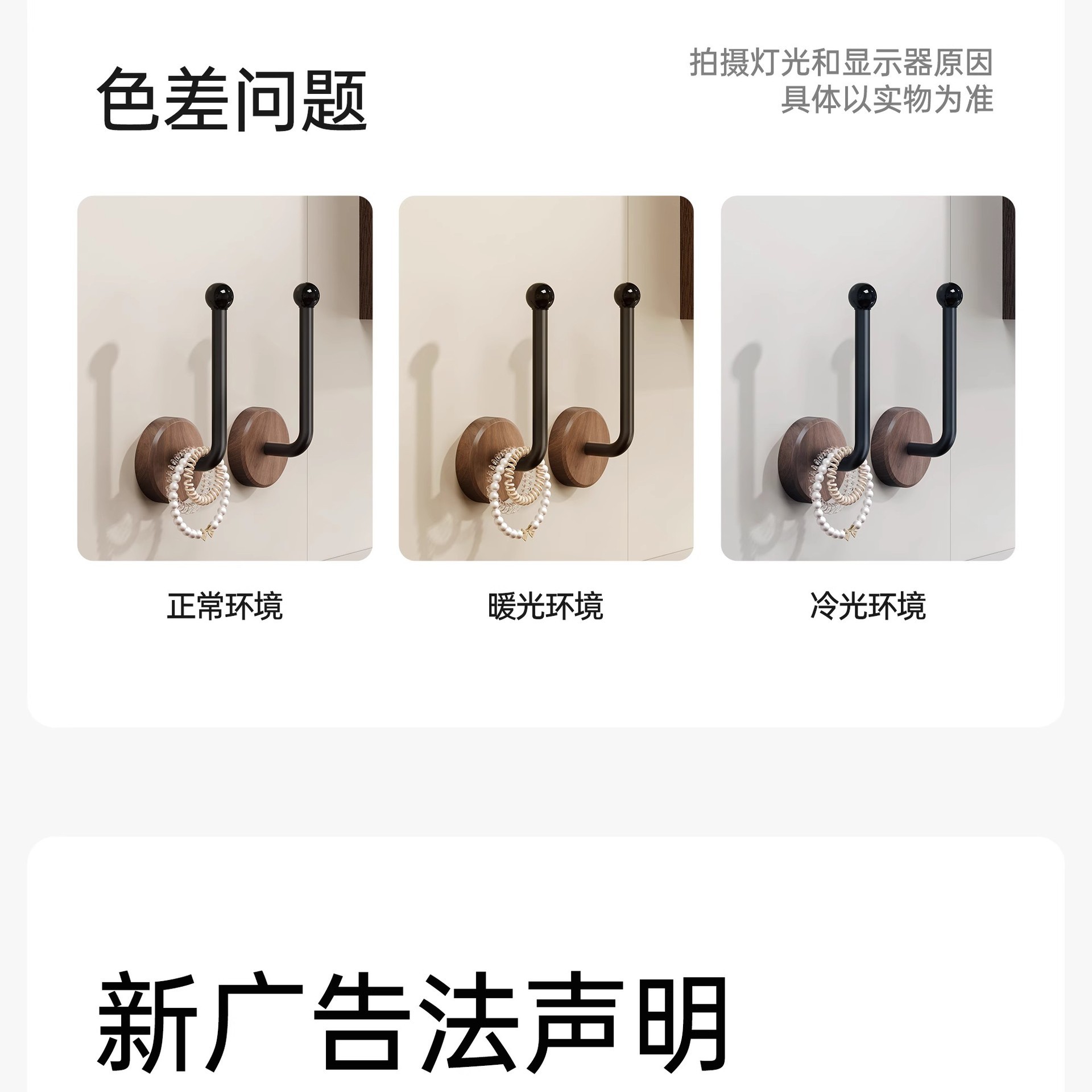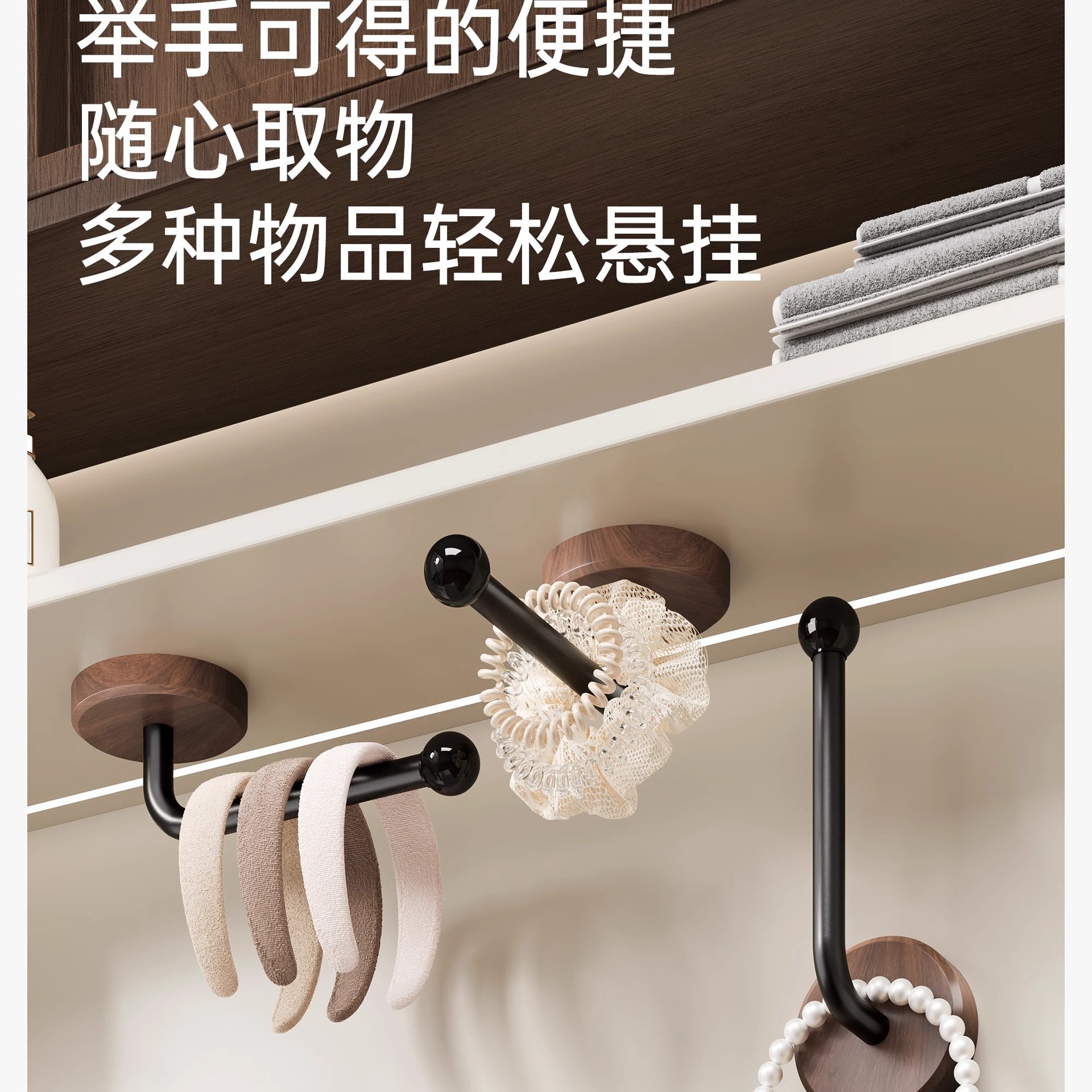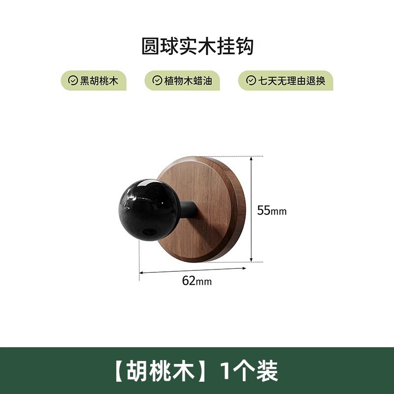 实木黑胡桃木挂衣钩门后免打孔衣柜壁挂墙上玄关衣服粘钩发圈挂钩