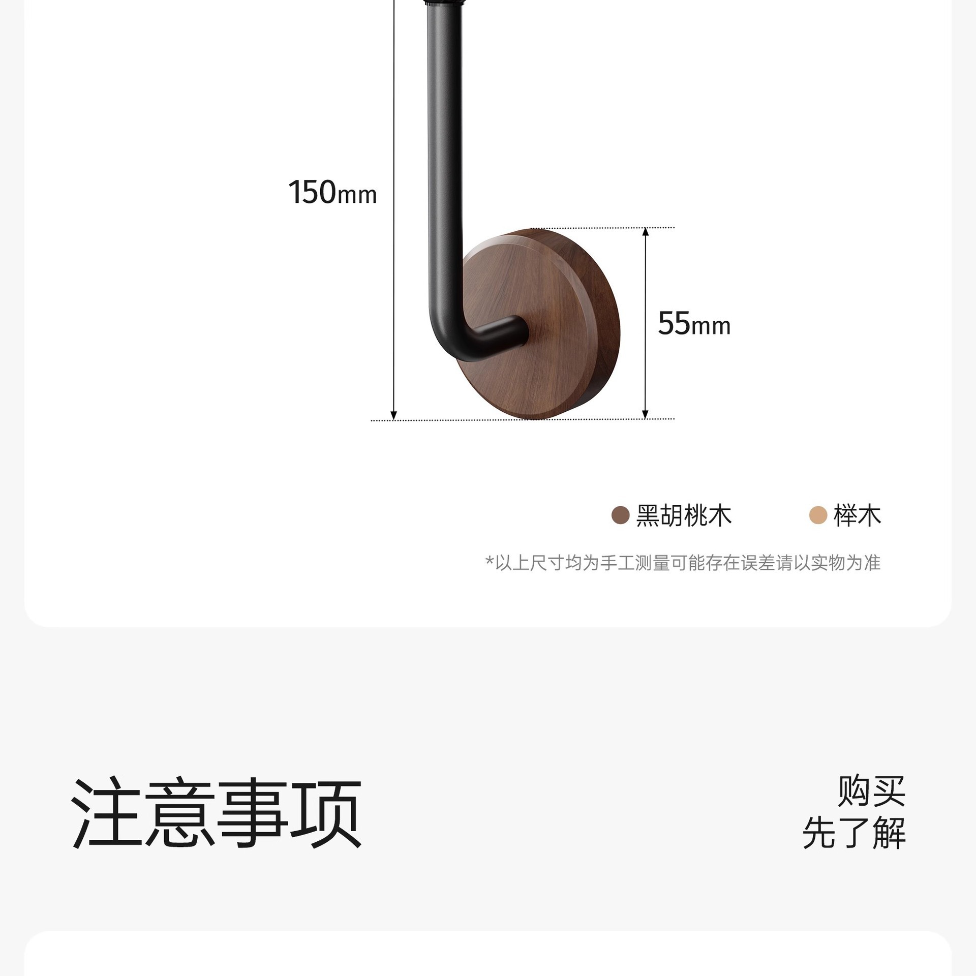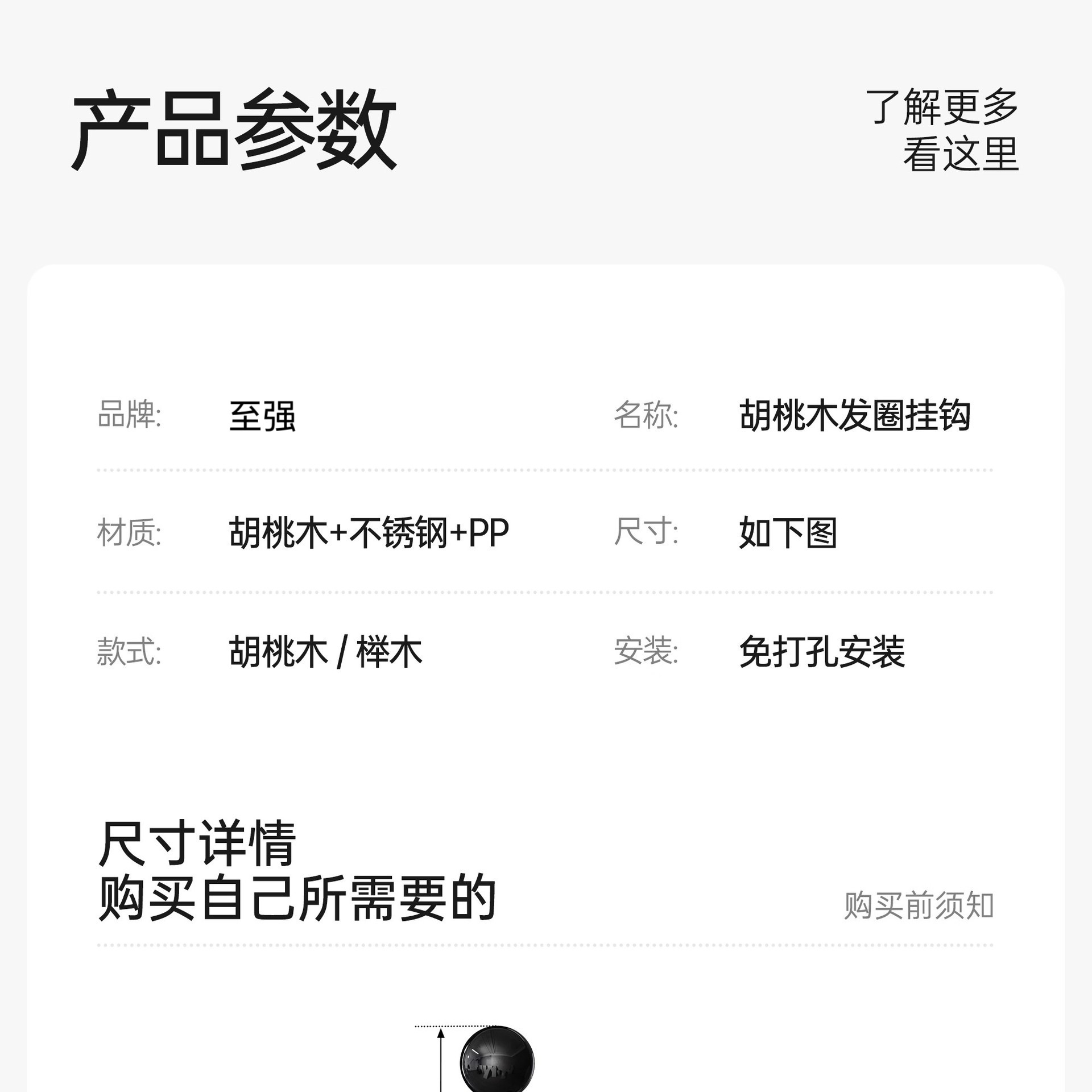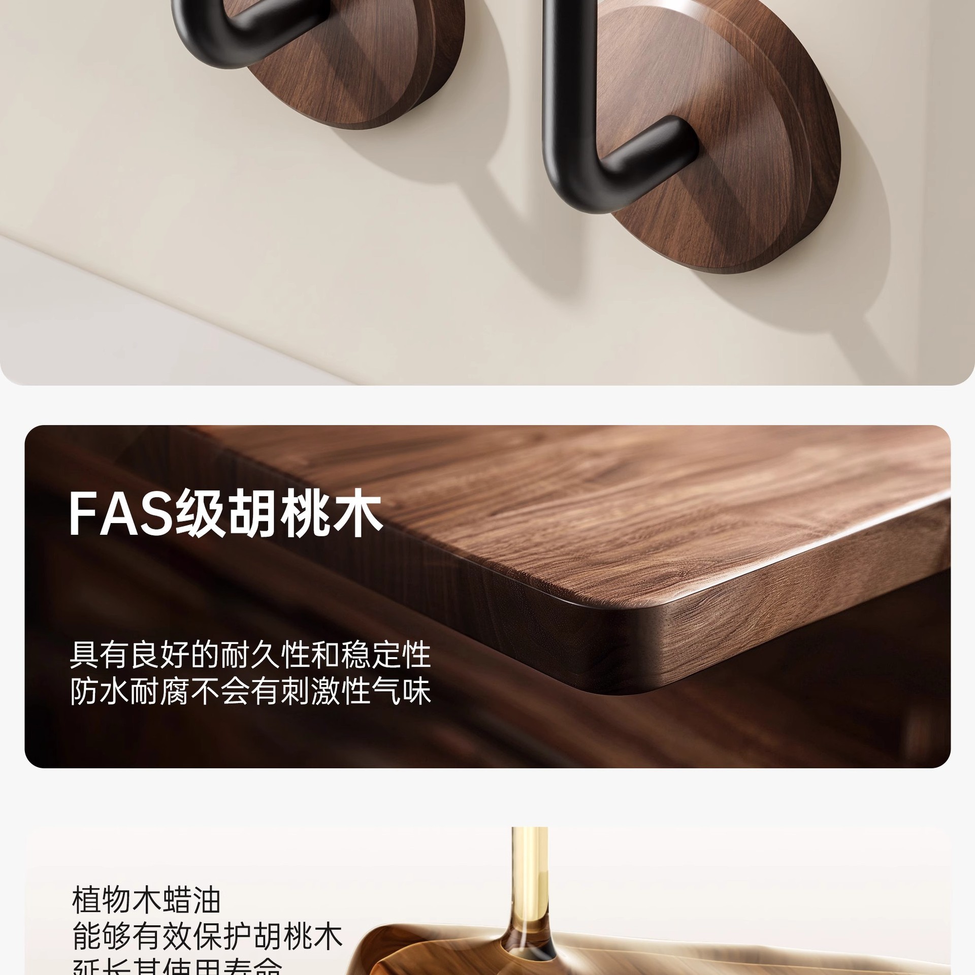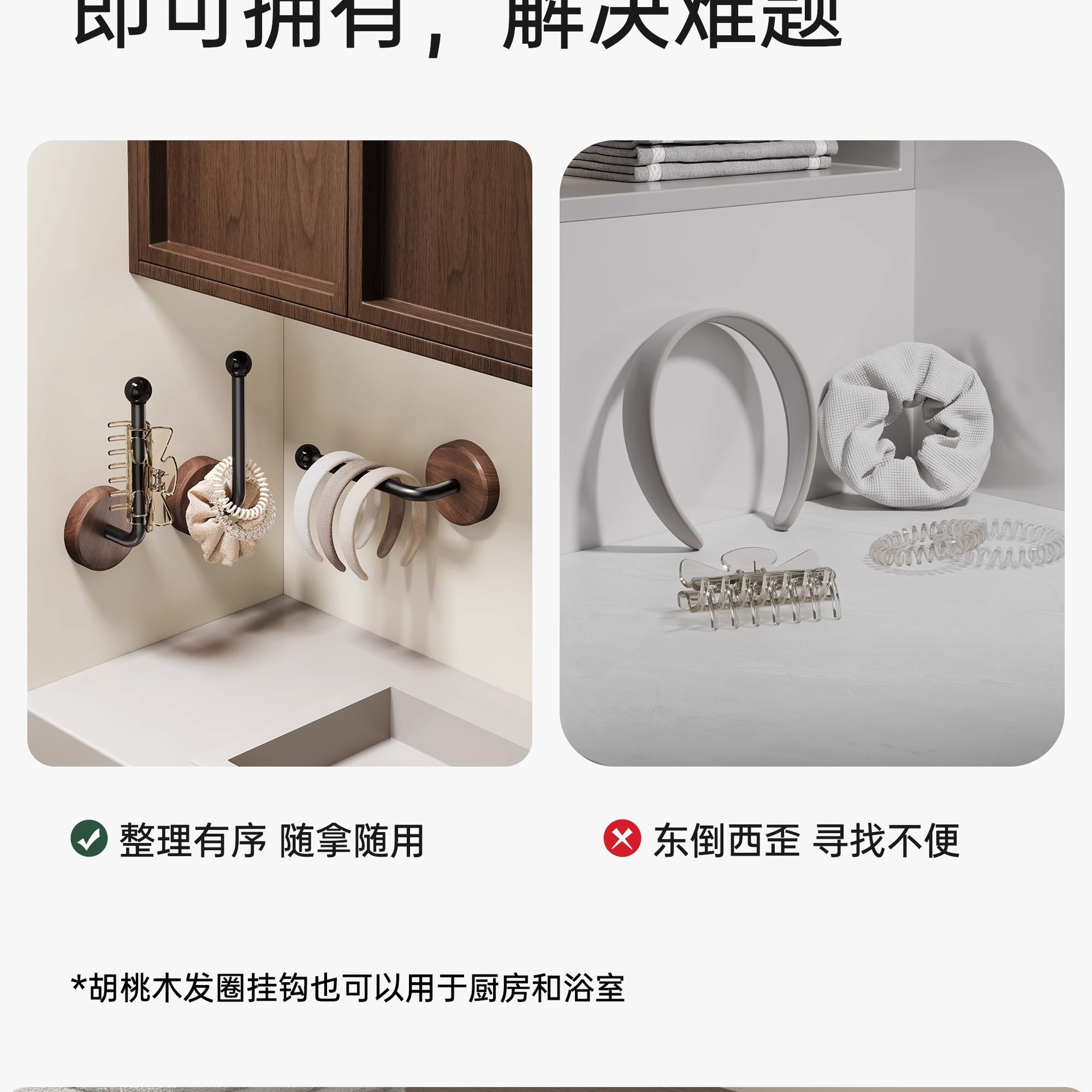 实木黑胡桃木挂衣钩门后免打孔衣柜壁挂墙上玄关衣服粘钩发圈挂钩